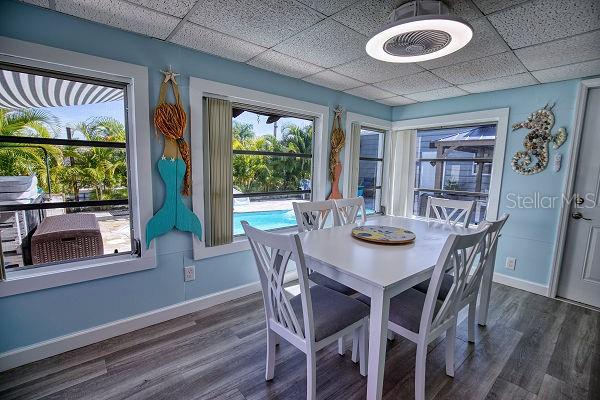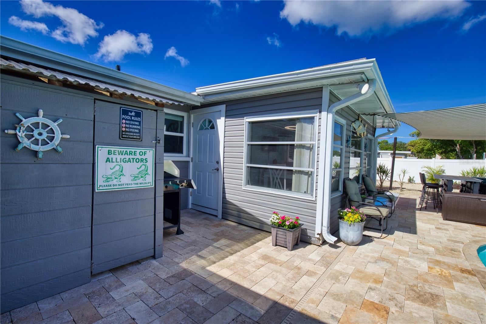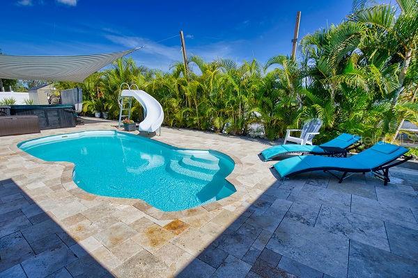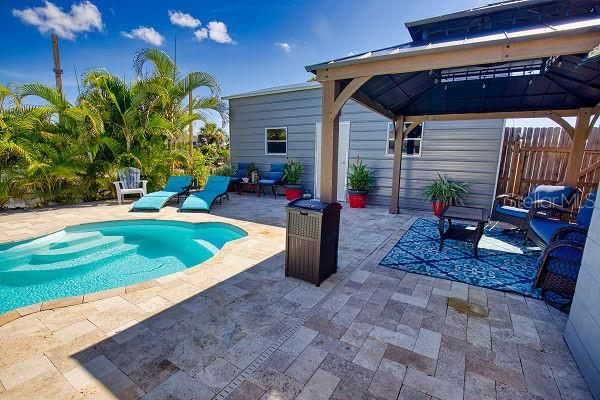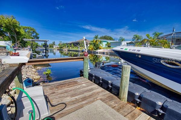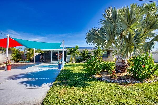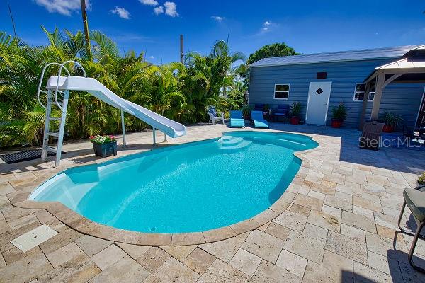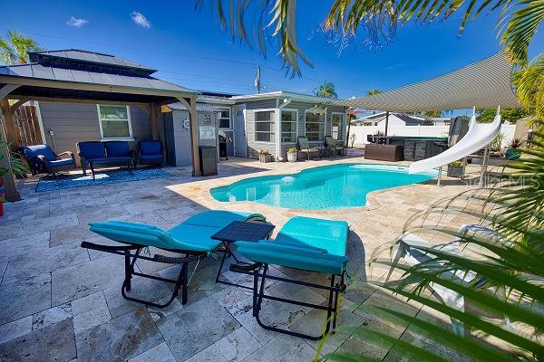 Welcome to your private paradise in Englewood, where the Florida lifestyle meets ultimate relaxation. 100ft of canal frontage with Gulf Access. This beautifully updated coastal home is Turnkey Fully Furnished, featuring 2 bedrooms and 1.5 bathrooms, is currently operating as a successful short-term rental with consistent bookings throughout the year. With a 5-star rating and a loyal following of repeat guests, this property offers excellent cash flow with minimal effort. Whether you're looking to continue its success as a rental or make it your own, this home is the perfect escape. Step inside to find a home designed with a modern coastal flair, offering a serene and inviting atmosphere. The fully furnished interior is complemented by a stunning, completely private backyard that includes a Tiki Bar, a pool with a slide, a hot tub with a surrounding bar, a gazebo, a horseshoe pit, cornhole, and a firepit. The large floating dock provides easy access to Lemon Bay, making it ideal for boaters. This home also offers a large, detached metal shop that survived Hurricane Ian without a scratch. Additionally, two separate driveways with wired RV hookup adds flexibility for RV or large boat. This home also has solar panels that provide excellent economical power. This home truly has it all. Whether you're seeking a permanent residence or a vacation home with great rental potential, this fully furnished Englewood gem delivers the best of Florida living and is unique for its outdoor living.