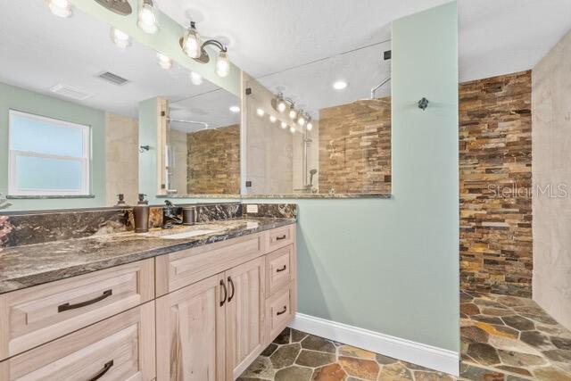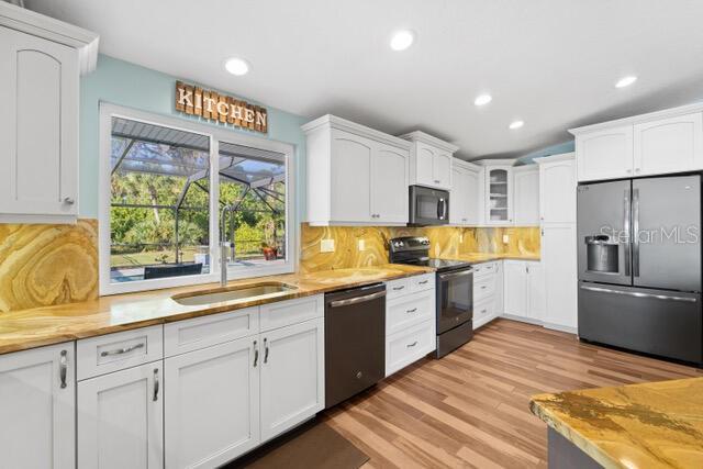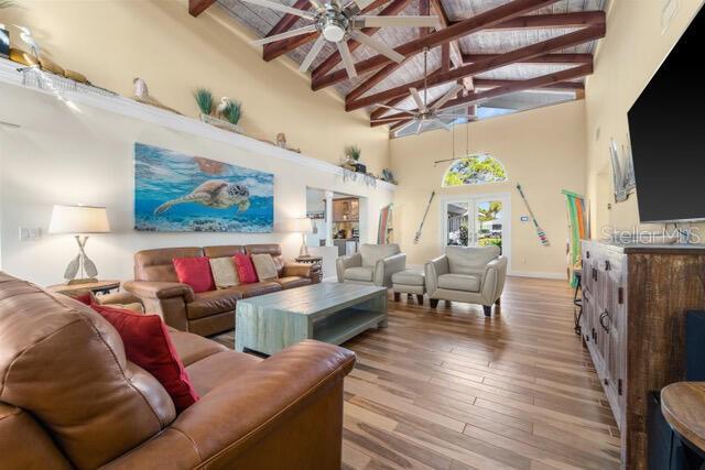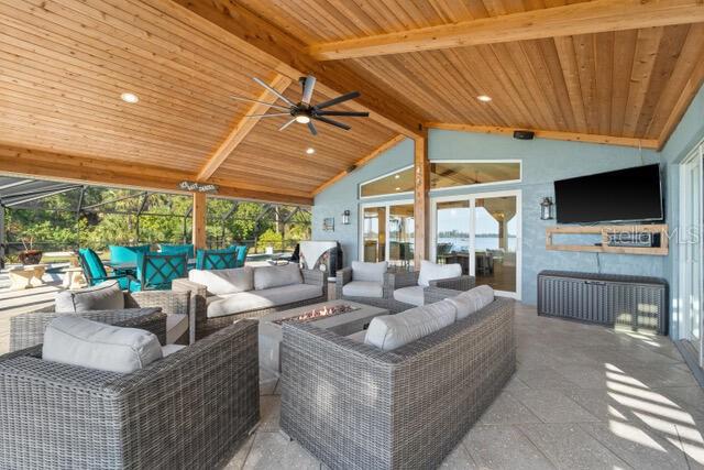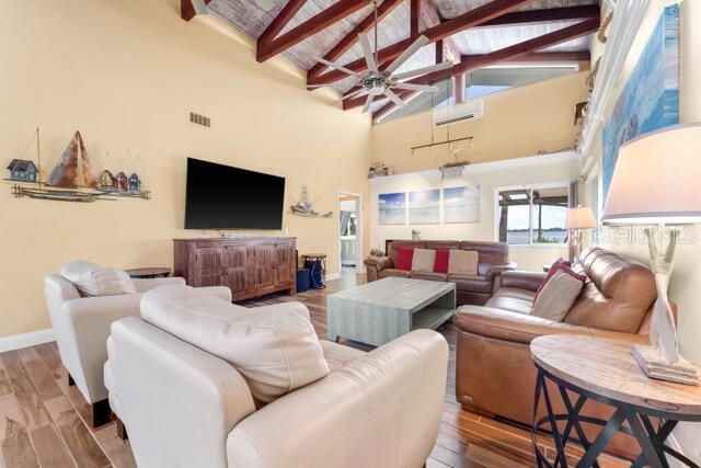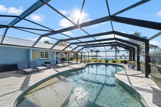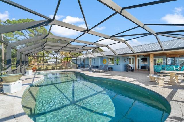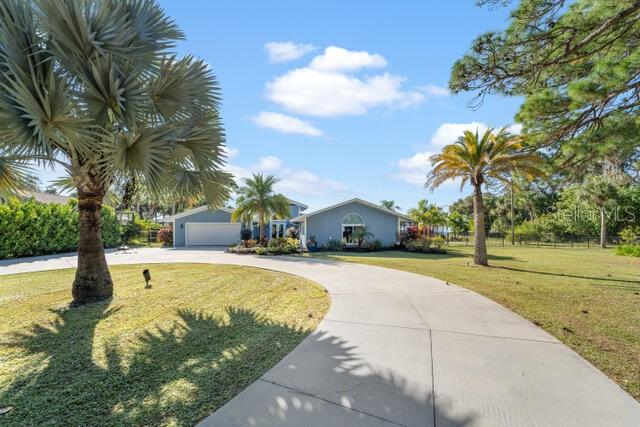 Stunning 240 foot bayfront, secluded and private 2.4 acre tropical oasis surrounding a completely remodeled coastal-style upscale home with over 2800 sq. ft. of freshly painted beautiful living area, an expansive lanai with heated pool, new appliances, separate grill area, and a 1800 sq. ft. separate newer structure (2019) located a few hundred yards from the main home including game room and garage/boat storage, outdoor fireplace to enjoy under the stars, and picturesque views of Lemon Bay and the Intercostal waterways. This one-of-a-kind unique position of the property provides the longest views out onto Lemon Bay. The beautiful entry way into this cottage-styled home opens to a 20-foot soaring vaulted ceiling with wood beam details, large fans and trending porcelain tile floors. Natural light pours in through the home’s many windows and slider doors lifting your spirits as you take in the expansive and full views of the beautiful shimmering bay ocean. A custom kitchen is beyond with an expansive island lit up by glass chandeliers and LED lighting, beautiful abstract granite counters and backsplash, and new upgraded stainless steel GE profile appliances. Immediately adjacent in the kitchen is a wet bar outfitted with a bar refrigerator, wine fridge and ample glassware storage. Down the immediate hall are two bedrooms and full guest bathroom with one guest room outfitted for double bed and the expansive master suite at the end of the hallway featuring separate his & hers walk-in closets and a stone clad walled walk-in shower. At the other side of the home is a 3rd master sized bedroom with expansive view of the ocean waters and en-suite bathroom and walk-in closet. An additional bonus Room is located towards the rear of the home with a secluded office, play room, sitting, or 4th bedroom. The outdoor lanai and pool area feature TV, dining, ample recreational seating, a tranquil setting with magnificent sunset views. The property has well over 50 LED VOLT night lights scattered throughout the landscape and beautiful at night, a separate fenced-in dog run, and a rare to find stand-alone 100-foot reinforced cement driveway that supports RV camping vehicles with a 50 AMP hookup as well as a septic dumping connection. This beautiful expansive private property allows for a family inhabited home or a hybrid part-time living combined with other leasing and wedding business opportunities to generate significant income. The home can be turnkey and ready to go with either option. Proven Airbnb and private client wedding income opportunities. Separate business plans for both are available. This unique location is within biking or a 5-minute car ride to the Manasota County Beach, public boat ramp ¼ mile away, fishing docks, schools, shopping, public parks and picnic areas. It’s simply a one-of-a-kind property that is ready -to-move-in and the most tranquil setting for family and friends.