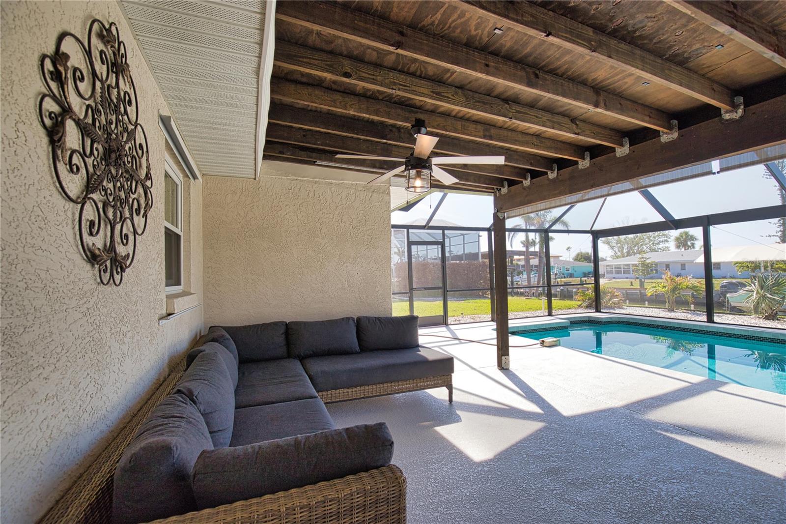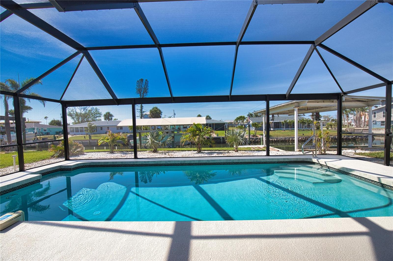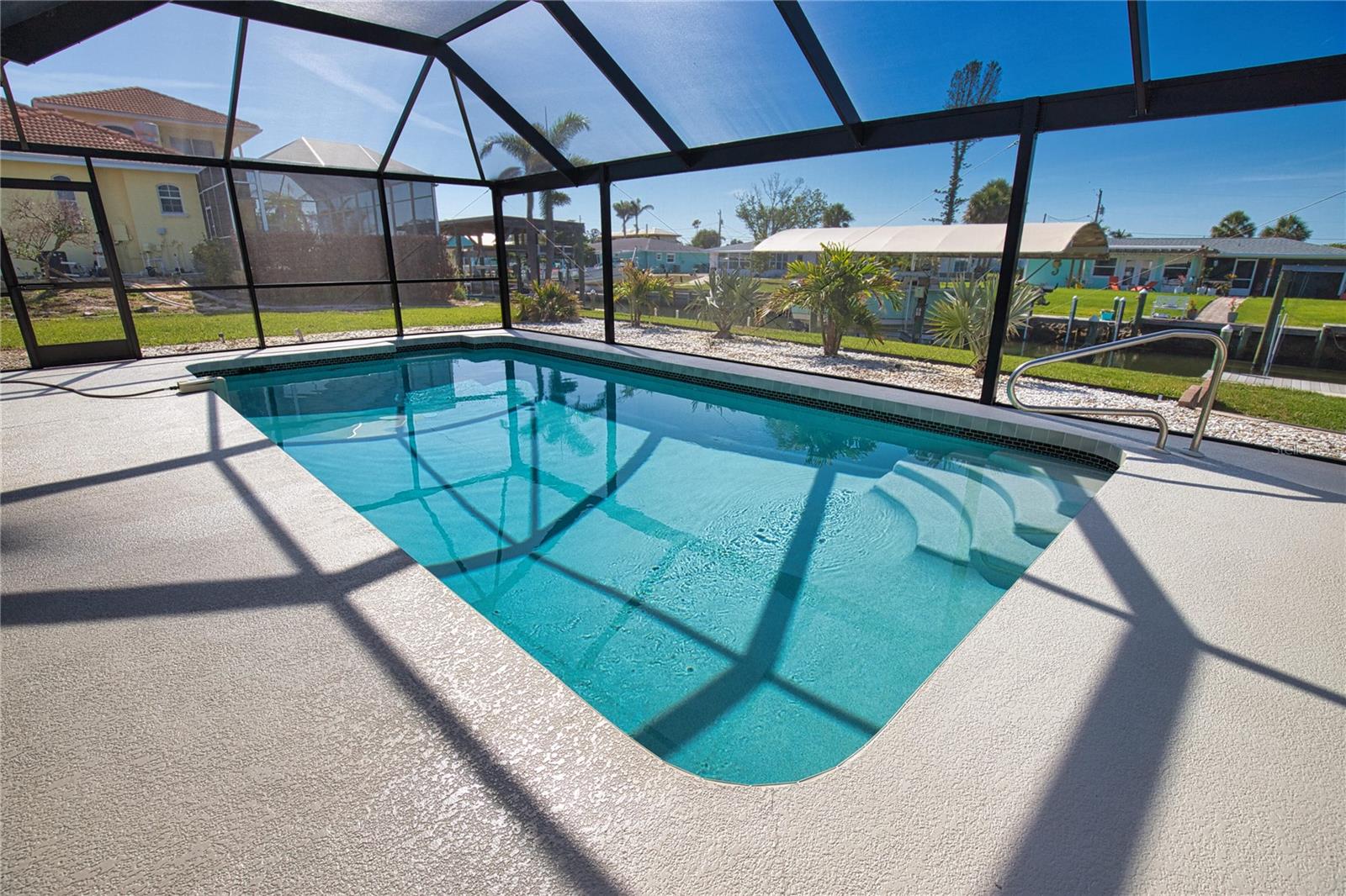 This lovely home has quick access to the canal and is just minutes from the sea. Kayak, fish, and paddleboard straight from your private dock. Inside, you’ll find a fresh, modern design; outside, enjoy stunning views. A separate laundry room keeps washer and dryer noise out of the living areas. The heated pool is for cooler days, while the screened patio provides a relaxing retreat when the weather heats up. The property includes both a boat lift and a jet ski lift, with ample space to maneuver in the canal. The well-landscaped lawn features lush plants and a sprinkler system to keep everything green. Concrete walls and central AC ensure you stay cool all summer long. Parking includes a one-car garage plus space for four additional vehicles in the driveway.