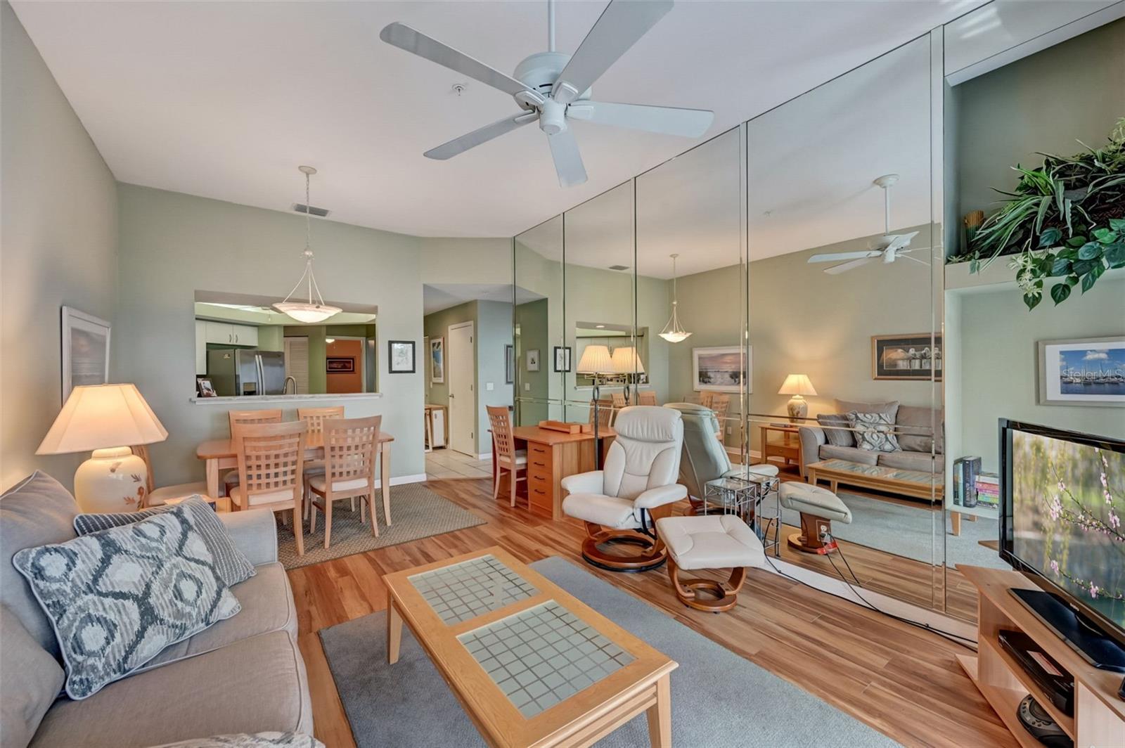 **** Price Reduction **** This townhome is ideally located on Manasota Key, steps from Lemon Bay and a Gulf public beach. A short walk brings you to more than 6 tiki bars, restaurants and convenience store. The home offers a view of Lemon Bay and is just steps from their large, heated pool and boat & fishing docks. (Docks are contracted to be rebuilt in 2025, and will include a launch for kayaks. There is an oversized garage, that includes 2 sizable storage rooms, as well as a dumbwaiter for bringing groceries and luggage up to the kitchen area. The garage floor was just sealed with a durable resin finish. The dining and living areas have high, vaulted ceilings and 4 ceiling fans add to the airy, tropical feel of the home. Relax and entertain friends on the covered balcony overlooking Lemon Bay. The spacious kitchen includes stainless appliances and granite counters in kitchen and baths. The master bedroom is large and boasts an additional office area with French Doors, as well as a huge walk-in closet. Master bath was recently updated with new tile and glass in the walk-in shower. There are 23 units within Live Oak Landings. This unit is one of two units with all living space on one level. It is the only unit with a trapazoidal floor plan, allowing for a broader, more open feel and fewer steps to manage. (see floor plan in photos) This home has never received any storm damage, not even from Hurricane Ian, which was a Cat 5 storm. This is an excellent opportunity to live in one of Manasota Key’s premier communities.