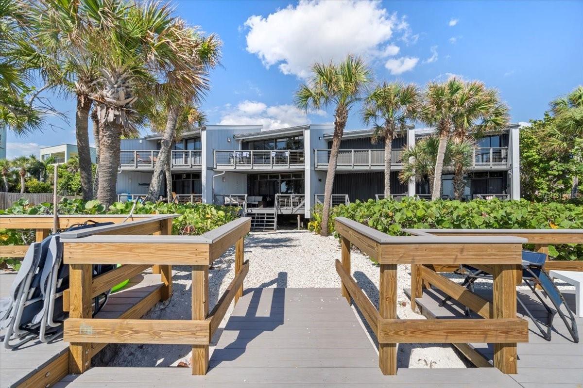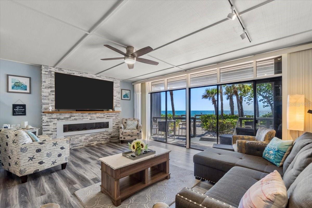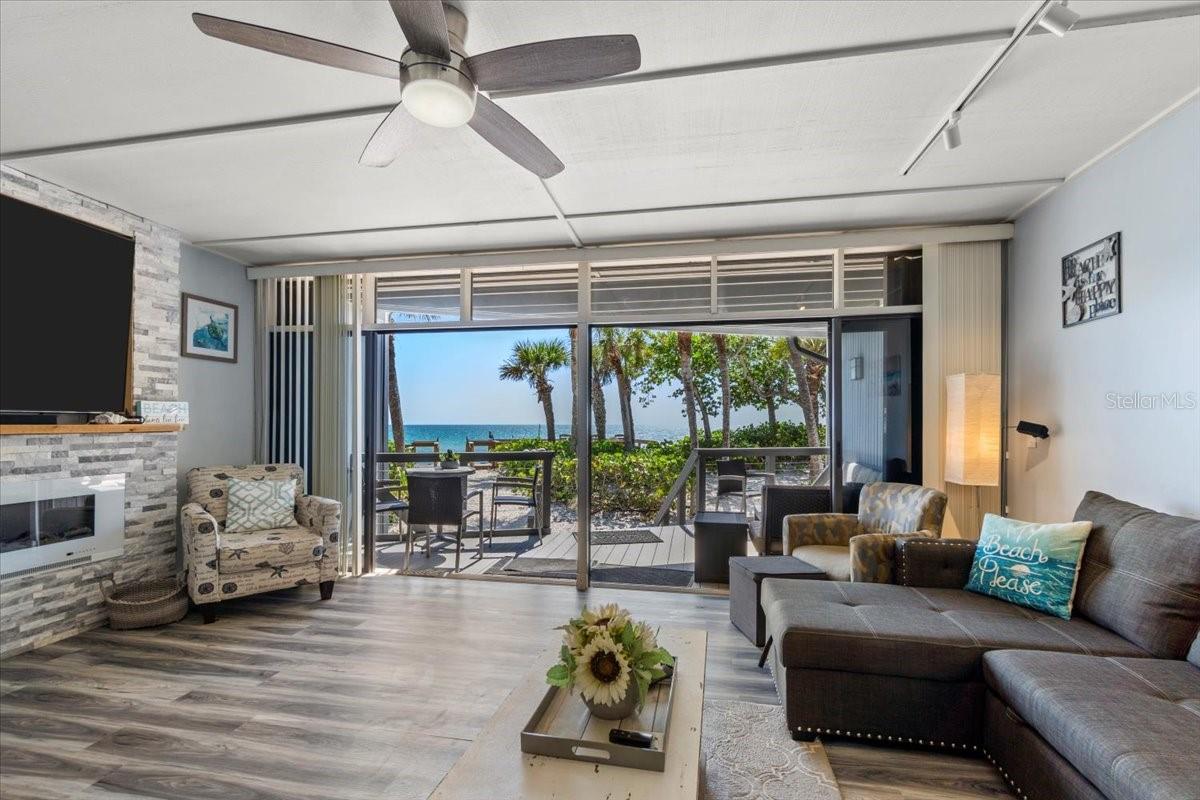 50K PRICE REDUCTION and Owner Financing Available on this Direct Gulf Oceanfront 3 bedroom 3 full bath with unobstructed ocean views in the beautiful quiet town of Manasota Key. . Entire unit has been modernized and redone in last 2 years. 3 new bathrooms with walk in showers. Fireplace walls in living room and master bedroom. Master suite is on top floor with huge balcony over looking the beautiful blue water. New stainless appliances in kitchen, new furniture and flooring throughout. This is used primarily as income generating short term rental with excellent rental history for last 3 years. There are only 3 other units and property owners also own the entire land behind towards the road which is permissible to build more units for added income and value to each owner. Unit comes fully furnished to sleep up to 9 comfortably and includes 4k smart Hi def TV's in every room including 86" in living room over fireplace. Energy efficient tankless hot water heater. All 4 units received brand new metal roofs last year. New rock seawall and ocean front decks. Make money from the short term rental income and or use as vacation or primary home. This gem in the beautiful beachfront town should not be missed. Short walk or bike ride to the great restaurants and shops.