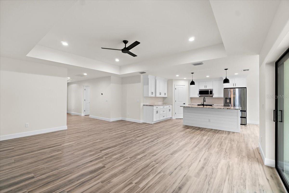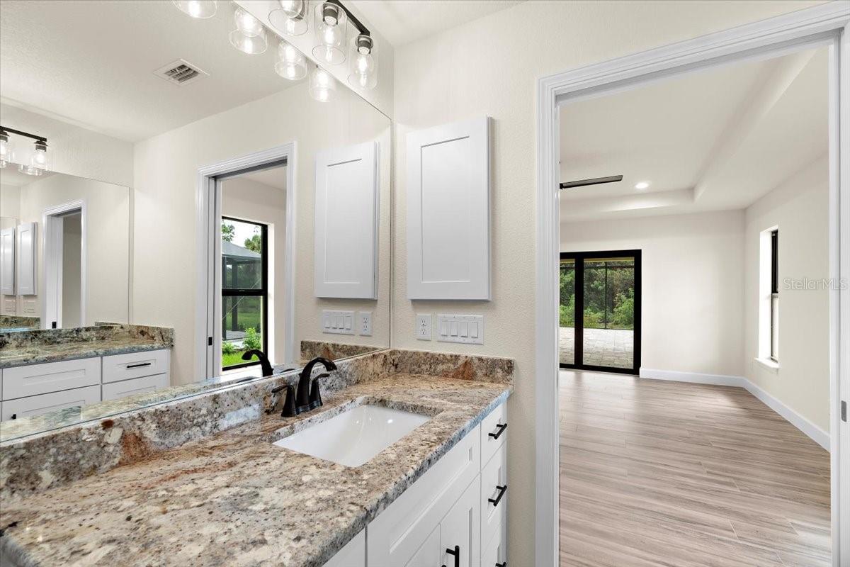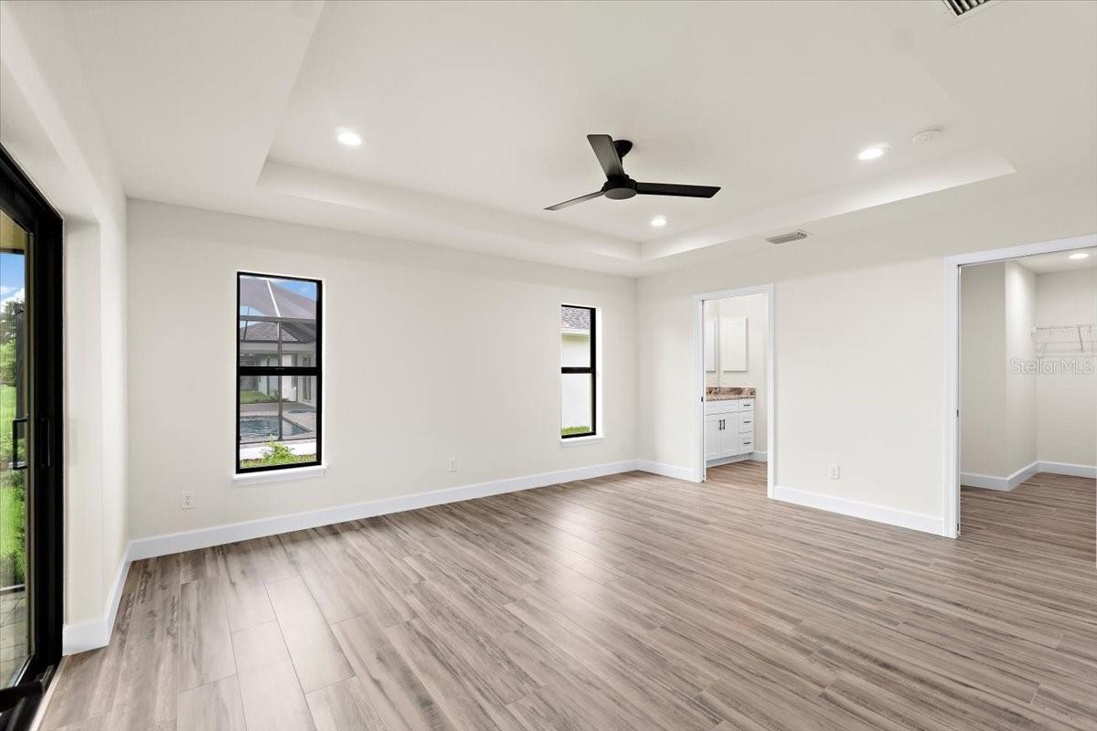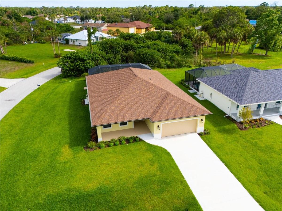 Builder incentive now offered! Take advantage and save thousands upfront—seller will contribute up to 2% toward an interest rate buy-down or buyer’s closing costs. This stunning Regina model by JWM Residential is 100% complete and move-in ready. Designed with style and durability in mind, this pool home features all impact-rated windows and sliders, offering peace of mind during hurricane season. Step inside and enjoy a bright open-concept layout with elegant tray ceilings and plank porcelain tile flooring throughout. The kitchen is beautifully appointed with stone countertops, tile backsplash, shaker-style cabinetry with crown molding, a walk-in pantry, and Samsung stainless steel appliances. The owner’s suite includes a spacious bath with dual vanities and a private water closet. The second bathroom features a tub-shower combo, ideal for guests or family. A dedicated laundry room includes built-in cabinetry for added storage. Additional upgrades include a full ceiling fan and lighting fixture package, energy-efficient LED recessed lighting in key areas, and a Nest thermostat for smart climate control. The curb appeal continues with a welcoming front porch finished in textured Spraycrete and a 2-car garage with epoxy chip flooring. Sliding glass doors from both the living room and owner’s suite lead to the expansive outdoor area. Your private backyard retreat includes a screened lanai, paver pool deck, and a Pebble-Tec concrete pool, perfect for entertaining. Outdoor dimensions: pool deck (43x20), covered lanai (29x10), and pool (23x12). The landscaped yard is fully irrigated with a RainBird system for effortless maintenance. This thoughtfully designed home checks every box—schedule your showing today and experience the quality of JWM Residential for yourself.