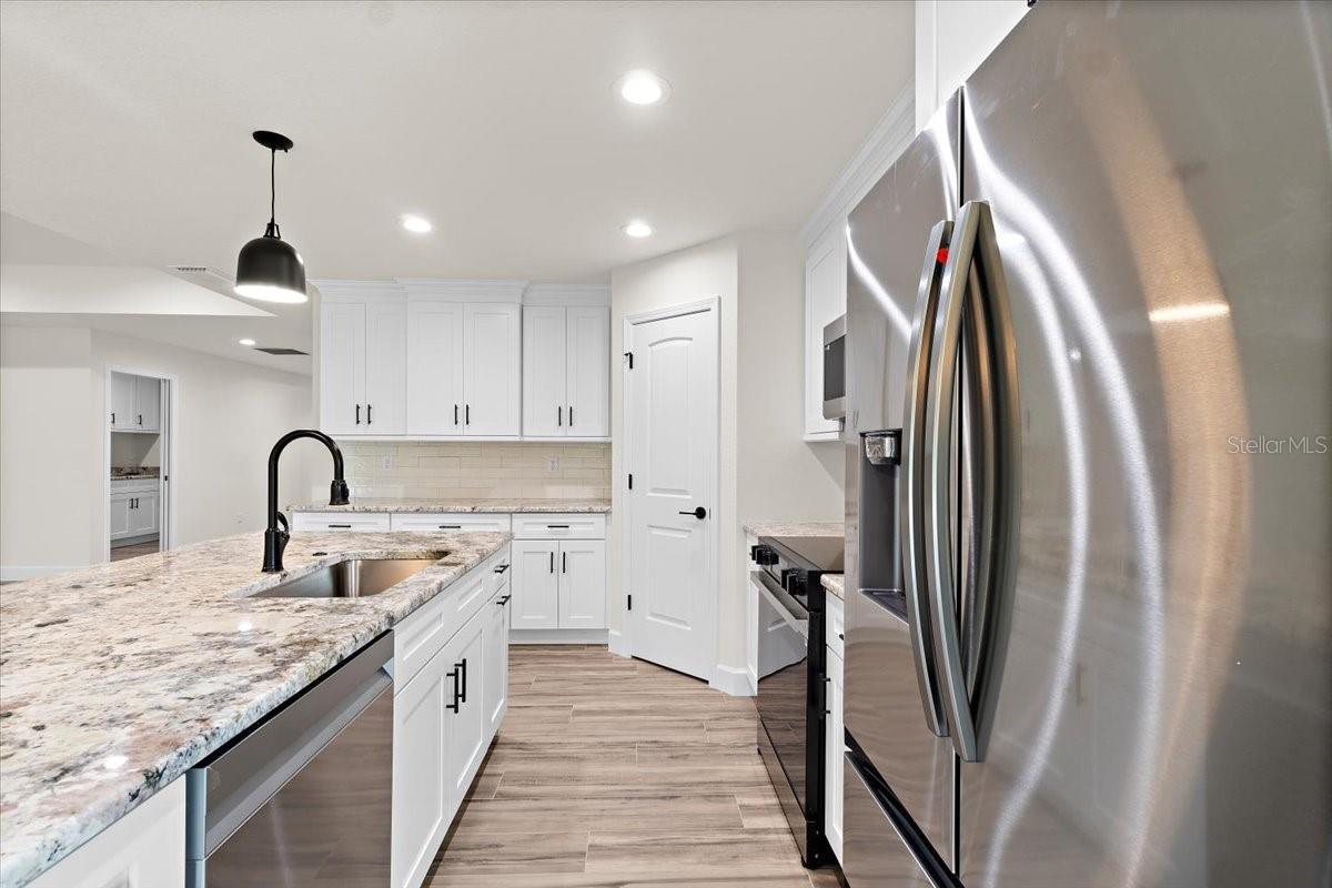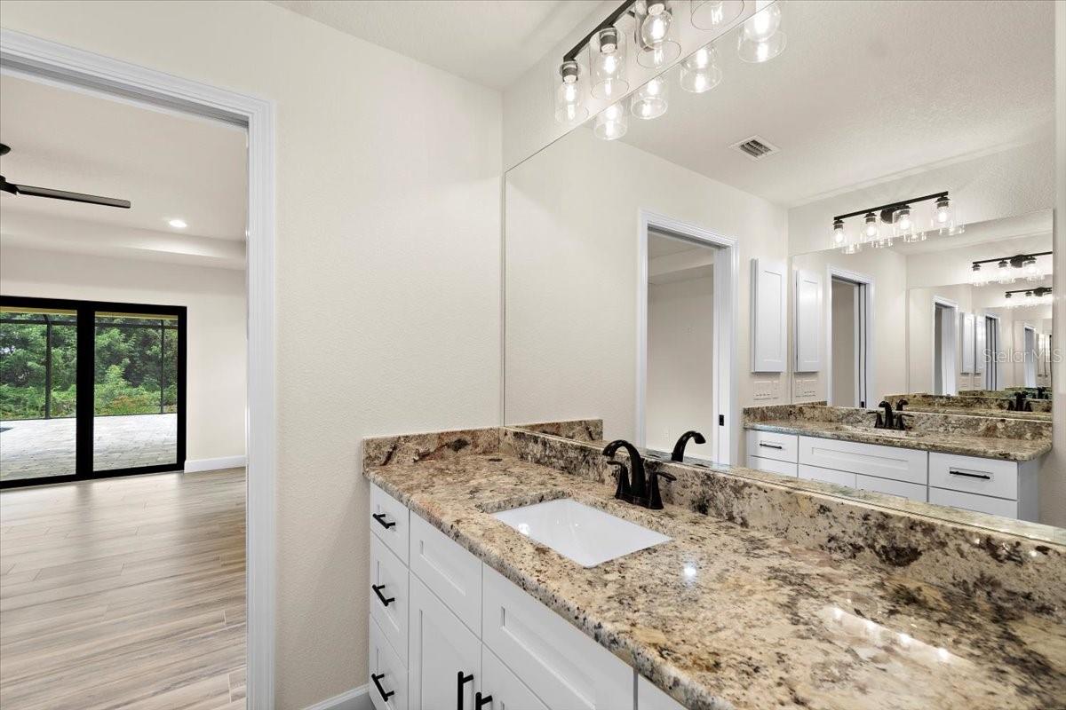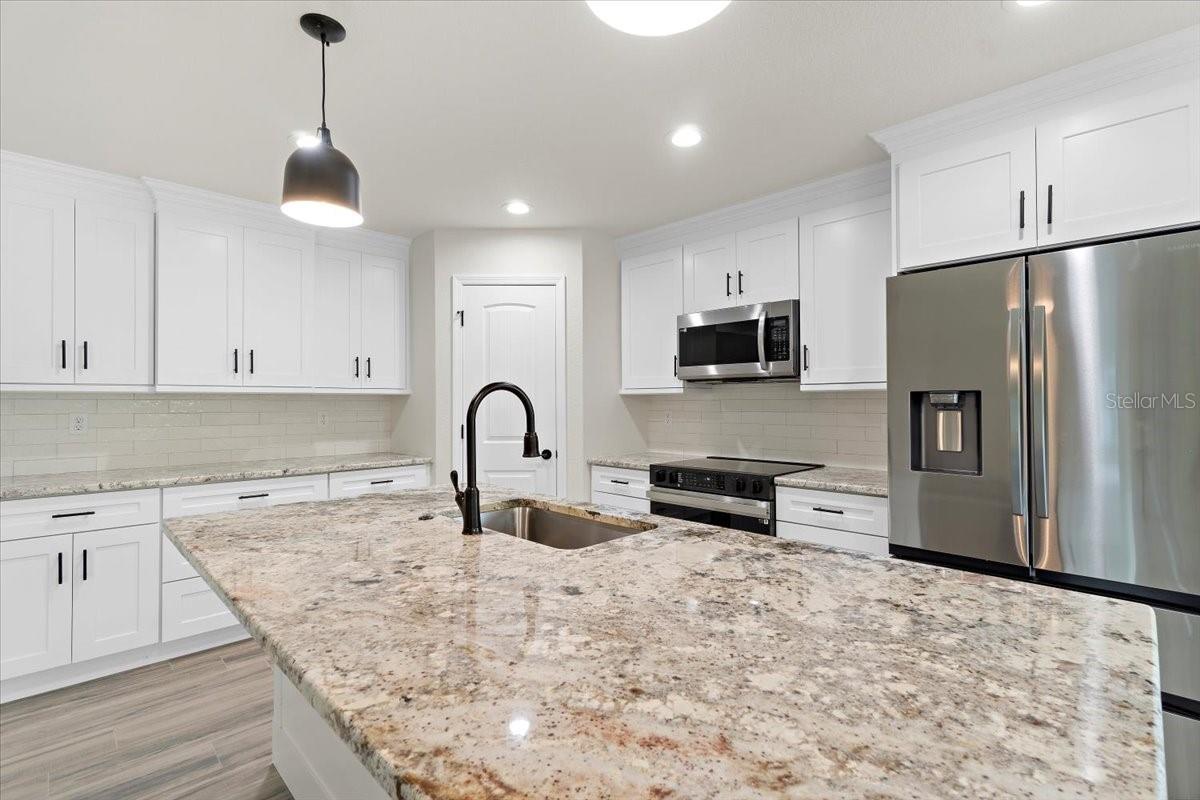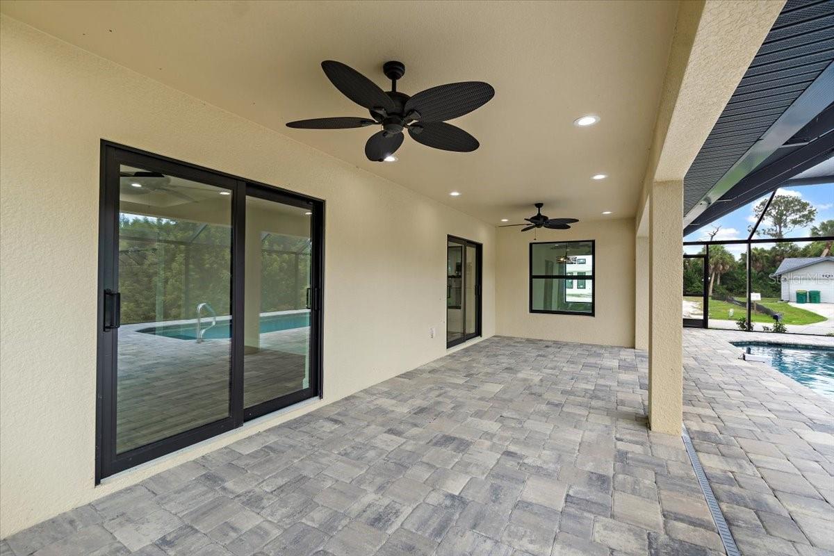 Builder incentive now offered! Take advantage and save thousands upfront—seller will contribute up to 2% toward an interest rate buy-down or buyer’s closing costs. This stunning Regina model by JWM Residential is 100% complete and move-in ready. Designed with style and durability in mind, this pool home features all impact-rated windows and sliders, offering peace of mind during hurricane season. Step inside and enjoy a bright open-concept layout with elegant tray ceilings and plank porcelain tile flooring throughout. The kitchen is beautifully appointed with stone countertops, tile backsplash, shaker-style cabinetry with crown molding, a walk-in pantry, and Samsung stainless steel appliances. The owner’s suite includes a spacious bath with dual vanities and a private water closet. The second bathroom features a tub-shower combo, ideal for guests or family. A dedicated laundry room includes built-in cabinetry for added storage. Additional upgrades include a full ceiling fan and lighting fixture package, energy-efficient LED recessed lighting in key areas, and a Nest thermostat for smart climate control. The curb appeal continues with a welcoming front porch finished in textured Spraycrete and a 2-car garage with epoxy chip flooring. Sliding glass doors from both the living room and owner’s suite lead to the expansive outdoor area. Your private backyard retreat includes a screened lanai, paver pool deck, and a Pebble-Tec concrete pool, perfect for entertaining. Outdoor dimensions: pool deck (43x20), covered lanai (29x10), and pool (23x12). The landscaped yard is fully irrigated with a RainBird system for effortless maintenance. This thoughtfully designed home checks every box—schedule your showing today and experience the quality of JWM Residential for yourself.