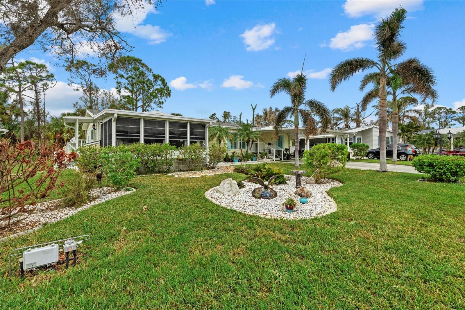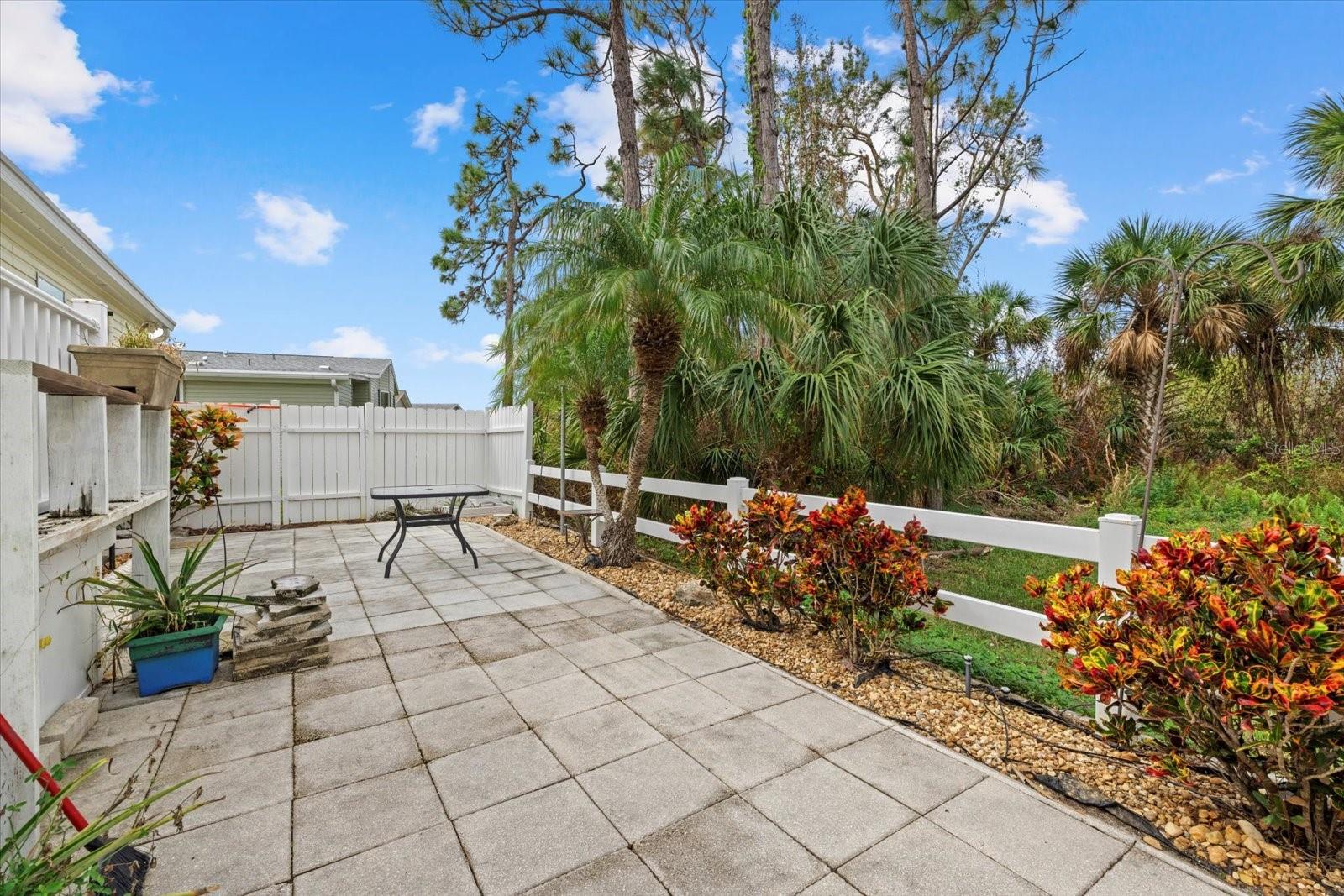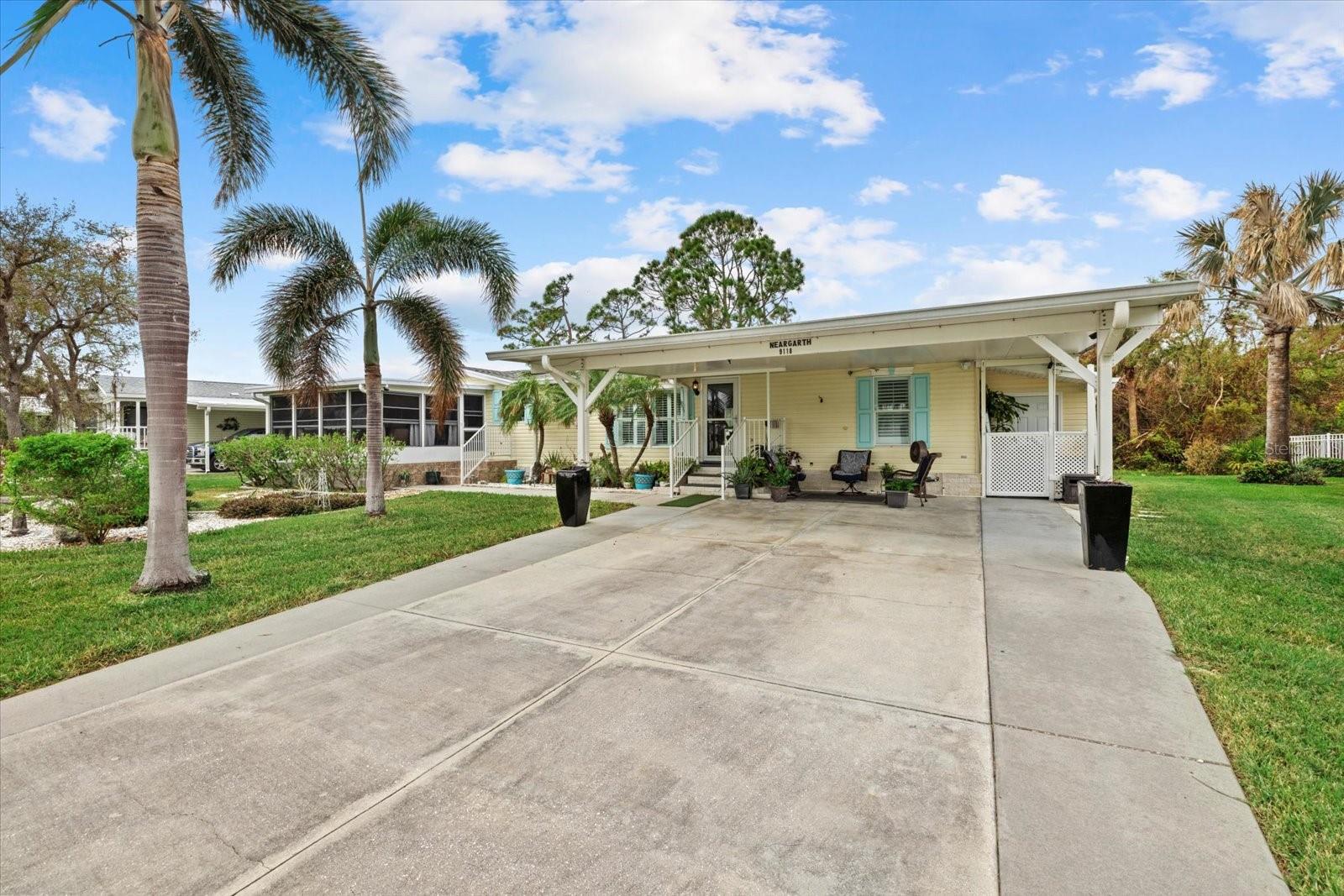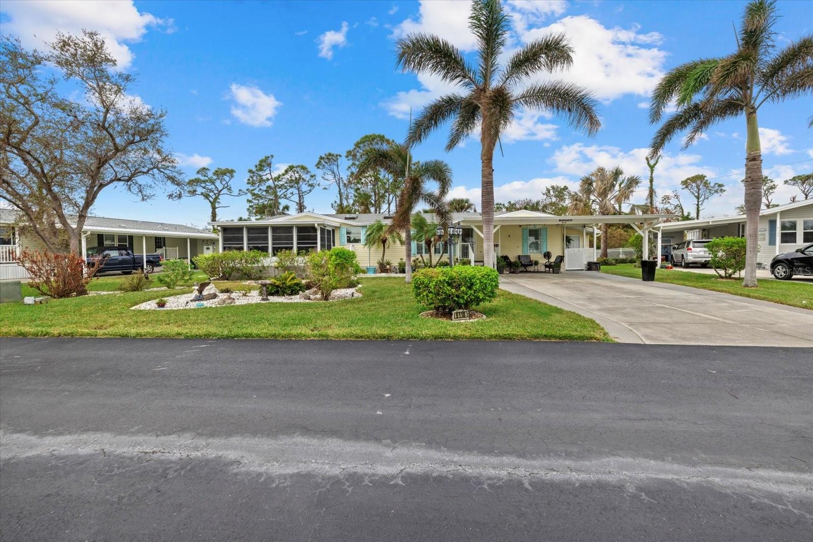 Welcome to The Pines at Sandalhaven, a serene 55+ community where this charming 3-bedroom, 2-bath home awaits! Featuring covered carport spaces and a cozy front porch, this home invites relaxation from the start. Inside, enjoy a spacious living room with crown molding that flows seamlessly into the dining area, perfect for entertaining. The primary suite includes an ensuite bathroom with dual vanity sinks, a standalone shower, and a built-in vanity. Additional features include a versatile office space and an enclosed sunroom that opens to a private, fenced-in back patio with no rear neighbors. Located close to local beaches, nature parks, restaurants, shopping, and more, this home combines comfort with convenience—all with low HOA fees. Don’t miss out on this incredible opportunity!