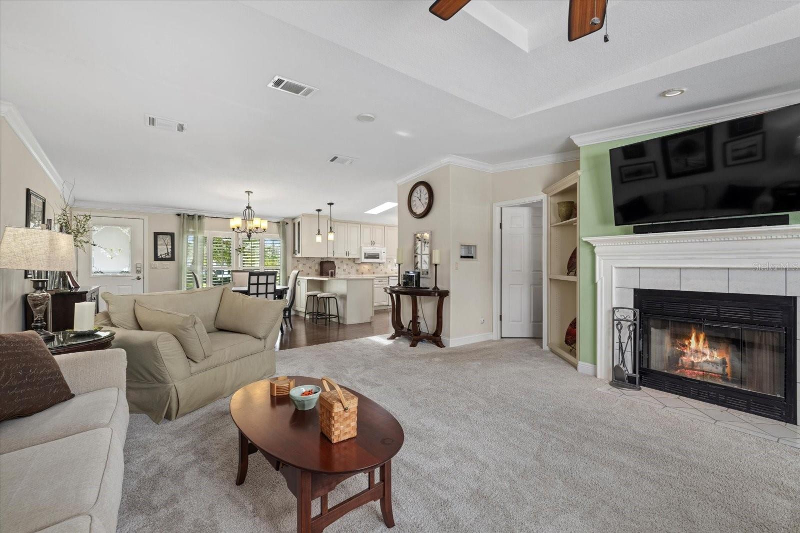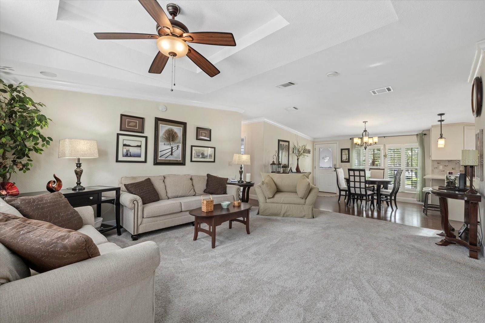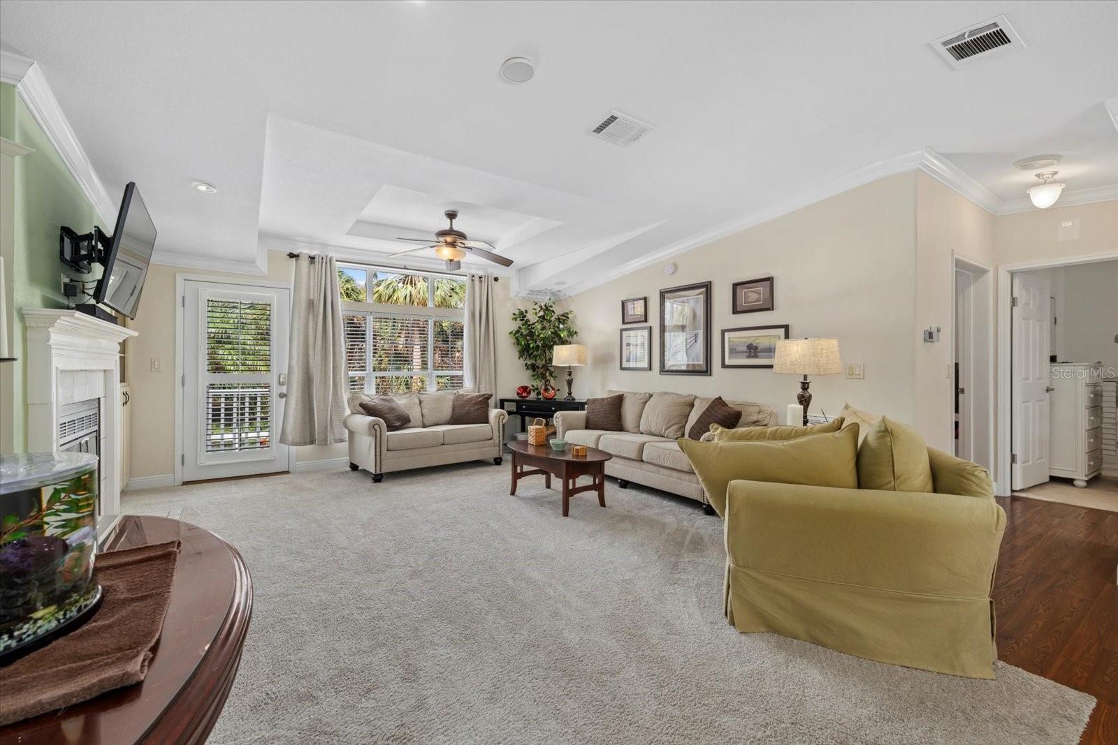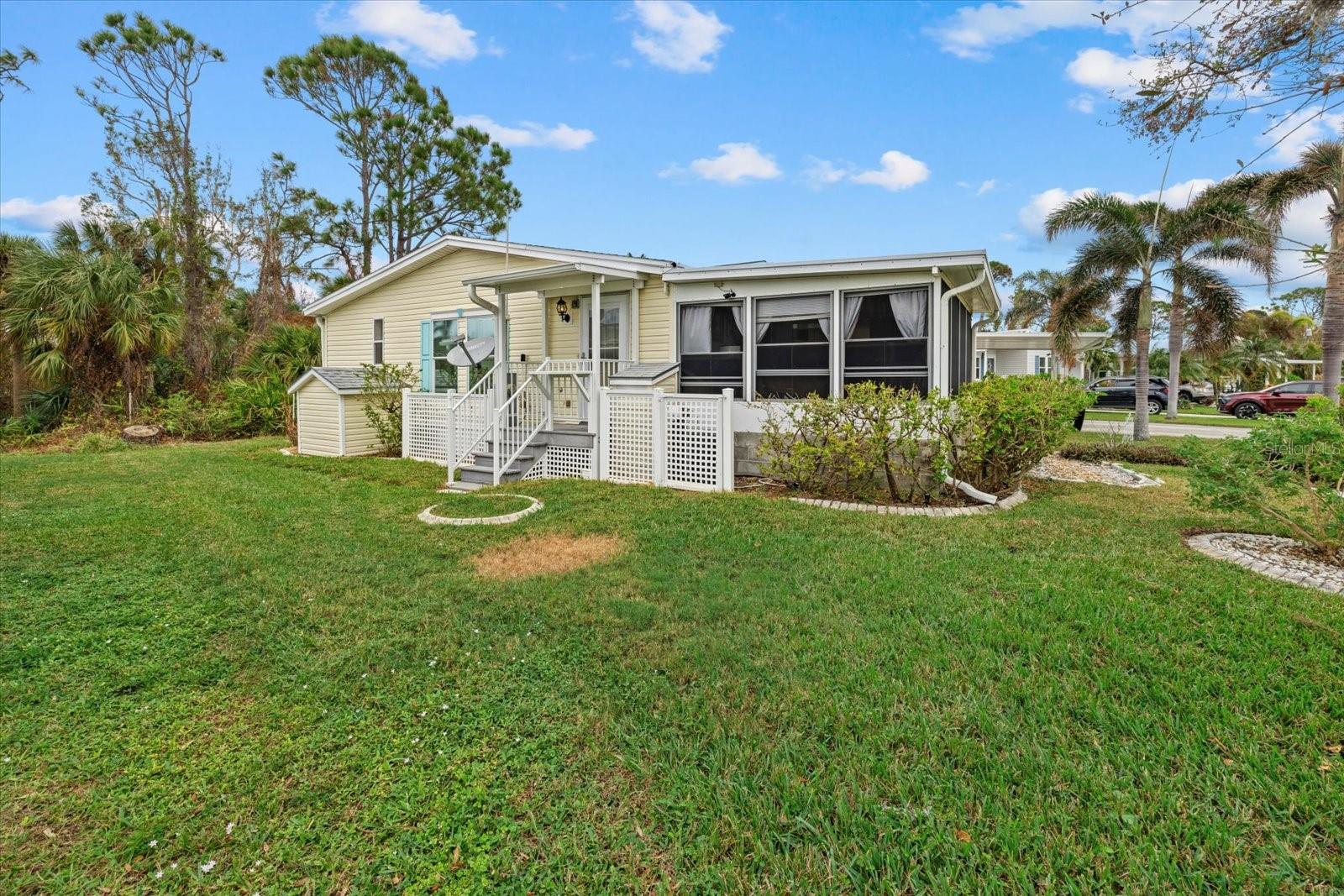 Welcome to The Pines at Sandalhaven, a serene 55+ community where this charming 3-bedroom, 2-bath home awaits! Featuring covered carport spaces and a cozy front porch, this home invites relaxation from the start. Inside, enjoy a spacious living room with crown molding that flows seamlessly into the dining area, perfect for entertaining. The primary suite includes an ensuite bathroom with dual vanity sinks, a standalone shower, and a built-in vanity. Additional features include a versatile office space and an enclosed sunroom that opens to a private, fenced-in back patio with no rear neighbors. Located close to local beaches, nature parks, restaurants, shopping, and more, this home combines comfort with convenience—all with low HOA fees. Don’t miss out on this incredible opportunity!