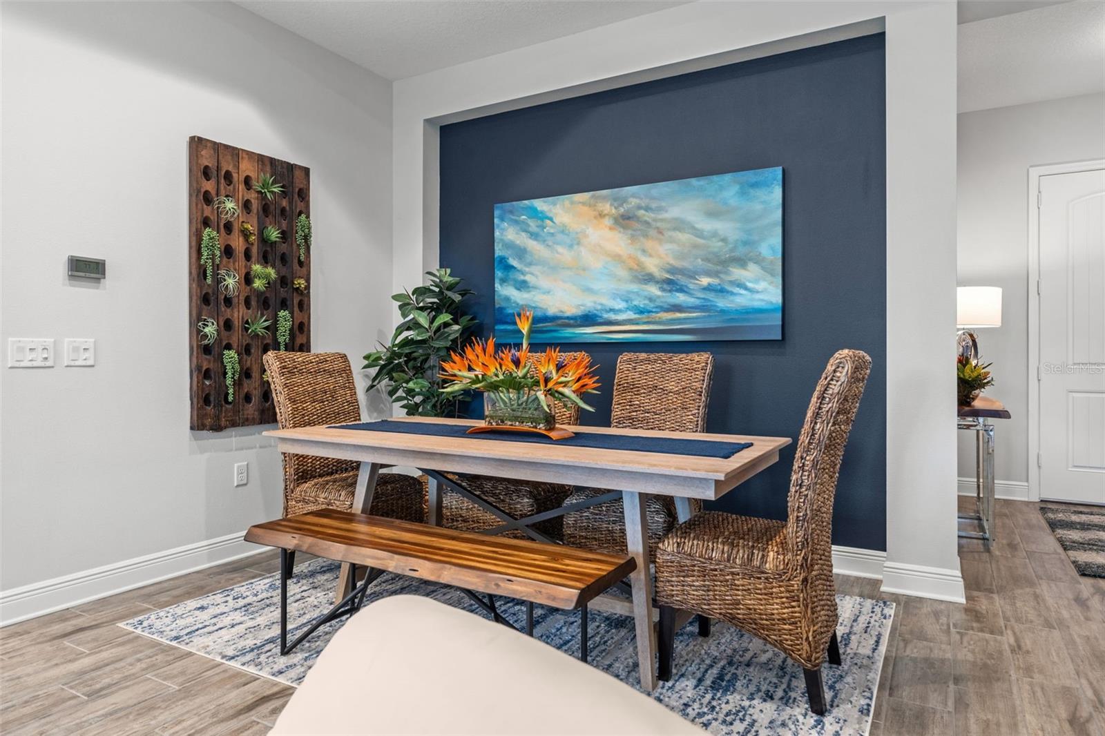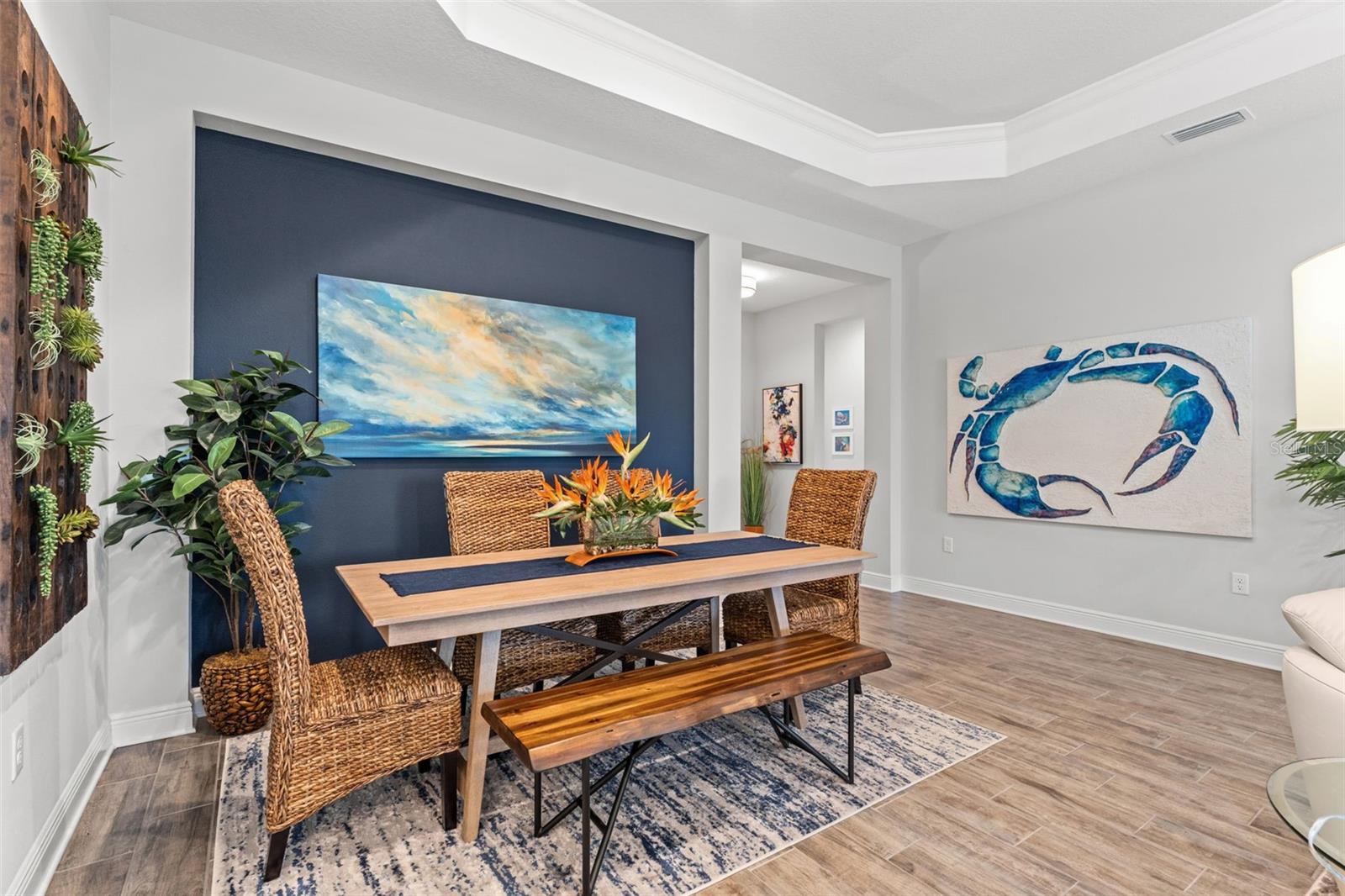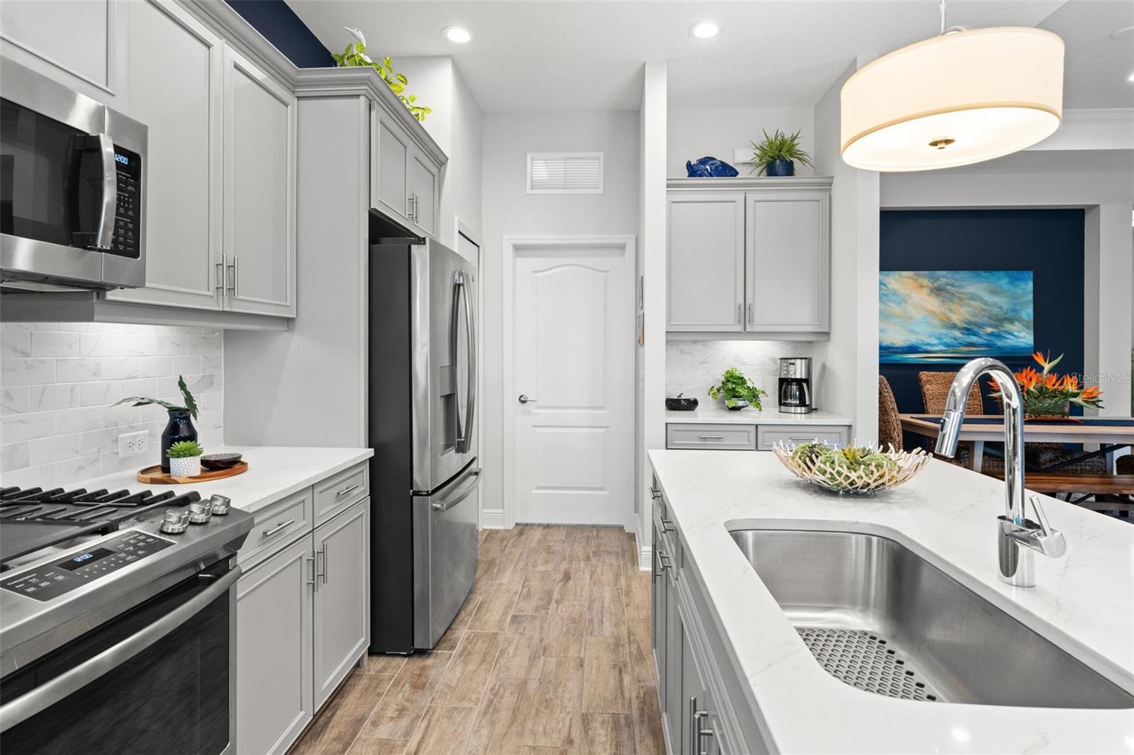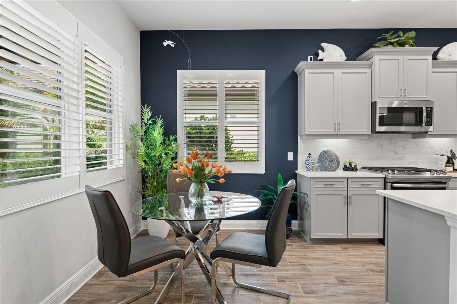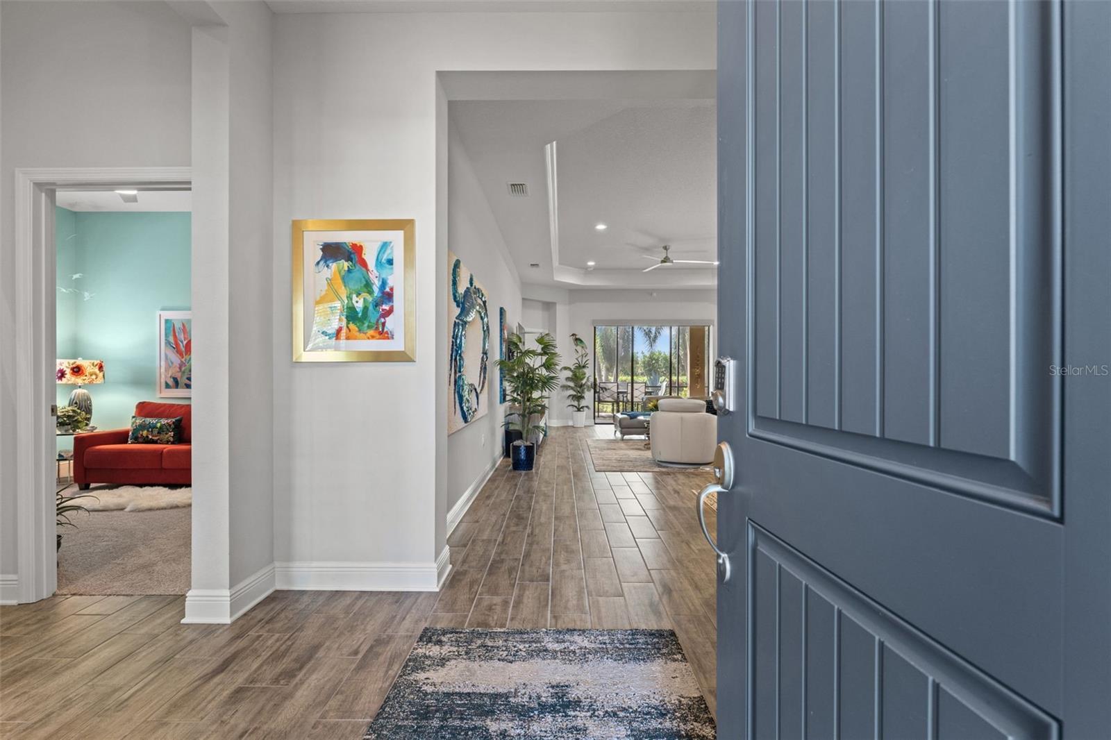 Welcome to Boca Royale, where luxury meets leisure in a picturesque gated community just a stone’s throw from pristine beaches and exceptional boating and fishing opportunities. This home, unaffected by recent hurricanes, is located in an exclusive neighborhood that offers an 18-hole championship golf course, a vibrant clubhouse with dining options, and an array of amenities including tennis and pickleball courts, a state-of-the-art fitness center, and a stunning resort-style pool with a tiki bar. This charming 3-bedroom, 2-bathroom home in the sought-after St. Bart’s community offers a generous 1,870 square feet of living space. High ceilings and plentiful windows create an airy feel throughout the home. Enjoy seamless indoor-outdoor living with large sliding glass doors that open to a covered patio and a spacious screened lanai, all overlooking a private backyard oasis. The kitchen is a culinary delight, equipped with premium stainless steel appliances, sleek quartz countertops, and custom cabinetry that includes convenient features like roll-out shelves and under-cabinet lighting. The master suite is a serene retreat, complete with a sizable walk-in closet and a beautifully designed bathroom featuring dual vanities and a walk-in shower. Additional highlights include energy-efficient elements such as hurricane-rated windows, remote controlled storm smart hurricane curtains, and a high-efficiency HVAC system. With the added benefit of no CDD fees, this home is an ideal choice for those seeking a lifestyle filled with comfort and convenience.