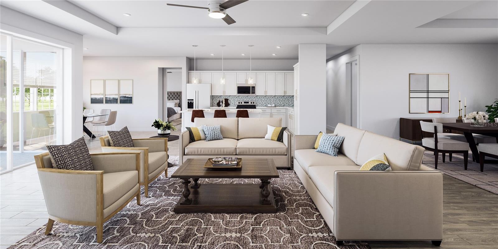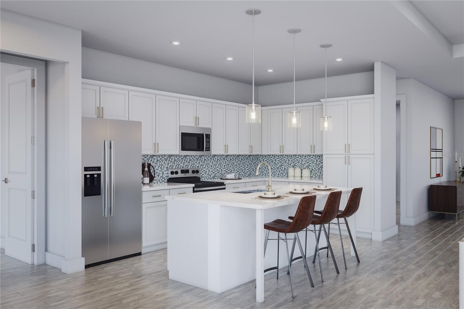 Under Construction. *READY EARLY 2025* Welcome to elevated living at its finest with the stunning Boca Ciega floorplan by Carpenter Homes—a true masterpiece within the Signature Series, proudly certified by the Florida Green Building Coalition (FGBC). This exquisite new construction boasts 4 spacious bedrooms, an oversized office/flex room, and 3 full bathrooms—perfectly designed for luxury, comfort, and style. As you enter, be captivated by the custom-designed kitchen that serves as the heart of the home. An expansive oversized Waterfall island flows effortlessly into the open living and dining areas, creating a perfect space for entertaining and daily living. The kitchen dazzles with painted Shaker 42” Nightfall soft-close cabinets, a beautiful Anatolia Element 3x9" Beveled Glass Skylight Tile backsplash, and sleek Cambria 3cm Bristol Bay Quartz countertops. Every detail has been carefully curated, including a Moen Align chrome kitchen faucet with a contemporary zero radius kitchen sink, energy-efficient stainless steel appliances, and a built-in garbage disposal—merging style with function. The great room features a soaring vaulted ceiling, and expansive 8 foot 3-panel sliding glass doors that lead to your private, oversized pool/patio—an oasis designed for relaxation and entertaining. Enjoy the luxurious Brushed Nickel Chandeliers in your dining room & breakfast nook. The 52” Indoor Brushed Nickel 5-Blade Modern Reversible Ceiling Fans in every bedroom and the great room keep the air flowing in the Florida warmth, while the stunning Anatolia Altezza 12”x24” Glazed Porcelain Tile & Carraraplank flooring ties the space together with modern elegance. The Owner’s suite is nothing short of a luxurious retreat, featuring dual sinks, an upgraded glass-enclosed shower adorned with 4x16” Anatolia Soho white tiles, complemented by Anatolia Zen Flat Pebble vertical listello accents, a striking 72x36” contemporary mirror with front and back LED lighting, anti-fog technology, customizable color settings with a dimmer, and two expansive walk-in closets—offering both indulgence and practicality. The second bathroom continues the luxe experience with the front and back LED mirror, Anatolia Soho 4”x16” Ceramic Tile shower walls, Everleigh quartz vanity, and Moen Genta LX chrome fixtures for a sleek, polished look. The 13x26' outdoor pool with a water feature is a standout addition of this home, offering a luxurious sun shelf and enclosed with a birdcage for year-round enjoyment. The pool is 3-5 feet deep and includes stunning 2-color LED lighting, a variable-speed circulation pump, and an advanced salt-chlorine generator. Additional upgrades include a heater for comfortable swimming in any season, plus smart automation with a cell phone adapter, allowing you to control the pool’s settings from anywhere. Thoughtfully designed with every convenience in mind, this home includes a utility room with a wash basin, energy-efficient R-4.1 insulation on exterior concrete walls, Taexx pest control tubes, and metal hurricane shutters for every window. The Florida-friendly landscaping is complemented by an irrigation system with a rain sensor, ensuring a sustainable and low-maintenance outdoor retreat. The expansive 3-car garage provides ample space for your vehicles and storage needs, equipped with an electronic door opener and two remotes for convenience. Available for viewing anytime—schedule your tour today!