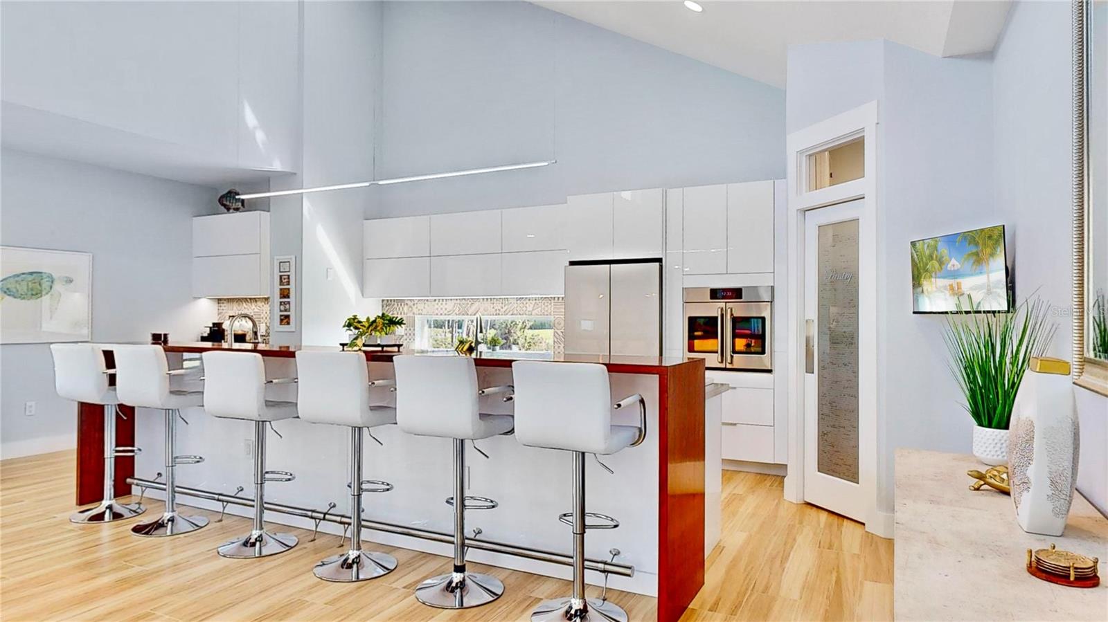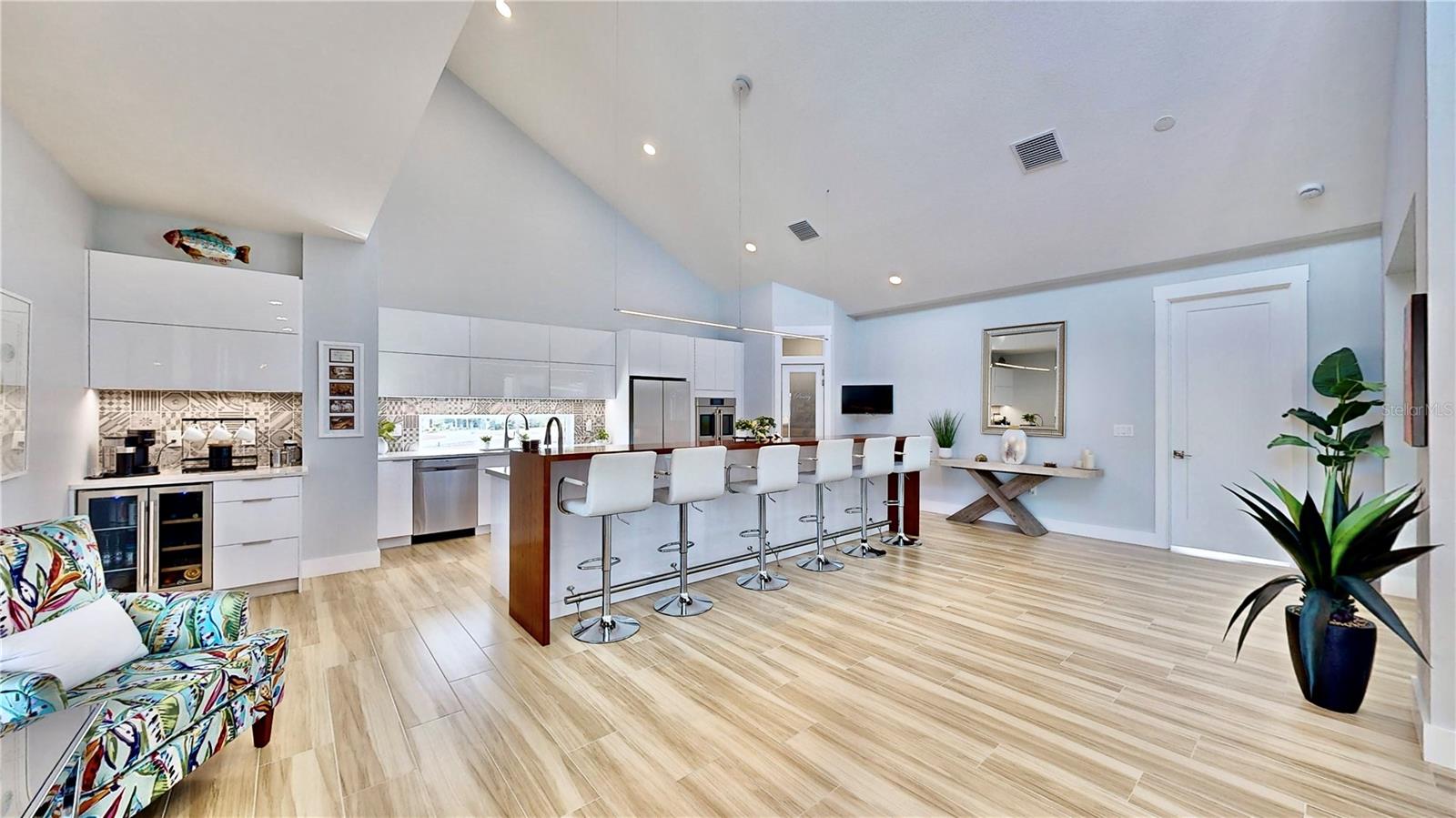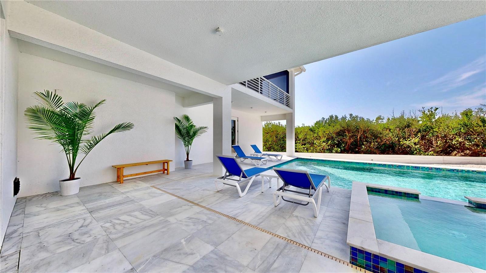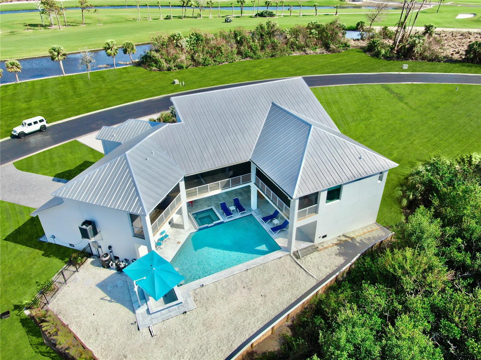 Enjoy entertaining guests in this *Custom Built in 2023 Masterpiece* Located in the exclusive, gated "Eagle Preserve Estates". The lot is uniquely between Lemon Bay Golf Course and Lemon Bay. This Meticulously kept, only one owner, Elevated-Home Boasts 2,424SQFT, 3 Bedrooms, 3.5 Bathrooms on the second-floor main living space, has a Metal Roof and a 2+ (Bonus Golf Cart/ Storage Space) Car Garage with Paver Driveway. All 3 Bedrooms have En-Suite Baths, and you'll love that there is an additional half bath is located in the Main Living Area for Guests! Living here you'll get to enjoy **Year-Round** Outdoor Living with a 19’x30’ POOL, which can be HEATED or CHILLED no matter what time of year it is. For added fun, there's a Bubbly HOT TUB and a swim-up DRY BAR with three submerged bar seats! You'll feel like you're on vacation living here. Upon entering the home, you'll notice the soaring high ceilings, fixed glass windows, tons of natural light and expansive views, framed by a private, spacious SCREENED IN LANAI measuring 68’x24, accessible from all three bedrooms. The perfect gathering place for all to read in the breeze, or host an evening get together. Living room has an electric fireplace underneath the TV. At the heart of this home is the kitchen which blends style and functionality, and high-end features. listed all here to show how incredible this of a value this home is to what else is on the market. First, step in and notice this cool factor feature- "Midtown Door style" with TOUCH-TO-OPEN technology. Then notice the 13-FOOT ISLAND with stainless laminate preparation counter attached to a dark wood laminate high-top bar and footrest for comfort. The kitchen also features Quartz countertops, Refrigerator, and a range of TOP-OF-THE-LINE appliances, including an Induction Stovetop which efficiently removes smoke and odors, and a Built-in Convection French-Door Wall Oven. and lastly, there's a coffee wine bar including a Wine and Beverage refrigerator. The floors throughout the home are made of imported Beige Matt Porcelain, creating a seamless transition between indoor and outdoor spaces, including the Lanai. The home is equipped with a Tempra Plus Insta-hot TANKLESS Water Heater for endless, energy-efficient hot water, without taking up space. Laundry room with washer and dry DO Convey!! And the sellers are including the 6 kitchen stools, outdoor furniture on the lanai and the pool deck furniture in sale. Enjoy the instant satisfaction of a new home that has been meticulously cared for by the current owners, leaving no uncertainty about its construction quality. No need to worry if costs will exceed budget or take longer than expected to complete. Two nearby marinas, Skip’s Placida Marina and Cape Haze Marina, opportunities for boat rentals or your boat storage. Just minutes from beaches, restaurants, golf courses, fishing, and top-tier dining, art, and entertainment. Owners put in brand new pool pump. This is a home you'll be proud to call YOUR home! While many residents of Eagle Preserve Estates are avid golfers, having a membership to Lemon Bay Golf Course is not a requirement to own this home.