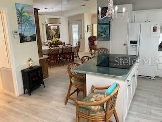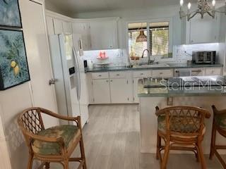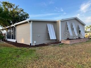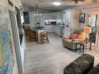 Welcome to Tangerine Woods and this beautiful and rare Cypress model floorplan. Bright and airy with lake views from every room. Tastefully updated and fortified with 2024 exterior renovations. Home exterior was stripped to studs with new windows, OSB sheathing, Tyvek, AND new PGT windows. Roof replaced in 2023. New fridge, dishwasher, and Jennair downdraft range. Beautiful epoxy countertops and tile backsplash. Owners Suite completely redone with new step in shower and neutral ceramic tile flooring. Access to laundry/utility room right off the bathroom. Second bedroom is also connected to freshened up bathroom. You own your land at Tangerine Woods with a modest condo fee of $613/quarter. The fee includes Xfinity cable and internet, lawn mowing and trimming, beautiful club house with heated, lake view pool and spa. You can be as active as you choose here with tennis, pickleball, bocce, shuffleboard, and parties. Fantastic nature trails to view the Florida wildlife. 15 minute bike ride to Manasota Beach! Home Can be conveyed turnkey furnished less a small amount of personal items.