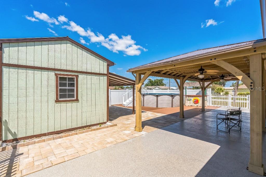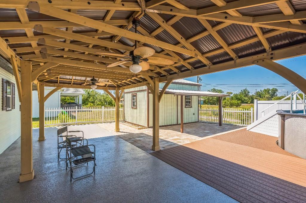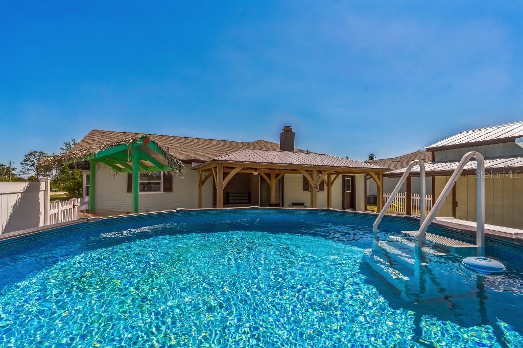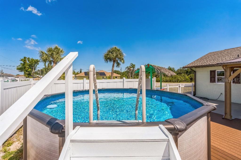 Move in ready home on a large corner lot with a yard to make it your own landscape dream. Great for entertaining, open concept, kitchen, dining room, and step down large living room with a raised wood burning fireplace and sliders leading out to your amazing backyard where you will find a 16 x 12 workshop/shed with electric and lighting and overhead storage And a 8 x 3 workbench. There is a 15 foot above ground pool with tiki bar surrounded by composite decking leading to a 12 x 24 gazebo sitting on a 12 x 48 concrete patio. This area is fenced in. The master bedroom has en suite bathroom with a freestanding soaker tub and separate walk-in shower and exit door out to your patio and a walk-in closet. Guest bathroom has a large walk-in tile shower. The one car garage is oversized with room for your car and the washer and dryer and utility sink area. No flood zone. Easy access to shopping, dining and Manasota Key and Boca grande beaches. New roof, water heater, garage door, new windows with hurricane shutters, soft water system, and new air conditioner in 2020. Plenty of room for your boat/RV with a 30 amp hook up. Come by and check it out!
