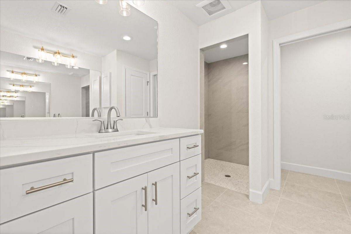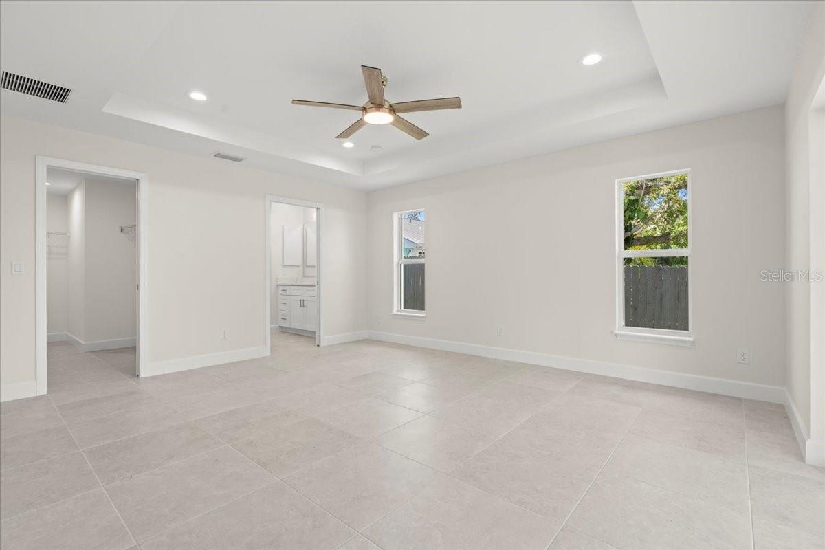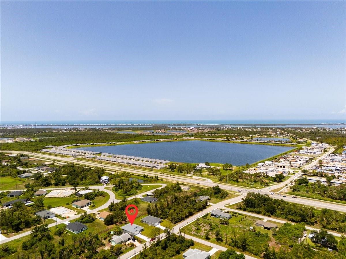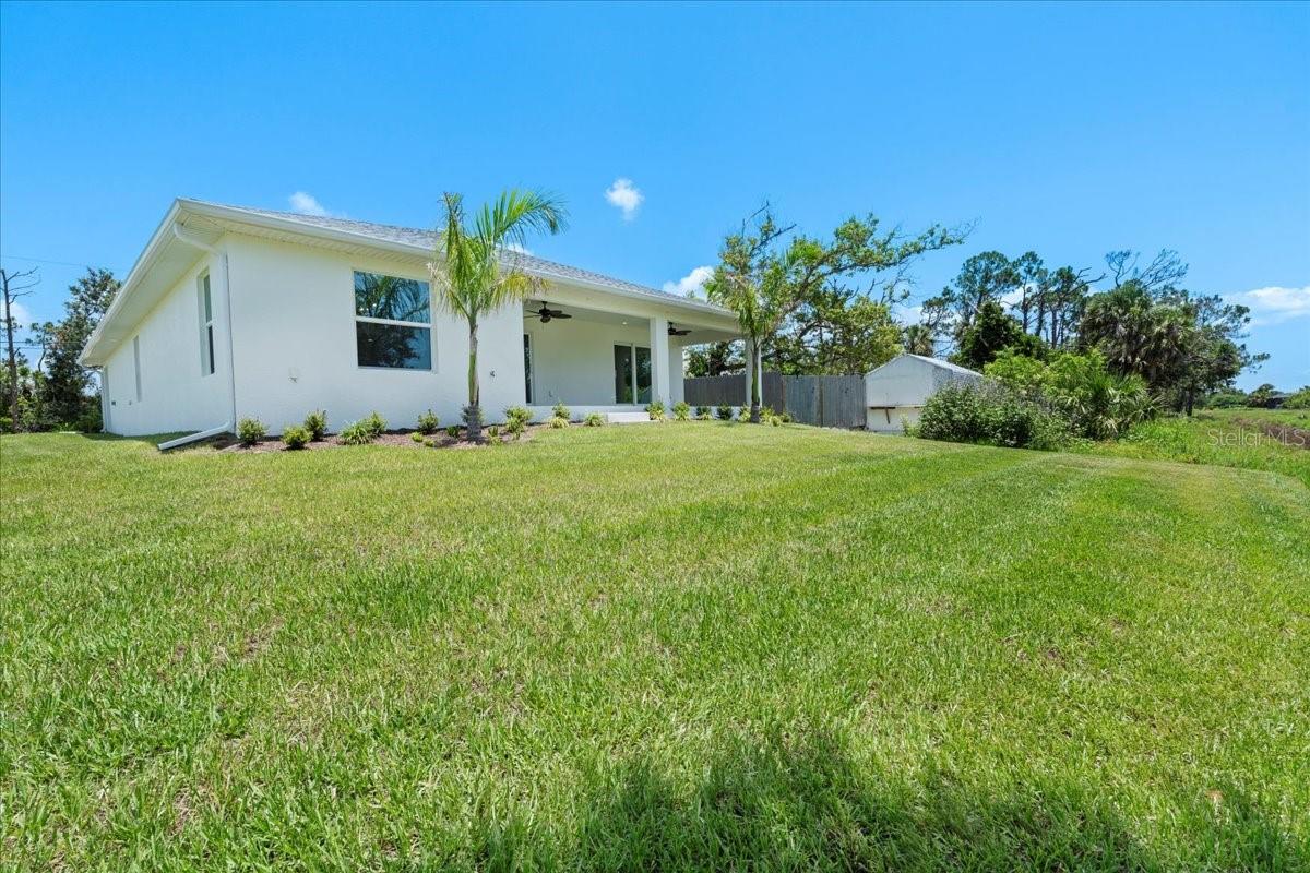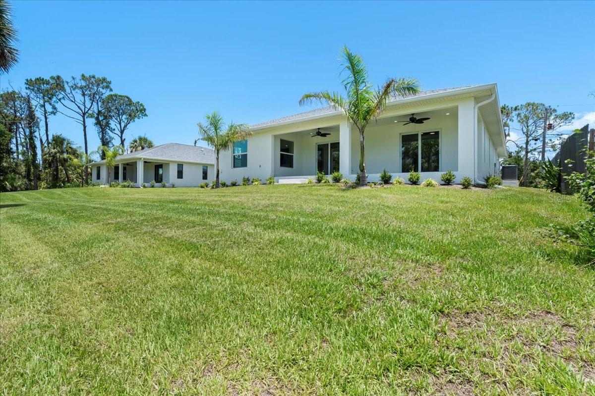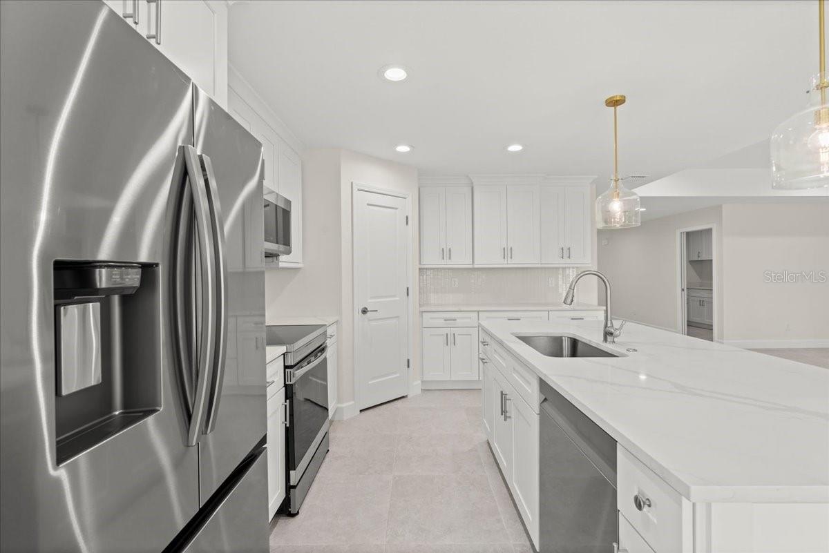 Move right into this never-occupied, beautifully built 3-bed, 2-bath concrete block home combining modern style with thoughtful features. The property includes a 2-car garage with epoxy chip floors, Rain Bird irrigation system, architectural shingle roof, full gutter system, and an attractive Boston hip roof design. PGT impact windows and sliders provide storm protection and energy efficiency. Inside, the kitchen features quartz countertops, shaker cabinets, Samsung appliances, and a sleek tile backsplash. Porcelain tile flooring runs throughout the home, complemented by tray ceilings that add depth and character. The primary suite offers a walk-in closet and a dual-vanity bath. Front and rear porches with spraycrete flooring extend the living space outdoors. Low-maintenance, high-quality construction and move-in ready—schedule your showing today.