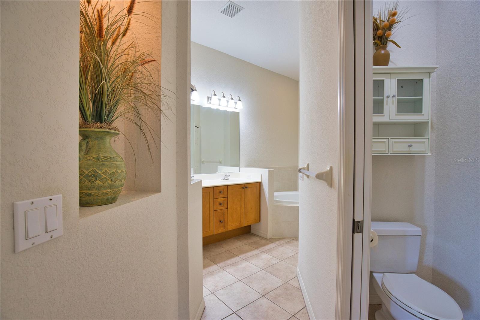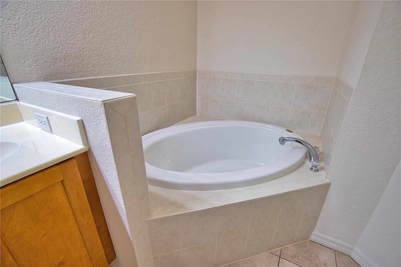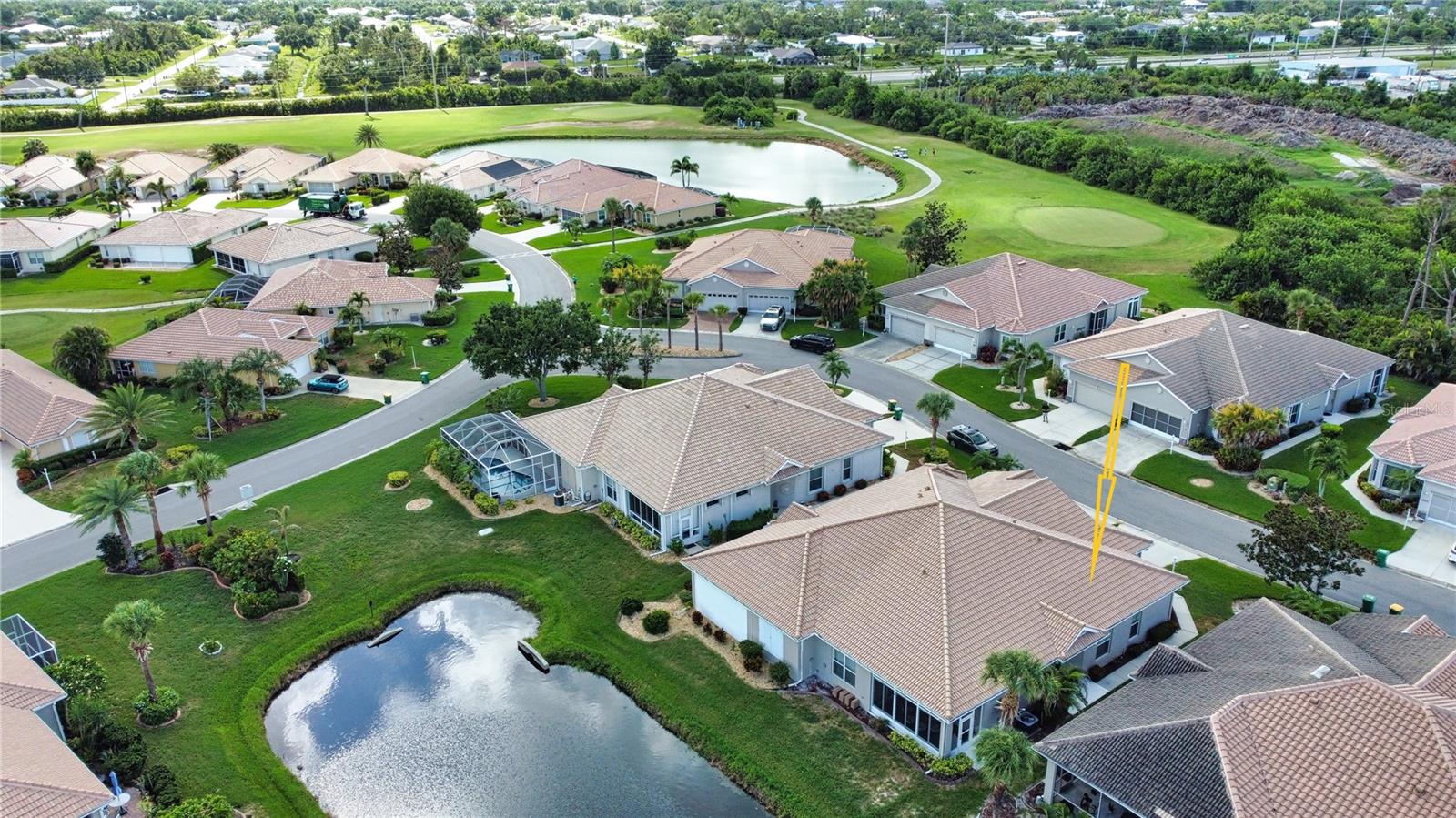 One or more photo(s) has been virtually staged. Enjoy peaceful pond views and Florida living at its finest in this beautifully maintained 2-bedroom, 2-bath villa in the desirable gated community of Oyster Creek. Nothing to worry about in as this maintanence free unit with a new roof (2025). Step into a bright and welcoming home featuring stylish wall colors, a spacious open layout, split bedroom floor plan, and indoor laundry. The kitchen is a standout with stainless steel appliances, custom tile backsplash, abundant cabinetry, pantry, and a breakfast bar that opens to the great room—perfect for entertaining. Tray ceilings and high ceilings throughout enhance the home's airy feel. Ceramic tile flooring flows through the main living areas, with cozy carpet in the bedrooms. Wake up to tranquil water views and glimpses of Florida wildlife from your generous master suite, which also includes dual sinks, a garden tub, walk-in shower, and walk-in closet. Enjoy your evenings or morning coffee on the private enclosed lanai overlooking the peaceful pond—ideal for relaxing or dining alfresco. Additional features include accordion hurricane shutters and no flood insurance required. Oyster Creek is a 24-hour gated community offering resort-style amenities: tennis courts, a large heated pool and spa, fitness center, clubhouse with a full calendar of social events, and access to a public golf course. Make Oyster Creek your private oasis today!