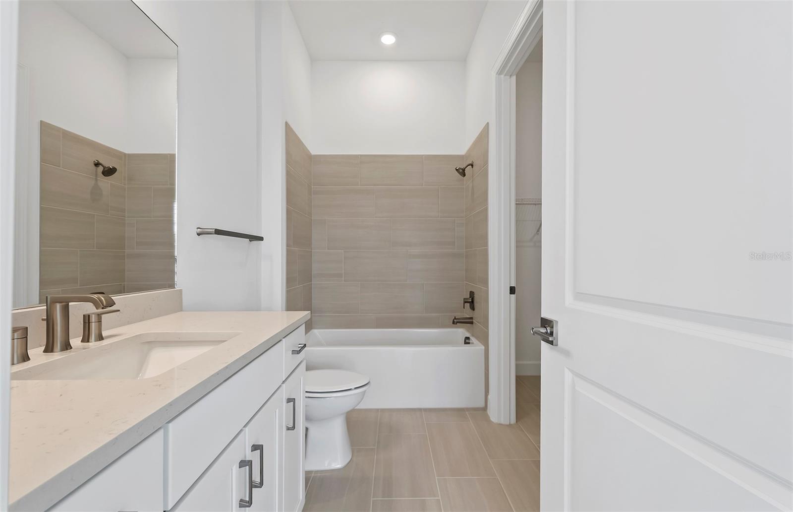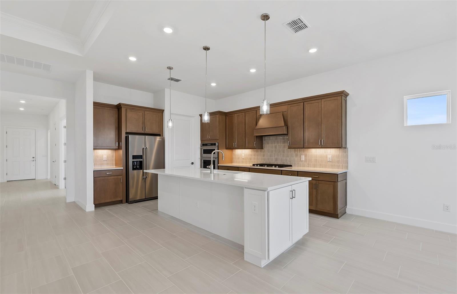 Under Construction. Enjoy this spacious Prestige floor plan featuring 2 bedrooms, 2.5 baths, a flex room and 2-car garage, nestled in a brand new boutique style community. This home features an open floor plan with porcelain tile flooring throughout, impact-resistant doors and windows, and tray ceiling in the gathering room The kitchen is a chef’s delight with gas cooking, a built-in microwave/wall oven combo, two pantries, warm tone wood cabinetry w/undercounter lighting with white cabinets on large island & Silestone countertops. Other features include an enlarged shower in the owner's bedroom, upgraded laundry rm w/sink and cabinetry, screened lanai and washer/dryer/fridge are included! Relaxation is easy at the community pool and cabana while cooking at the BBQ grill area. Don't miss this opportunity to own a brand-new home only 3.5 miles to the beach! Photos are from a furnished model. Options for this home may vary.