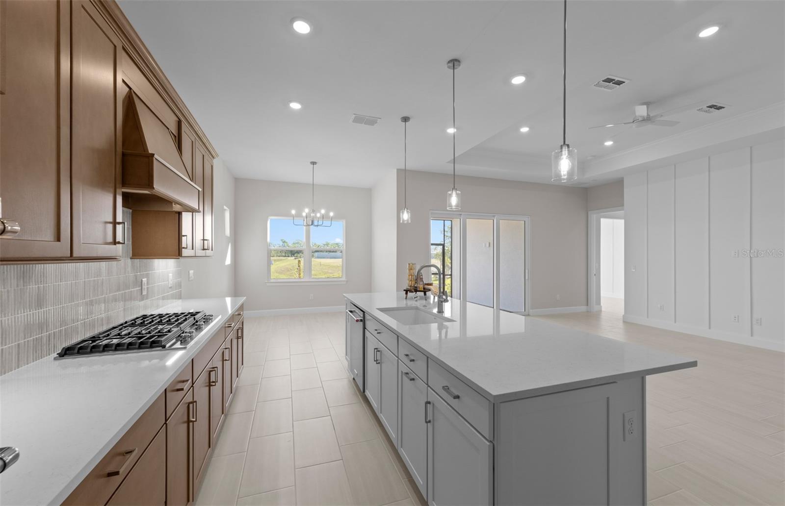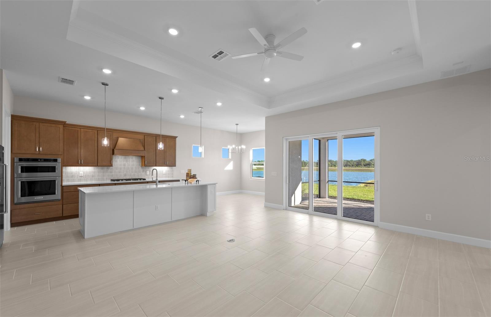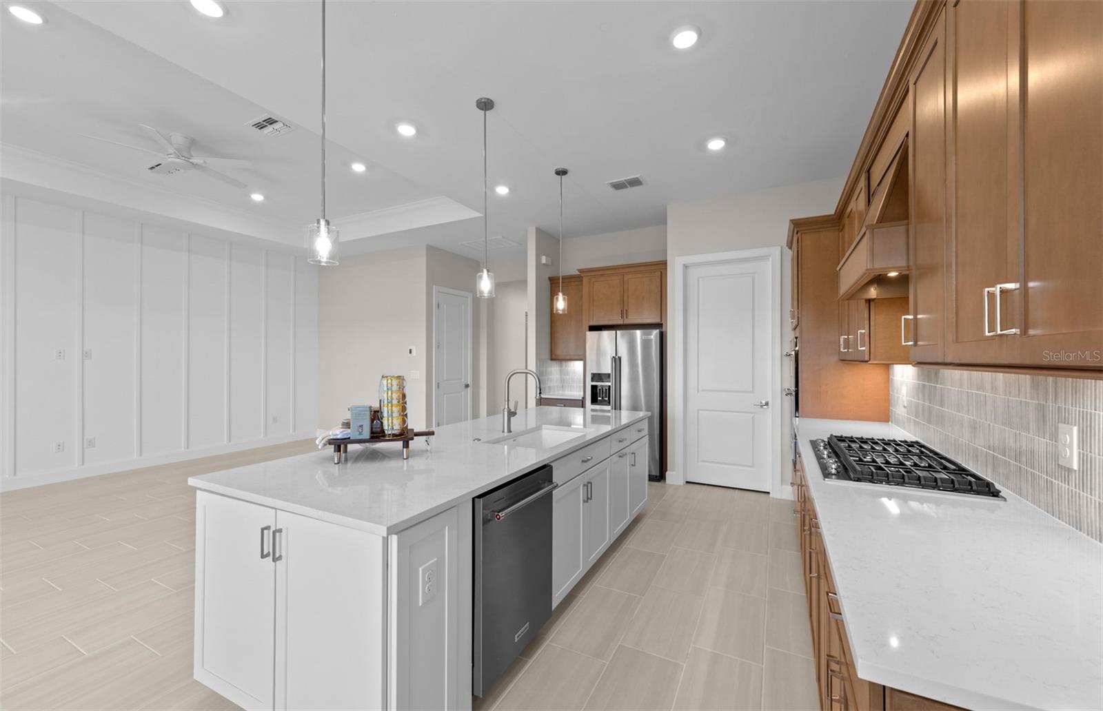 Ready now! Enjoy this spacious Prestige floor plan featuring 2 bedrooms, 2.5 baths, a flex room and 2-car garage, nestled in a brand new boutique style community. This home features an open floor plan with porcelain tile flooring throughout, impact-resistant doors and windows, and tray ceiling in the gathering room The kitchen is a chef’s delight with gas cooking, a built-in microwave/wall oven combo, two pantries, warm tone wood cabinetry w/undercounter lighting with white cabinets on large island & Silestone countertops. Other features include an enlarged shower in the owner's bedroom, upgraded laundry rm w/sink and cabinetry, screened lanai and washer/dryer/fridge are included! Relaxation is easy at the community pool and cabana while cooking at the BBQ grill area. Don't miss this opportunity to own a brand-new home only 3.5 miles to the beach! Photos are from a furnished model. Options for this home may vary.