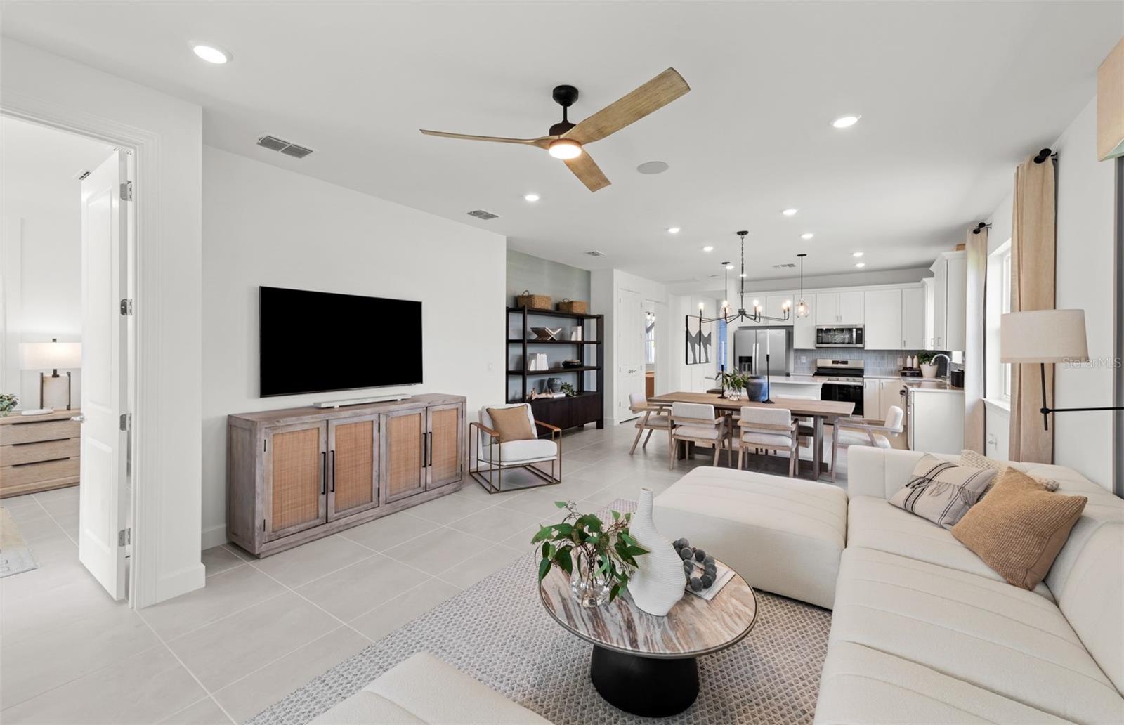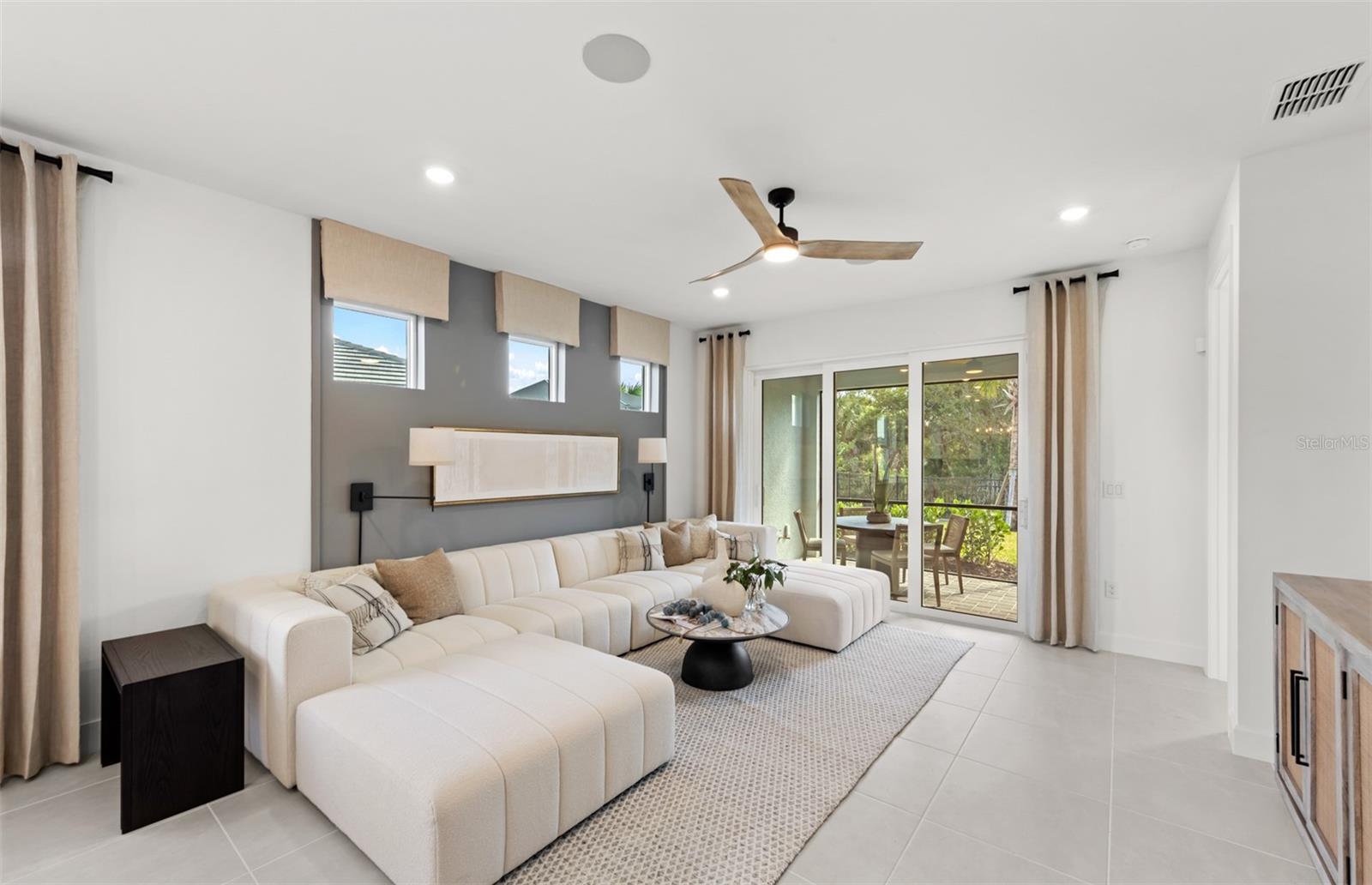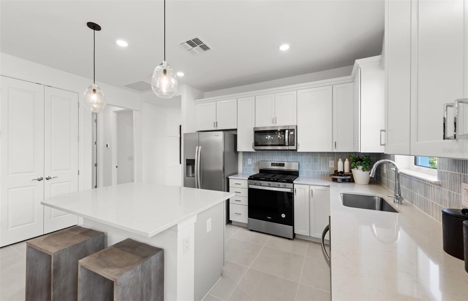 Under Construction. Enjoy the open, light & bright floorplan of this 2 bedroom, 2 bath plus enclosed flex room Ellenwood Villa where the gathering room flows seamlessly into the kitchen and dining area. The kitchen has center island, Silestone countertops and features gas cooking. Porcelain tile flooring throughout, impact-resistant doors and windows, gas tankless water heater, lanai, laundry room with cabinetry and utility sink in the 2 car garage. All appliances including the washer, dryer, refrigerator are included! Relaxation is easy at the community pool and cabana while cooking at the BBQ grill area. Don't miss this opportunity to own a brand-new home only 3.5 miles to the beach!