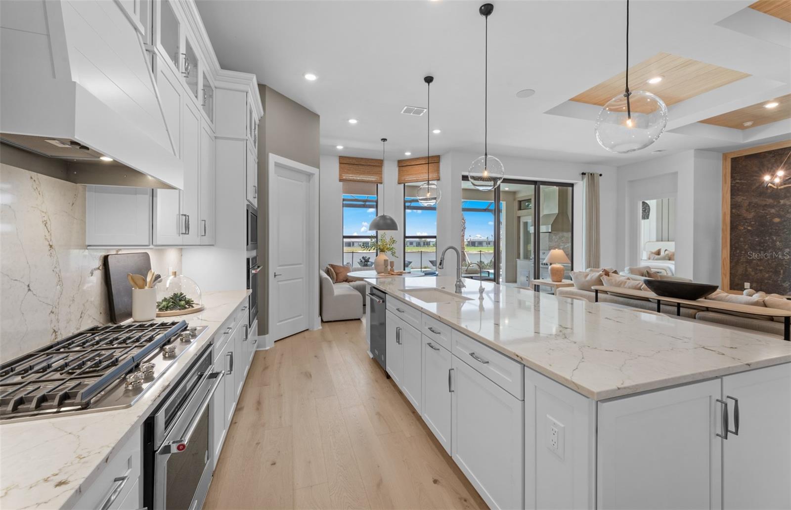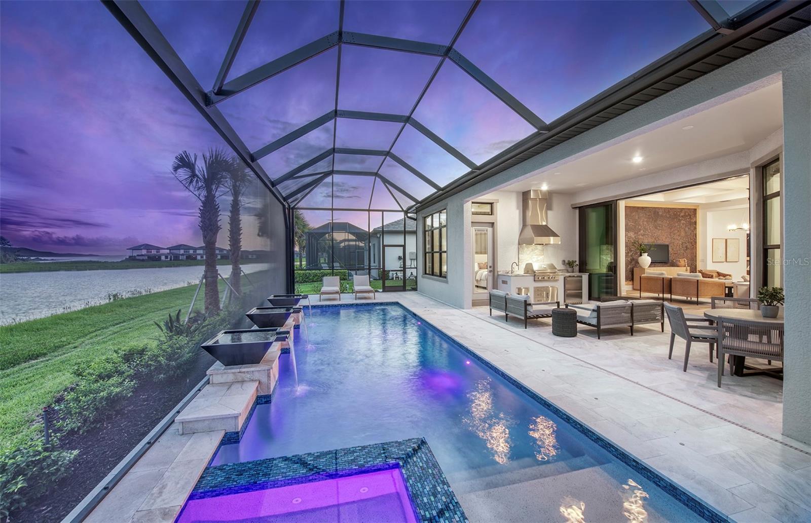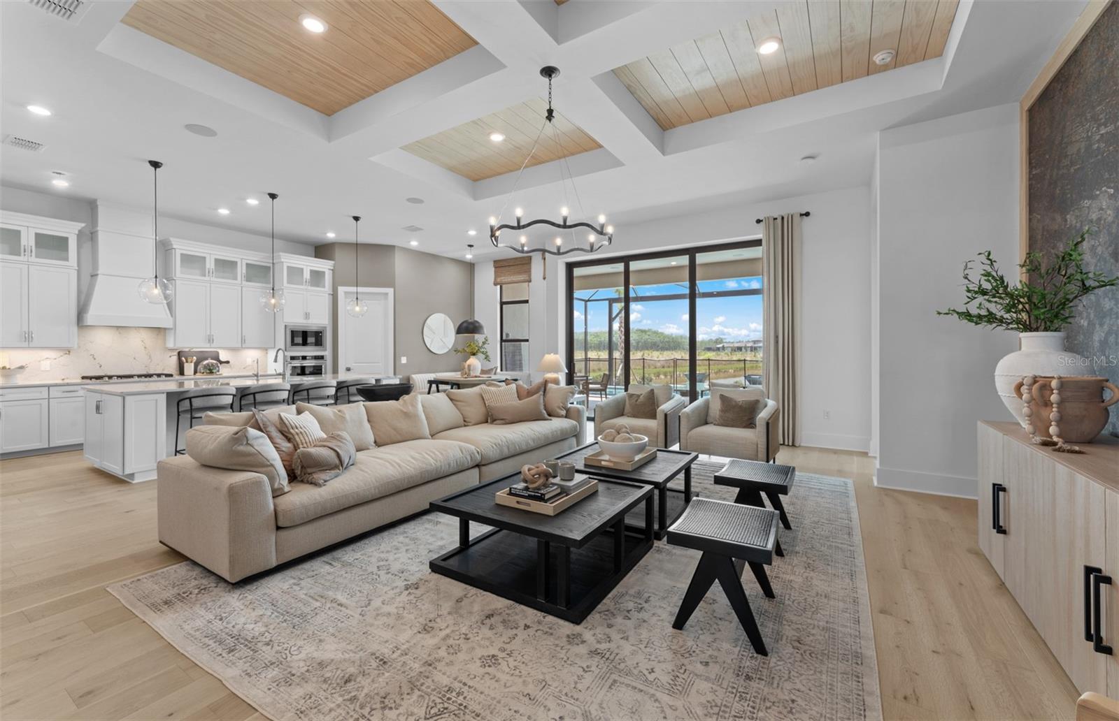Under Construction. NEW CONSTRUCTION! This Layton floorplan features 3 bedrooms, 3.5 bathrooms, a den, and a 3-car garage, complemented by a custom pool and spa with a pool bath. The home showcases dual-tone cabinetry with white cabinets and a gray island, quartz countertops, and built-in kitchen appliances for a modern, functional kitchen. Elegant tray ceilings enhance the foyer, gathering room, and owner’s suite, while 18"x36" tile flooring throughout and epoxy garage flooring provide durability and style. Additional features include a laundry room with sink, cabinets, and countertops, making this home both luxurious and practical. The amenities features 21 sports courts including pickleball, tennis and bocce ball, a resort style pool with a beach entry and attached lap pool with multiple swim lanes, boardwalk with a kayak launch, memorial garden, community garden, dog park, miles of trails, gated entry with guard, second gate to Manasota Beach road, full time activity director, and an 11,000 sq ft fitness center featuring a cafe and 2 restaurants.
