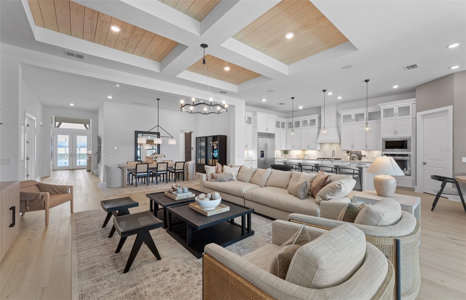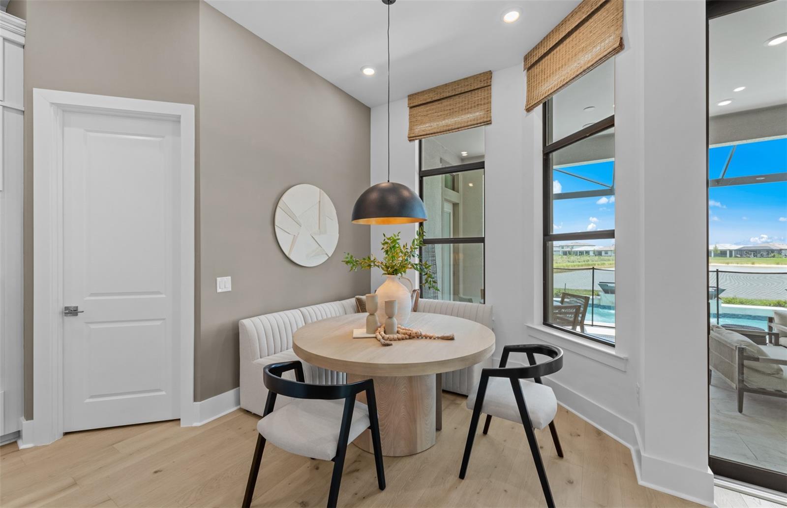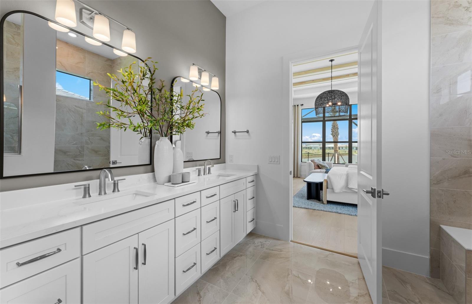 Under Construction. NEW CONSTRUCTION! This Layton floorplan features 3 bedrooms, 3.5 bathrooms, a den, and a 3-car garage, complemented by a custom pool and spa with a pool bath. The home showcases dual-tone cabinetry with white cabinets and a gray island, quartz countertops, and built-in kitchen appliances for a modern, functional kitchen. Elegant tray ceilings enhance the foyer, gathering room, and owner’s suite, while 18"x36" tile flooring throughout and epoxy garage flooring provide durability and style. Additional features include a laundry room with sink, cabinets, and countertops, making this home both luxurious and practical. The amenities features 21 sports courts including pickleball, tennis and bocce ball, a resort style pool with a beach entry and attached lap pool with multiple swim lanes, boardwalk with a kayak launch, memorial garden, community garden, dog park, miles of trails, gated entry with guard, second gate to Manasota Beach road, full time activity director, and an 11,000 sq ft fitness center featuring a cafe and 2 restaurants.