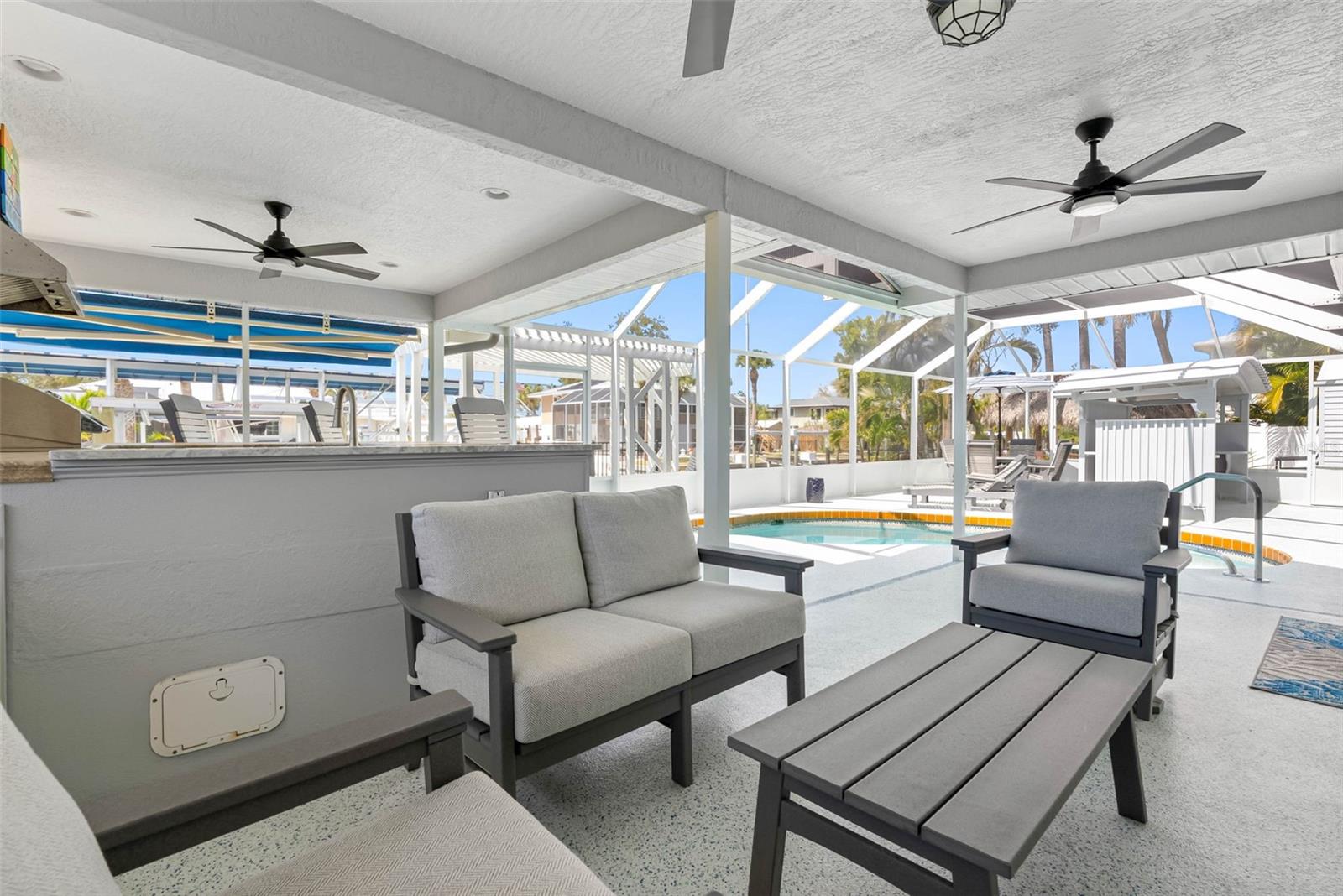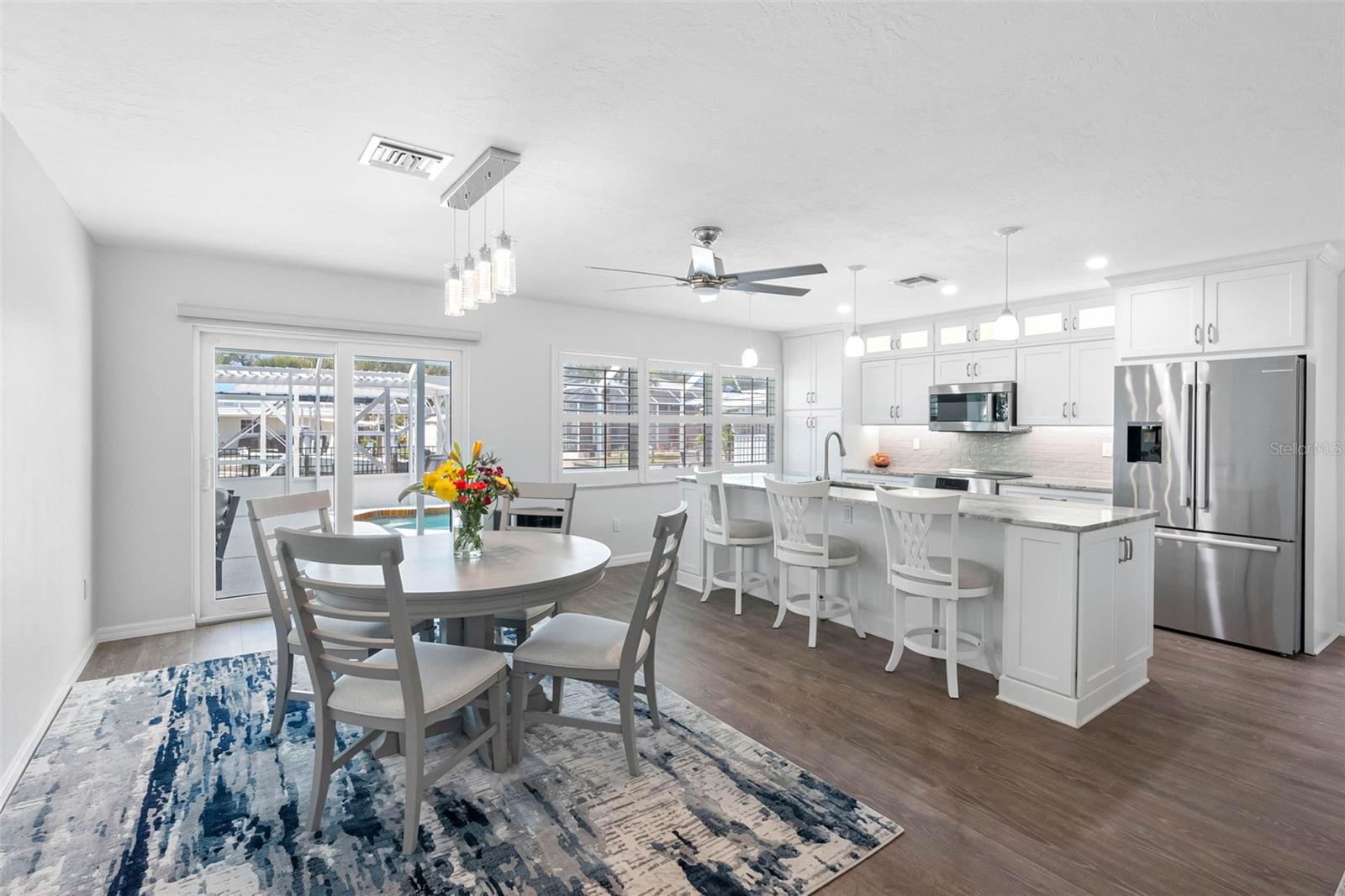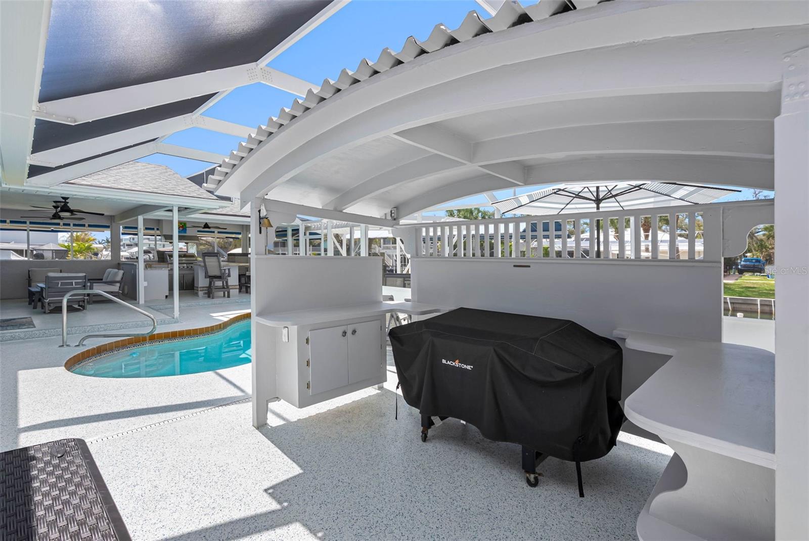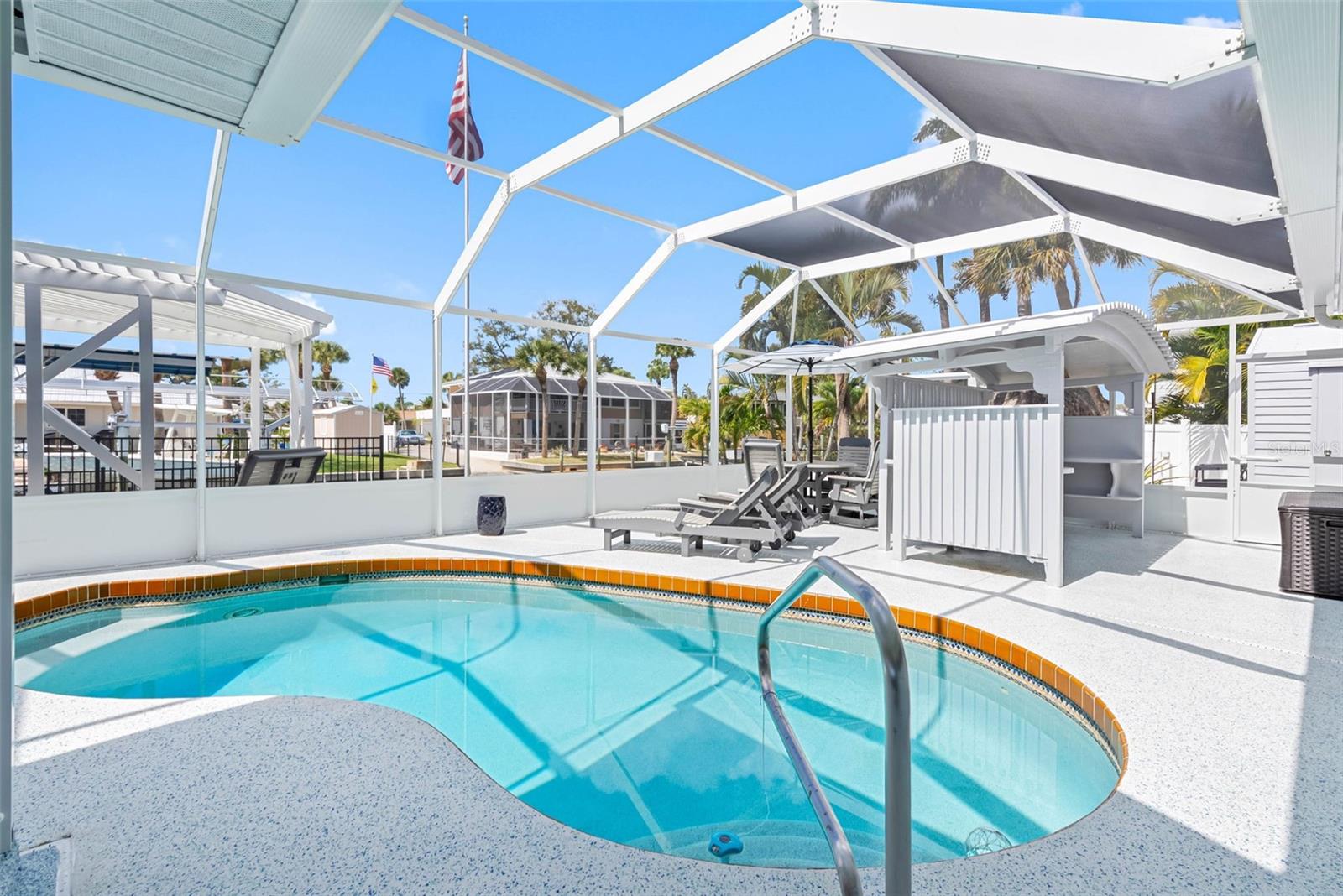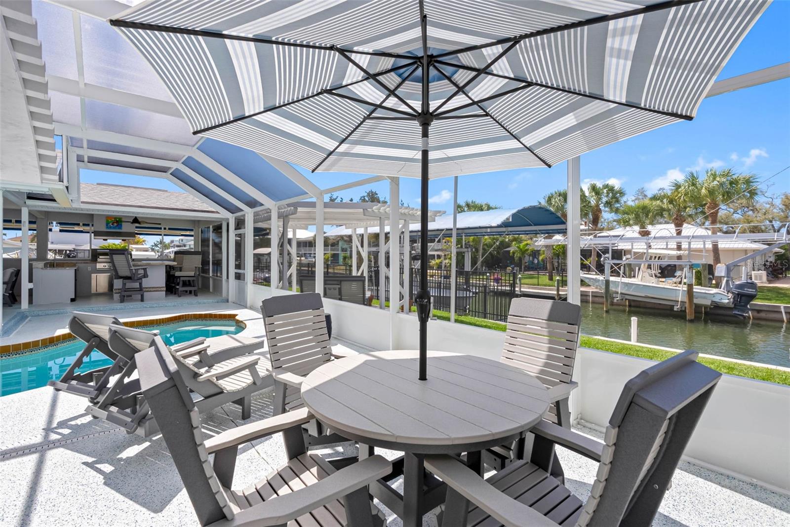 Welcome to 9211 Lake Dr, a charming waterfront retreat in the picturesque Englewood, Florida. This stunning property is not just a house; it’s a sanctuary where comfort and tranquility intertwine, making it the perfect escape for families or anyone in search of a serene getaway. Imagine waking up to the gentle sounds of nature, with the Bill Coy Preserve—home to diverse wildlife, including a majestic bald eagle nest—just steps away, ensuring your views remain forever unspoiled by new construction. As you step inside, you are greeted by an open-concept, recently renovated living space that bathes in natural light, enhanced by elegant finishes that exude warmth and sophistication. The heart of this home is undoubtedly the modern kitchen, a chef’s dream featuring high-end Bosch stainless steel appliances, including an induction range, soft-close drawers, and an attractive glass tile backsplash. With ample counter space and an oversized island, this kitchen is perfect for entertaining guests or enjoying cherished family meals, creating unforgettable memories. Located on a quiet no outlet street, this stunning home features a thoughtfully designed split floorplan, boasting two generously sized bedrooms, including a master suite that serves as a personal oasis, complete with an en-suite bathroom where you can truly unwind after a long day. Imagine basking in the beauty of tranquil sunsets from your expansive backyard, which is equipped for entertaining with an outdoor kitchen patio area perfect for alfresco dining. This delightful space includes hot and cold water, a brand new propane grill with a sleek stainless steel exhaust hood, a refrigerator, and a separate ice maker, ensuring you have everything you need for those memorable gatherings. For the fishing enthusiast, a dedicated fish station with water and electric adds a special touch. The electric heated swimming pool invites year-round enjoyment, while three Sun Setter electric awnings with remote controls provide a shaded retreat on sunny days. The crown jewel of this property is the incredibly rare private boat ramp, complemented by a modern 10,000LB boat lift, complete with an auto stop, remote control, and protective canopy. Just a short boat ride along your canal leads you to Lemon Bay and the intercoastal waters, placing you minutes away from Englewood’s beautiful beaches, shopping, and dining options. Imagine coming home to all-new impact doors and windows that not only provide peace of mind but also invites natural light into the living space. The Arlo security system, complete with a video doorbell, ensures your safety while adding a modern touch to your home. Attention to detail is evident throughout this property which includes a freshly painted interior and exterior, complemented by new tile flooring in the bathrooms and a beautifully refinished cast iron tub that exudes charm and elegance. The backyard is a private oasis, featuring an aluminum fence, an outdoor insulated storage shed with electricity, and even a flag pole with a solar light to illuminate your evenings. With a utility sink in the garage, attic storage for all your seasonal items, and an additional concrete slab for parking, this home truly caters to your every need. Don’t miss your chance to make this dream home yours! Schedule a showing with the today and immerse yourself in the vibrant lifestyle that this lovely property has to offer.