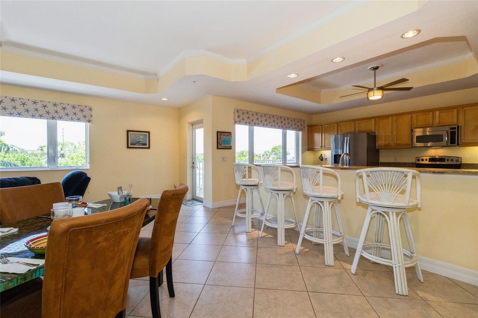 This spacious 2 bedroom, 2 bath condo is located in the heart of Manasota Key, Florida, on the beautiful shores of Lemon Bay. The condo features deeded private dock access, deeded reserved parking space, impact resistant windows and doors, Lemon Bay/Intercoastal Waterway access, Gulf views, easy beach access to Englewood Beach at Chadwick Park, stainless steel appliances, built in desk, wet bar, and in unit laundry room with washer & dryer. The condo is beautifully appointed with ceramic tile floors, granite countertops, and stainless steel appliances. The living room opens to the private balcony with stunning sunsets over the gulf. The master bedroom has its own private balcony access, as well as a separate access to the main balcony and a luxurious bathroom with glass and tile walk-in shower. The second bedroom is a great size for guests or for use as an office. The condo is located in a quiet, gated community with a variety of amenities, including a heated swimming pool & spa, picnic area with grills, a kayak launch, public and private boat docks. The community is also within walking distance to Englewood Beach at Chadwick Park, one of the most beautiful beaches in Florida. This condo is the perfect place to relax and enjoy the beauty and nature of Florida. Whether you're looking to spend your days swimming, fishing, or boating, or you just want to relax on the beach and soak up the sun, this condo has everything you need.