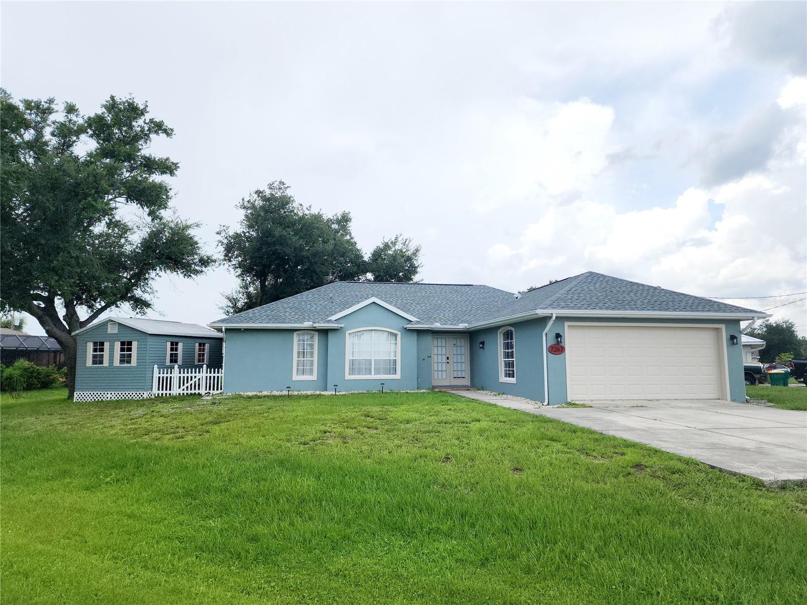 **PRICE REDUCED** DISCOVER YOUR NEW HOME in this charming hamlet of Englewood, perfectly located to enjoy all that the Sunshine State has available. With quick access to Gulf Beaches, you'll also have plenty to explore in Punta Gorda, Peace River, Charlotte Harbor or watch the glorious Southwest Florida Sunsets at your local favorite beach restaurant. This beautiful property is situated on an oversized corner lot. Exterior features include: covered screened Lanai, an outside storage shed that provides extra space for your own workshop and tools. Full 2-Car Garage with Attic Storage. Interior Features: Spanish tile flooring for easy maintenance throughout the home. High ceilings create an airy and spacious atmosphere. Your updated kitchen is in the center of the home, boasting stone countertops, newer cabinets, and newer appliances—ideal for cooking and entertaining. This open floor plan ensures a seamless flow between living spaces. Sliding glass doors provide abundant natural light. Ceiling fans are installed in every room for added comfort. With this split bedroom plan, you'll have privacy with the primary suite separated from other bedrooms. The primary bedroom features on an ensuite bathroom plus a walk-in closet, for ample closet space. The front formal dining room can be used as a dining room or an adaptable flex space; an additional dinette area overlooks the back covered patio. Newer exterior paint and BRAND NEW ROOF (January 2023). Close to Shopping, Golfing, Boating, Fishing, and Farmer’s Markets, this home offers everything you need to embrace the Florida lifestyle. DID WE MENTION THERE ARE ABSOLUTELY **NO** HOA's??? Do not miss out on this incredible opportunity!!