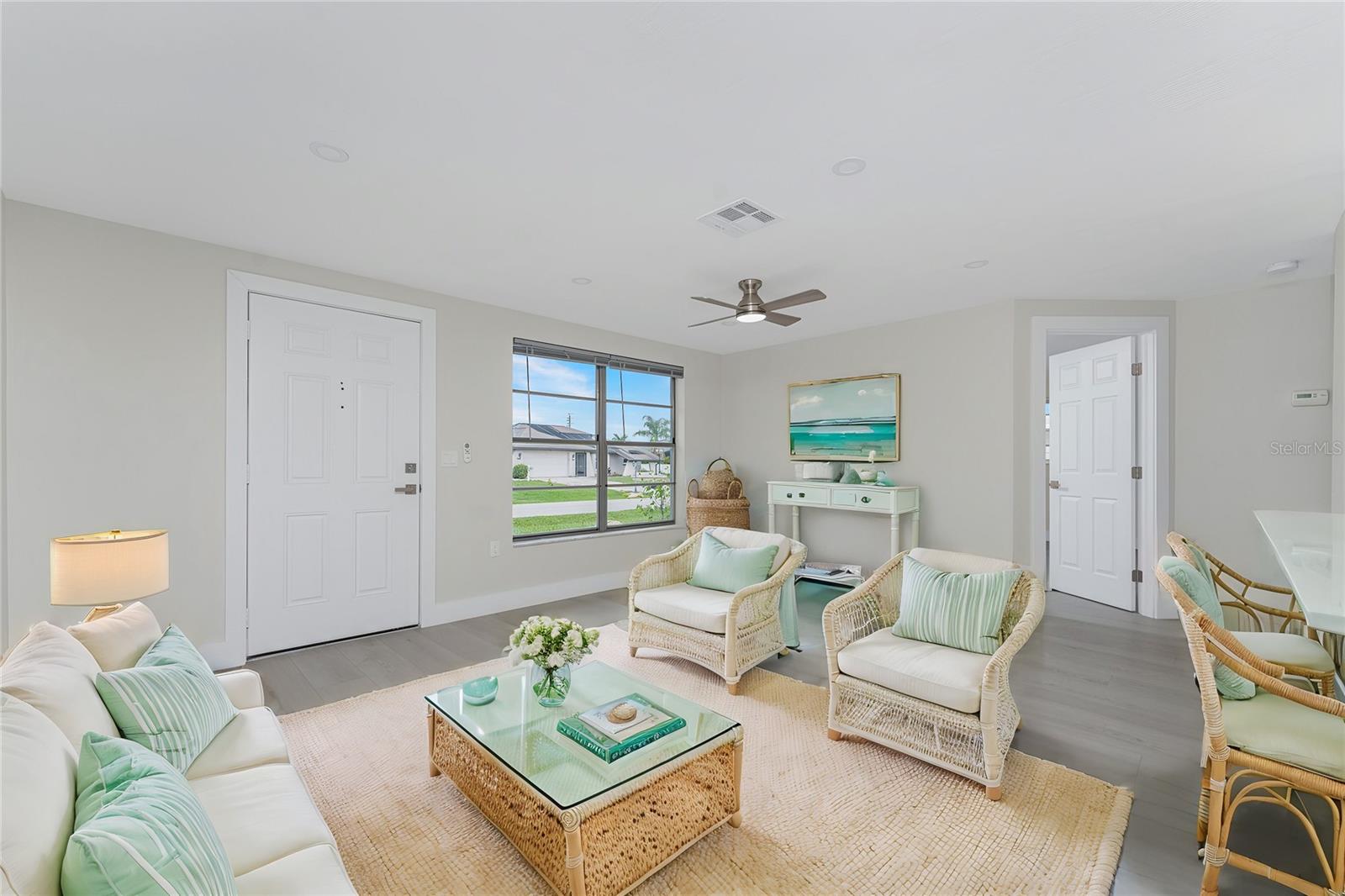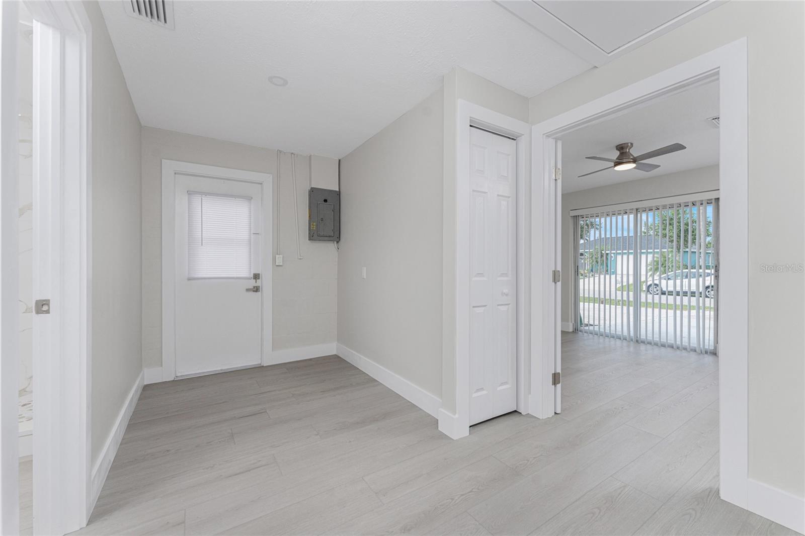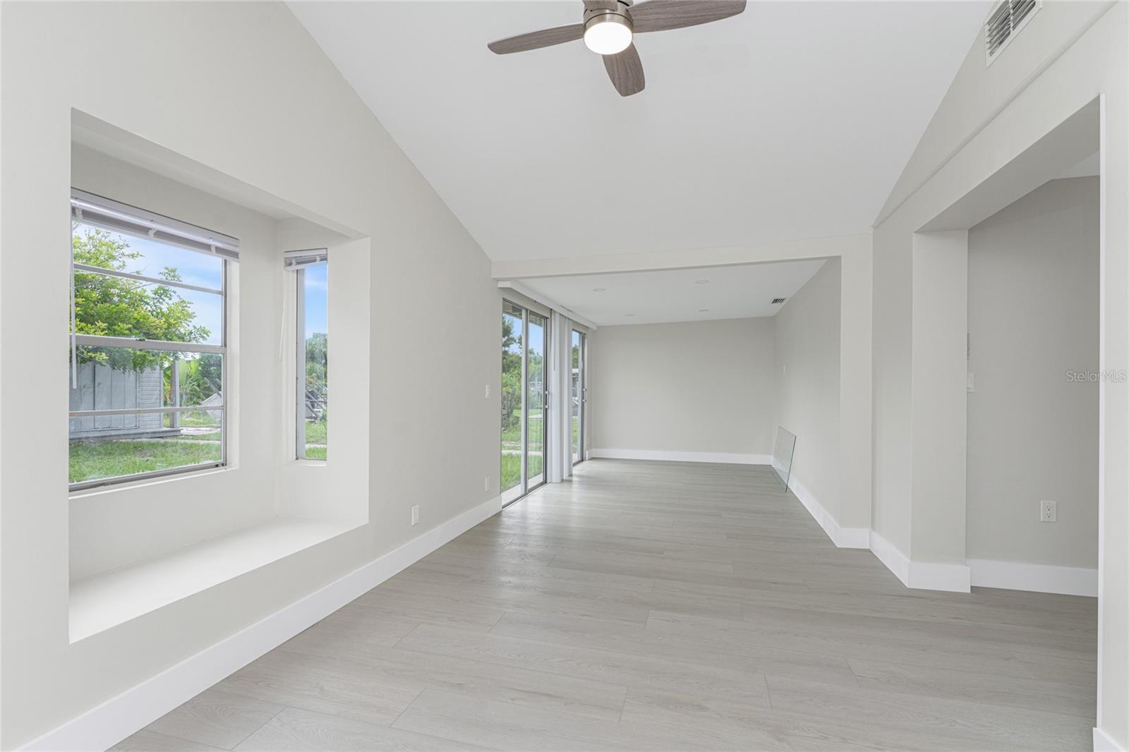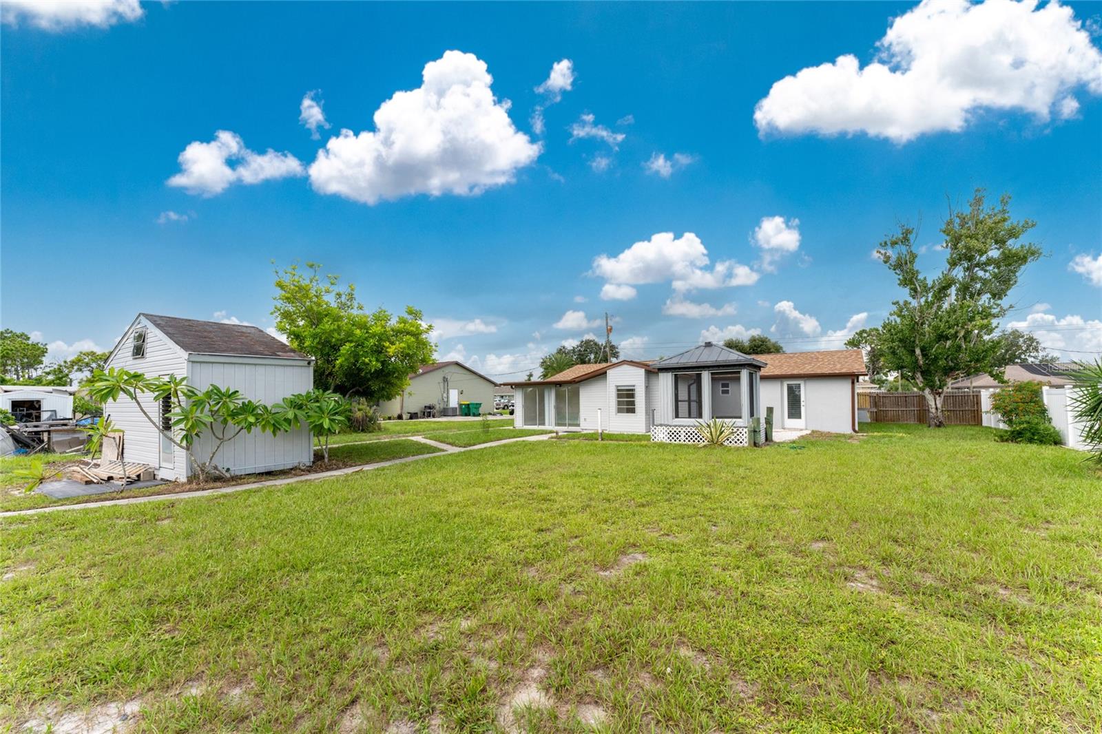 One or more photo(s) has been virtually staged. Beautifully remodeled 3bed/2bath home with split floor plan and dedicated owners suite that is NOT IN A FLOOD ZONE! This home has been completely renovated; new shaker kitchen cabinets, appliances and gorgeous quartz counter tops. Both bathrooms remodeled with new vanities, quartz countertops, porcelain tile and plenty of lighting. Inside laudry room with washer and dryer. Pull down stairs with attic storage. Entire home has freshly installed luxury vinyl flooring, paint, baseboards and recessed lighting. Large bonus room leads out to your expansive backyard where you can enjoy a gazebo and huge shed. Walk out to your new dock overlooking a freshwater canal where you can launch a kayak, fish or just relax and take in the peace and quiet. New exterior paint and vinyl siding complete the lushly landscaped yard. Plenty of parking for 4 vehicles. This home is turnkey ready. Come and experience the finest in florida living!