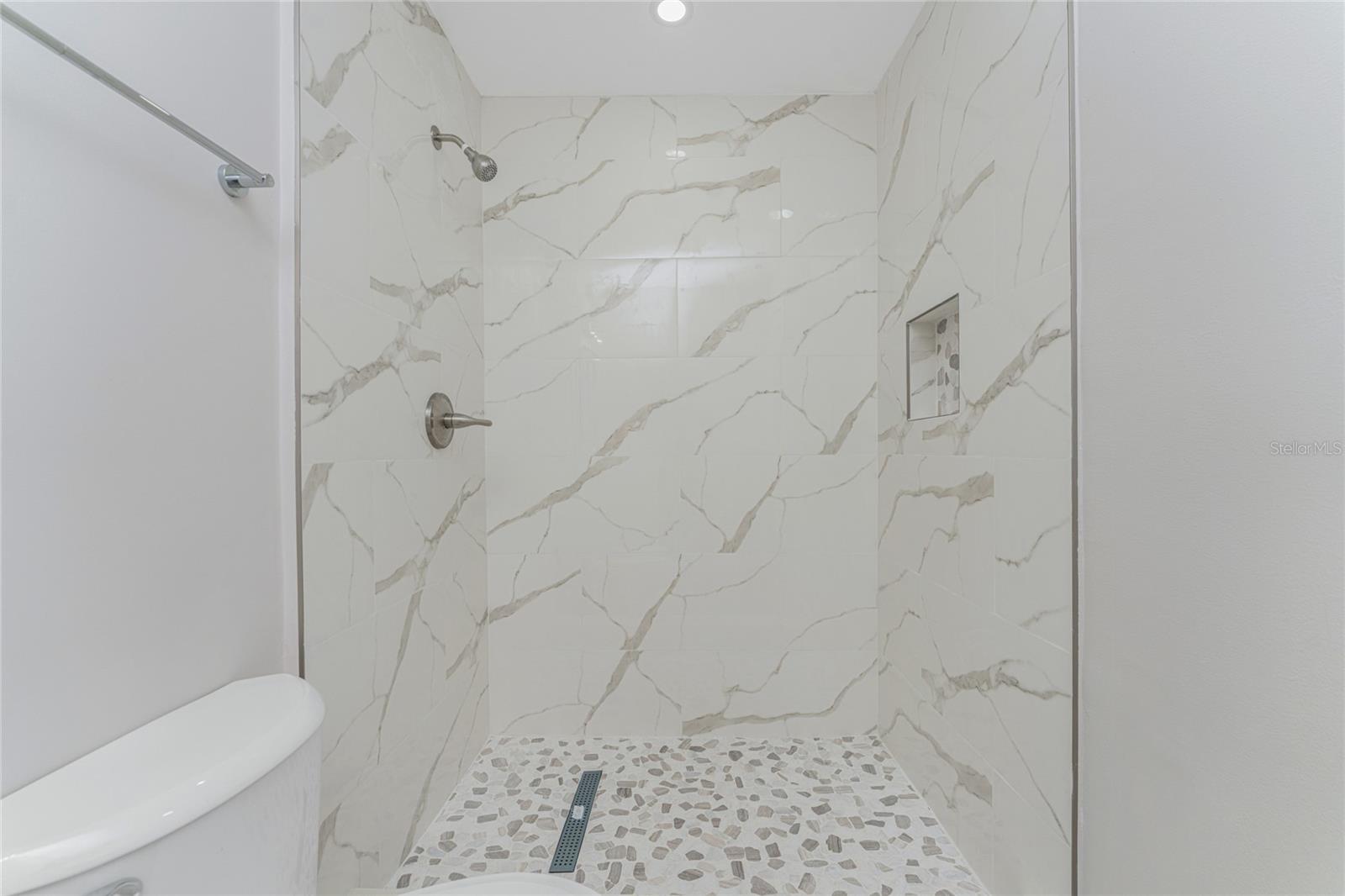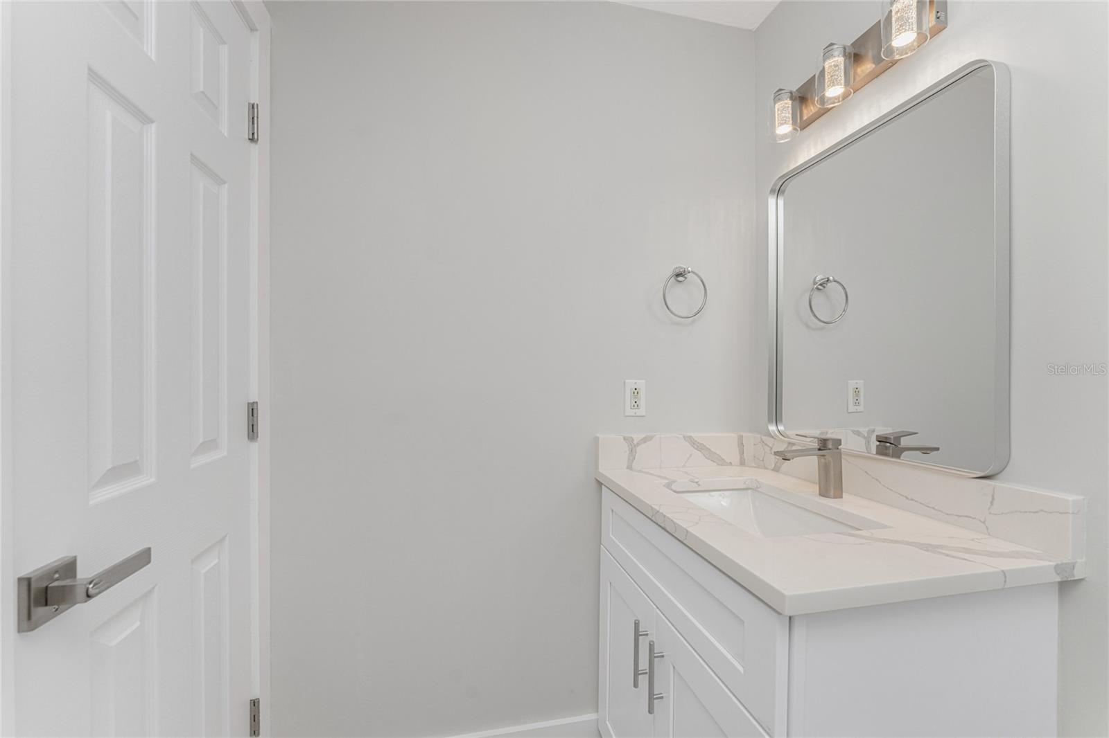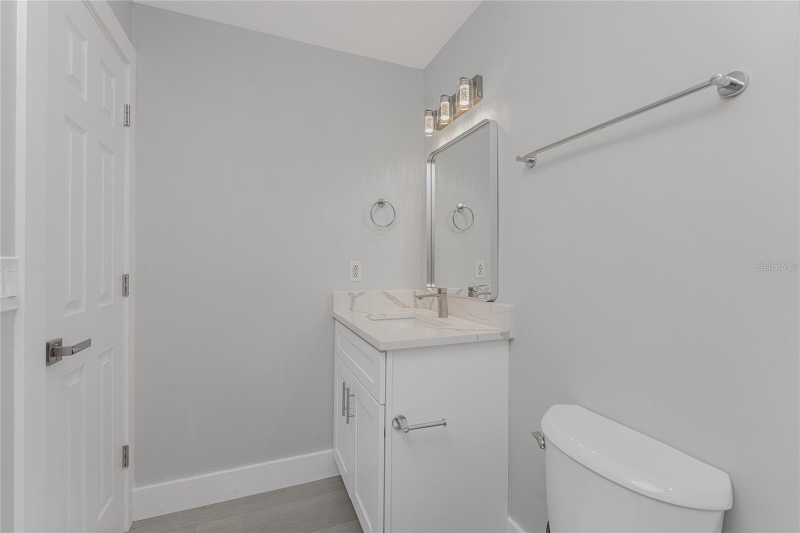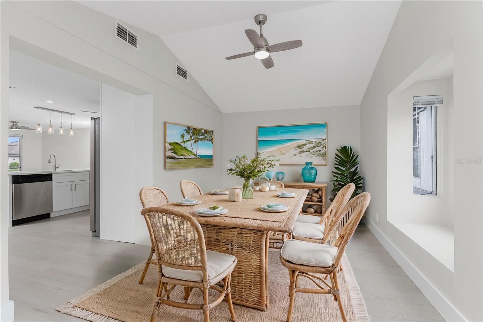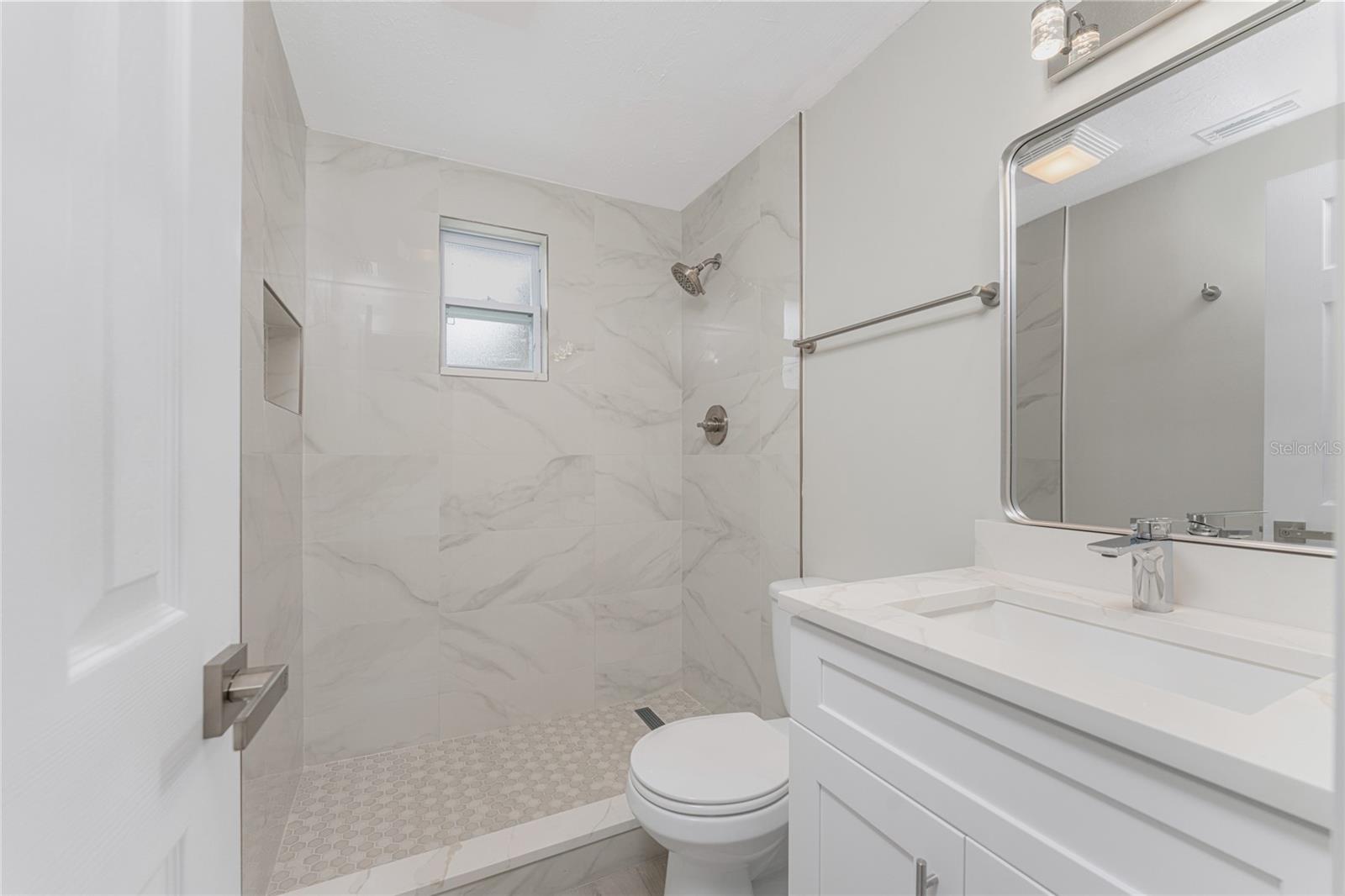 One or more photo(s) has been virtually staged. Beautifully remodeled 3bed/2bath home with split floor plan and dedicated owners suite that is NOT IN A FLOOD ZONE! This home has been completely renovated; new shaker kitchen cabinets, appliances and gorgeous quartz counter tops. Both bathrooms remodeled with new vanities, quartz countertops, porcelain tile and plenty of lighting. Inside laudry room with washer and dryer. Pull down stairs with attic storage. Entire home has freshly installed luxury vinyl flooring, paint, baseboards and recessed lighting. Large bonus room leads out to your expansive backyard where you can enjoy a gazebo and huge shed. Walk out to your new dock overlooking a freshwater canal where you can launch a kayak, fish or just relax and take in the peace and quiet. New exterior paint and vinyl siding complete the lushly landscaped yard. Plenty of parking for 4 vehicles. This home is turnkey ready. Come and experience the finest in florida living!