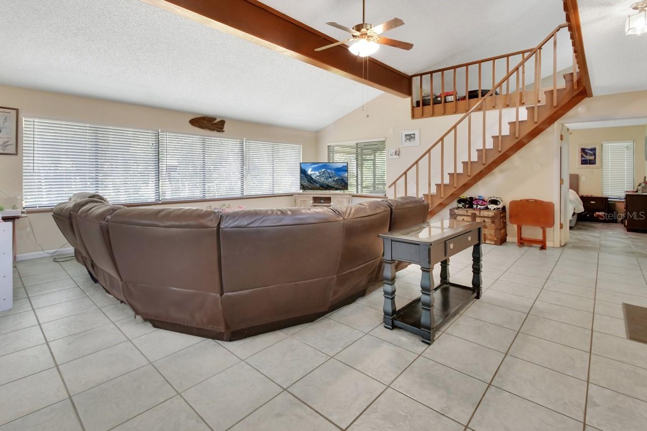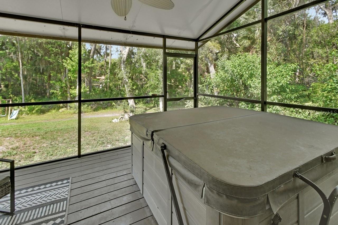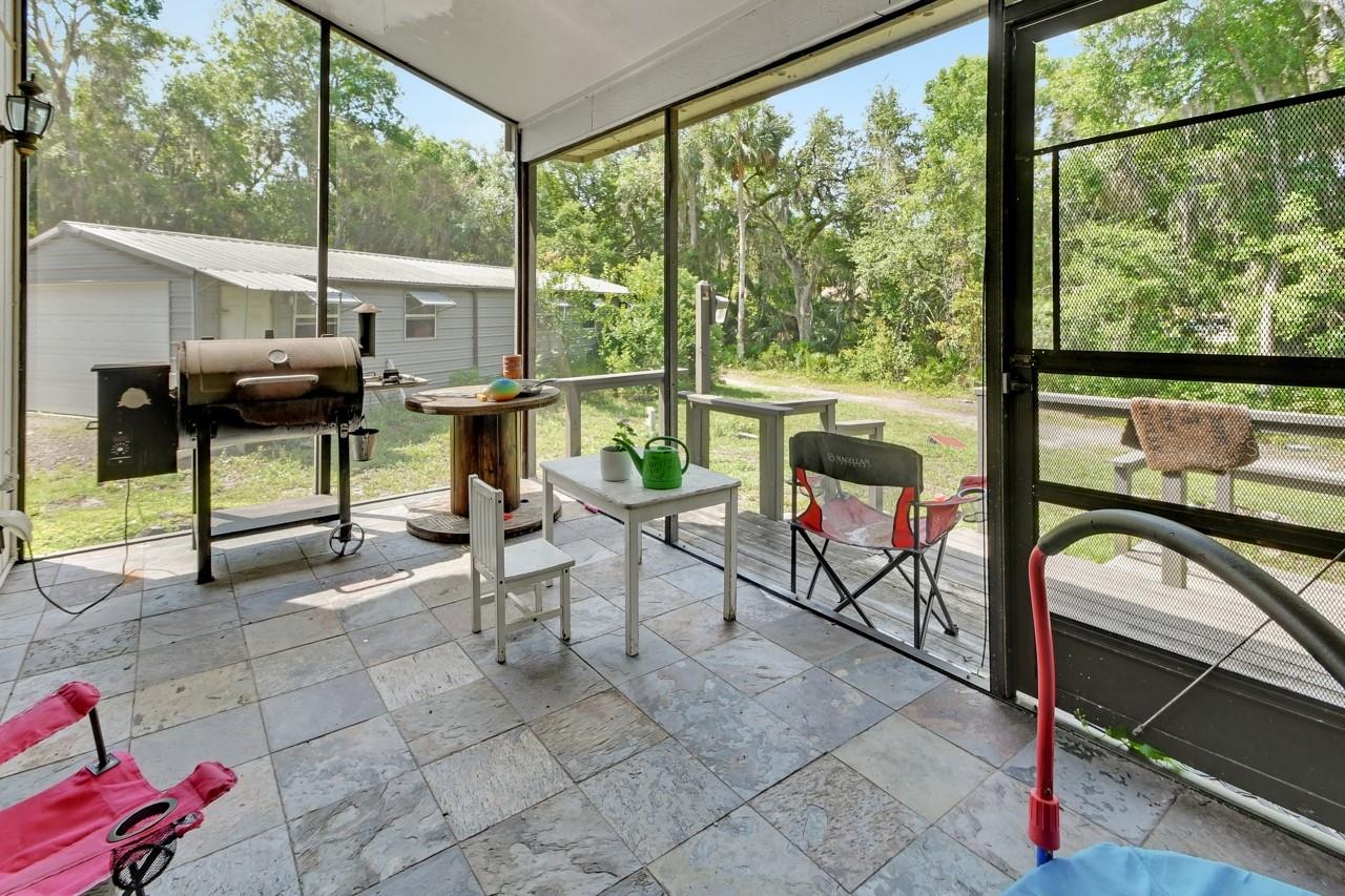 1.27 Acres with NO HOA! 20x 52 Garage. With a new ROOF in 2020, and HVAC System 2022 Did I mention it is nestled on 1.27 acres, this custom-built home offers the ultimate in serene country living while being just minutes from modern conveniences. Designed to bring the outdoors in, the home features soaring cathedral ceilings, wall-to-wall windows, and natural wood accents that create a bright, open, and peaceful ambiance. Step inside to an expansive great room flanked by bedrooms on either side, each with its own en-suite bath and walk-in closet. The updated galley-style kitchen is both functional and stylish, boasting natural wood countertops, a closet pantry, and beautiful wood finishes that echo the home’s rustic feel. A natural wood staircase leads to an open loft, can be used as a guest bedroom, office or workout space, offering a fantastic elevated view of the living space below. At the rear of the home, enjoy two screened areas: one is a cozy bonus room off the master suite featuring a heated hot tub — perfect for relaxing. The rest of the property is a no-mow tropical haven. Outdoor Features Include: A two-car carport A separate one-car carport with storage. Three storage shed areas. RV parking area. A massive 20' x 52' garage and workshop with electric, fans, and a dividing interior garage door — a true SERIOUS MAN CAVE Unbeatable Location! A private path from your backyard connects directly to the Spring-to-Spring Bike Trail, leading to Lake Monroe boat ramps, public parks, and playgrounds. Conveniently close to I-4, shopping, and top-rated schools. Don’t miss this one-of-a-kind sanctuary — prepare to be amazed!