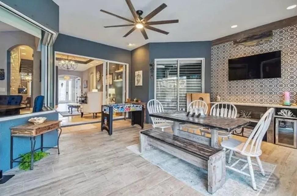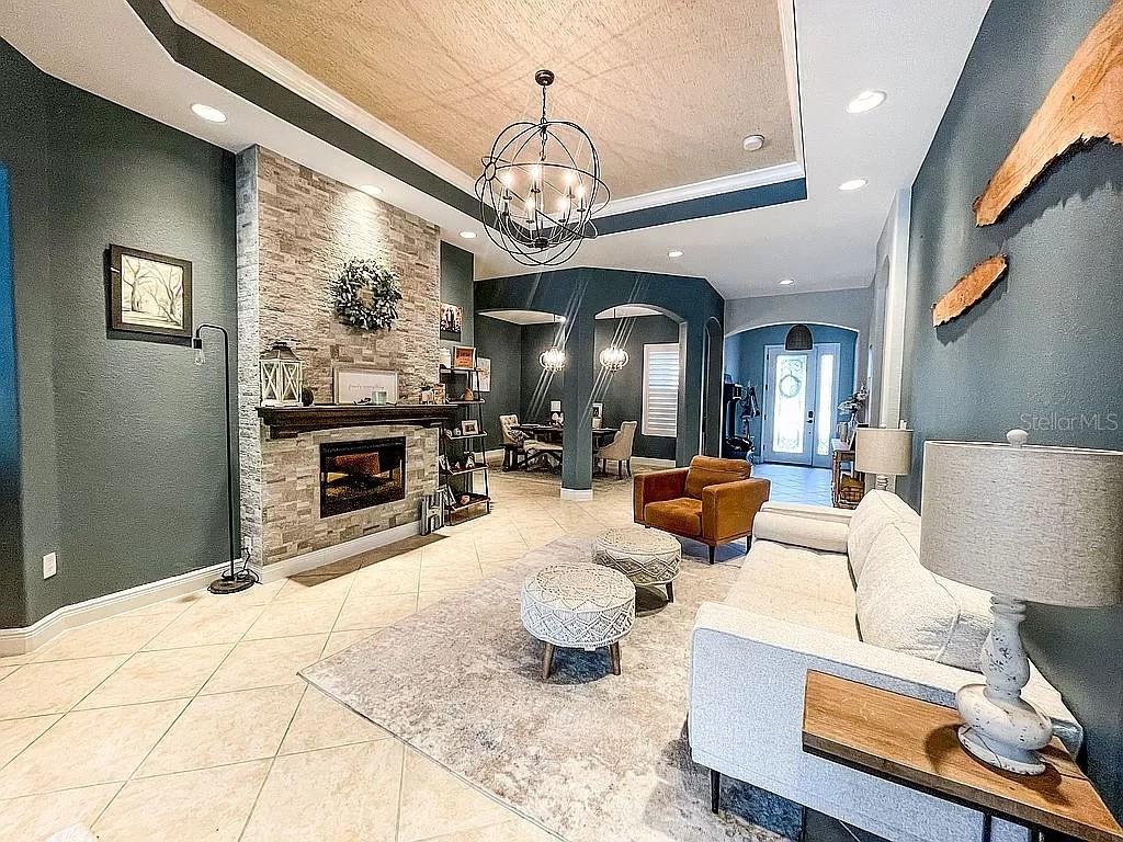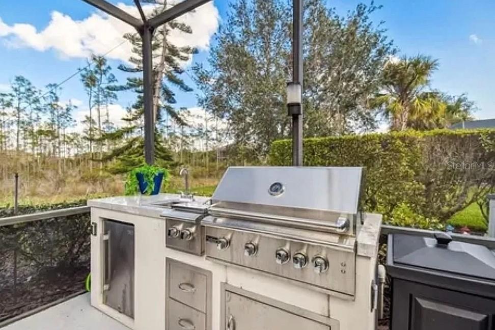 Luxury home available in highly sought-after community of Bella Terra which features a resort style heated pool and spa, Gym, Clubhouse, Gameroom, Baseball field, soccer field, Bosch Ball Court, Pickleball court, Beach Volleyball Court, Tennis Court, Basketball Court and Roller hockey rink. This meticulously well-maintained home offers an abundance of modern comfort and professional home decorated style on one of the largest lots in this establishment that backs up to nature preserve granting seclusion to homeowners. 5bd,3bth home boast high ceilings to create an airy and expansive atmosphere, complemented by natural sunlight. The kitchen is a chief's dream come true with custom cabinetry, granite counter tops, LG SS smart appliances, large center island, additional bar seating for 5, walk in pantry, superb lighting and a farmhouse sink. Den is equipped with working fireplace and double slide door for indoor/outdoor living. Large OVERSIZED primary bedroom offers, HUGE walk in closet and separate "winter closet", gracious primary bath features large soaking tub and walk in shower, full sitting area in primary bedroom gives way to sliding doors leading to outdoor living area of Lani oasis featuring sliding doors that open completely to beautiful, heated pool and spa. Outdoor kitchen with grill and sink and extra beverage cooler. AC unit less than 1yr, cleaned HVAC, Brand New pool pump and filter. This home has spared no expense with custom designs in every aspect of home. This is a must see.