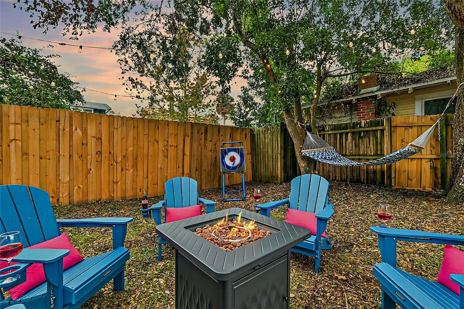 Nestled in a quiet neighborhood, just minutes from downtown Eustis, this beautifully renovated 2-bedroom, 2-bathroom home offers a perfect blend of historic charm and modern updates. Enjoy the peaceful surroundings while being a short drive to Tavares, Mount Dora, and Leesburg. This home features a screened-in front porch, high ceilings, and original details alongside modern finishes. The spacious kitchen is equipped with stainless steel appliances, ample counter space, and a dining area with abundant natural light. The cozy living room boasts a 55” HDTV, high-speed WiFi, and a dedicated workspace. The primary bedroom offers a king-sized memory foam bed, while the guest bedroom includes two full beds. The primary bath features a walk-in shower, and the guest bath includes a clawfoot soaking tub. The fully fenced backyard offers great outdoor space, featuring a fire pit, seating area, hammock, and a gas BBQ grill. The enclosed porch provides additional seating with a swing bench and string lights, making it an ideal space to relax. Shared driveway with left neighbor. Located just minutes from downtown Eustis, this home provides easy access to shopping, dining, and local attractions, while being a short drive to Disney World and other Central Florida destinations.