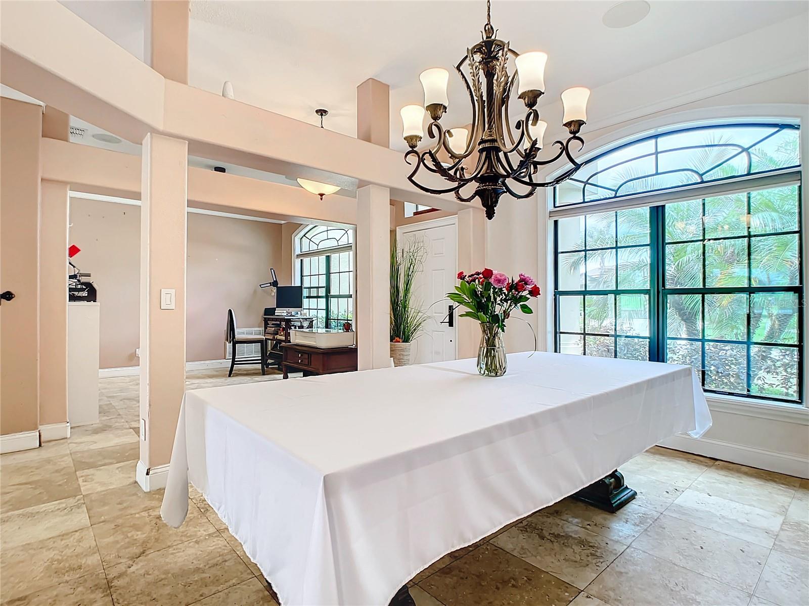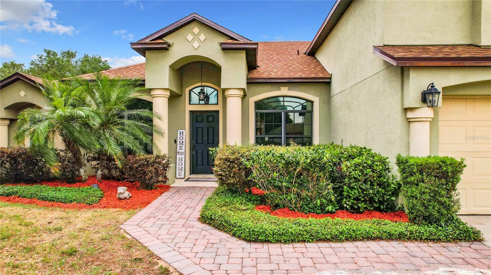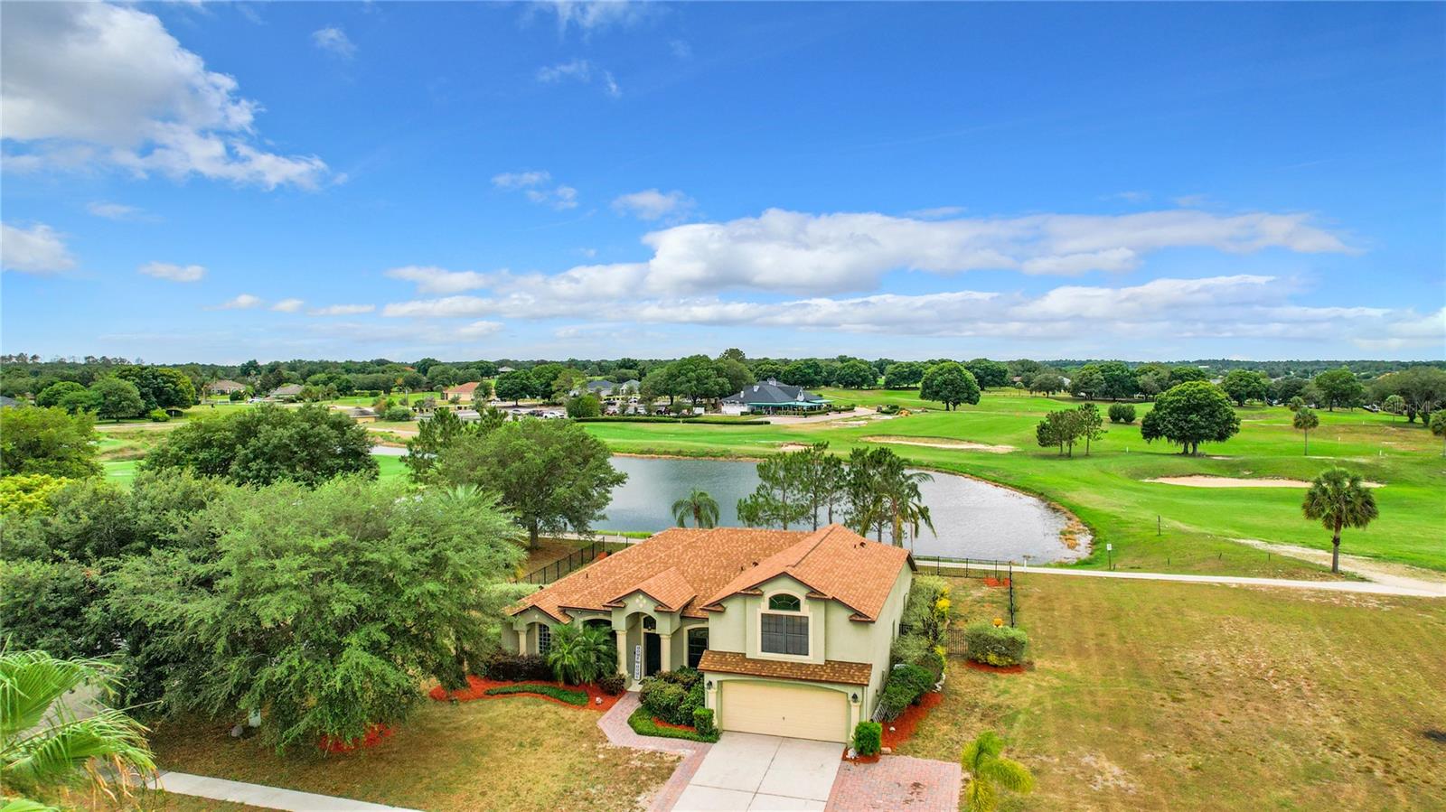 Welcome to this 5-bedroom, 3-bathroom home in the peaceful Black Bear Reserve community, just minutes from Orlando. As you step inside, you'll notice the vaulted ceilings, crown molding, and beautiful travertine and acacia wood floors. The spacious living area is wired for whole house surround sound. The kitchen is a chef's dream, with custom cabinets, a stainless steel farmhouse sink, granite countertops, and top-notch stainless steel appliances, including double smart wall ovens and a Viking glass top 6-burner cooktop with a pot filler. The downstairs master suite is a private retreat, featuring a door to the back patio, a walk-in closet with custom built-ins, a built-in ironing board, and a bathroom with travertine tiles and granite countertops. Upstairs, there's a second master suite offering privacy for guests or family members. Outside, the large back patio overlooks the lake and the 18th hole of the Black Bear golf club. It's the perfect spot to relax, watch the sunset, enjoy a fire in the steel fire pit or entertain guests. The fenced yard and extra-large driveway add extra convenience and security. The community offers plenty of amenities, including tennis courts, a playground, and a private lake where you can fish or unwind by the water. The nearby golf club has various activities, including golf, dining, and will soon feature Toptracer technology. With a new roof installed in April 2024, this home is ready for new owners. Don’t miss this chance—schedule your private showing today!