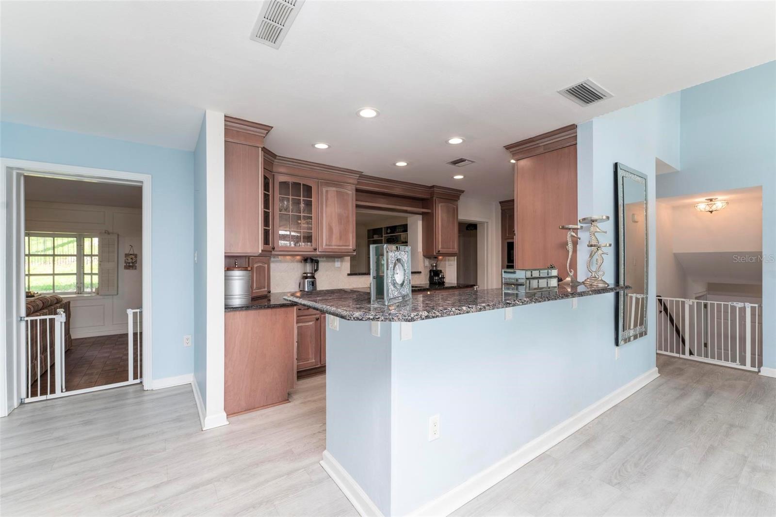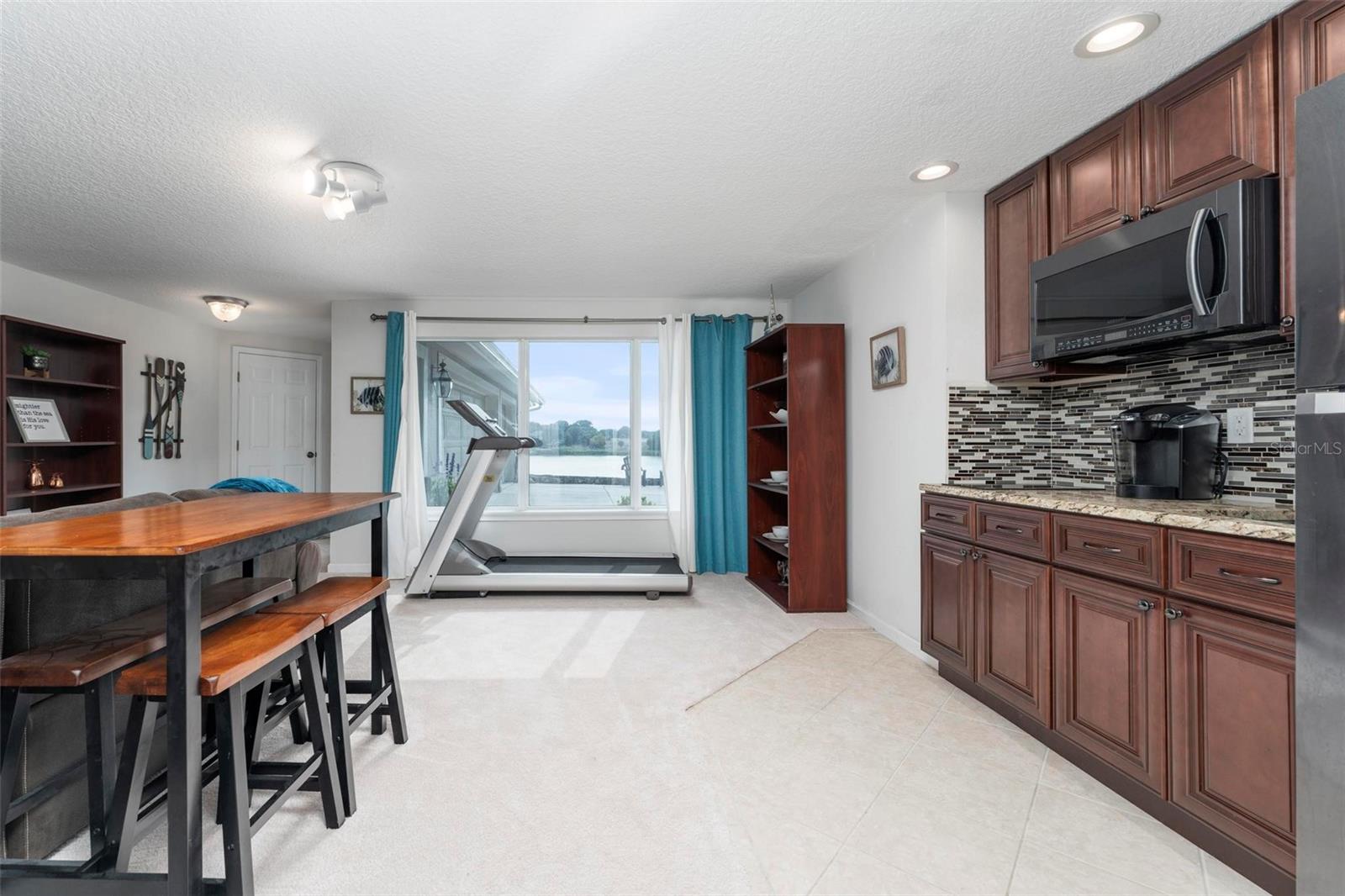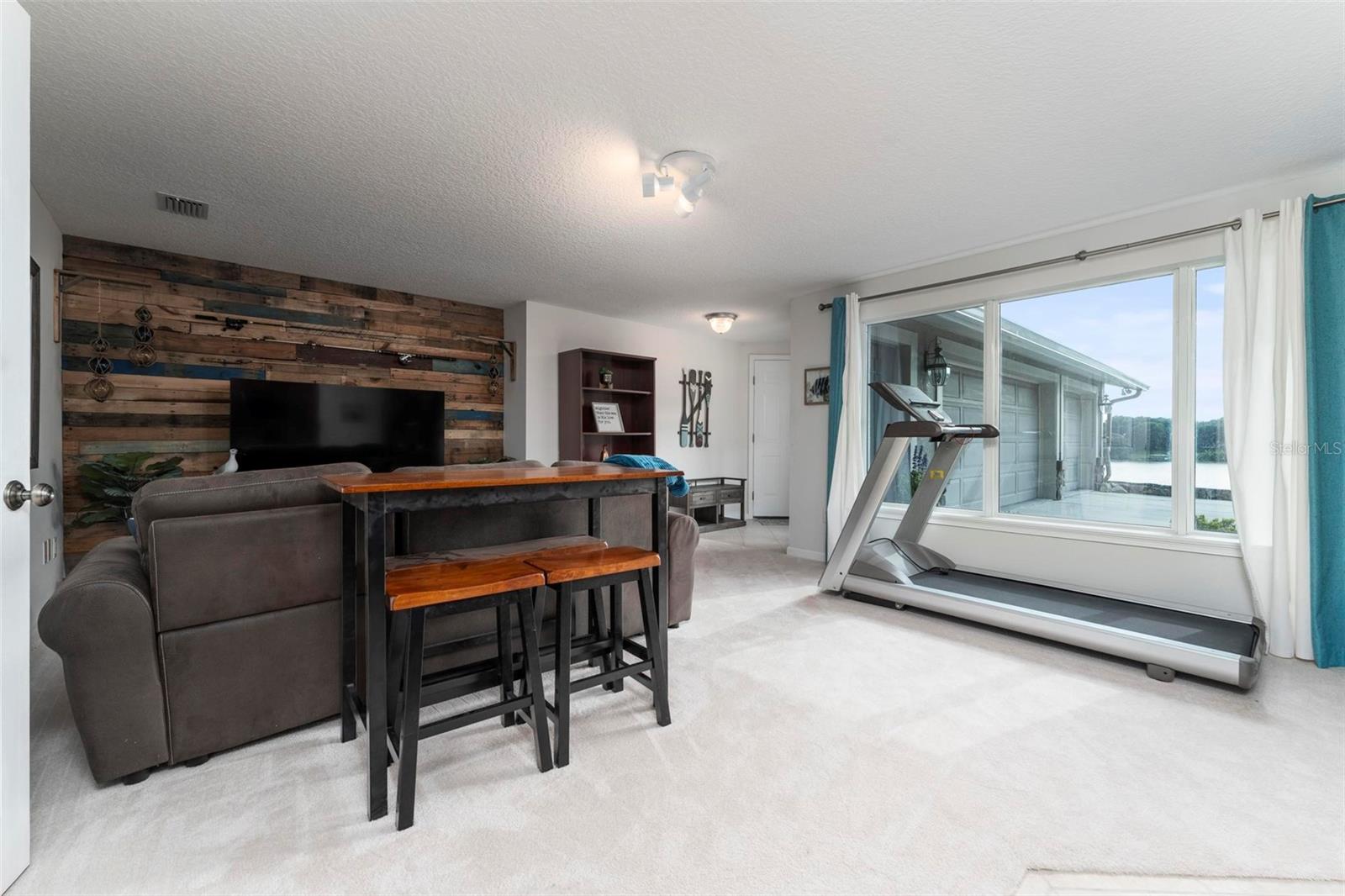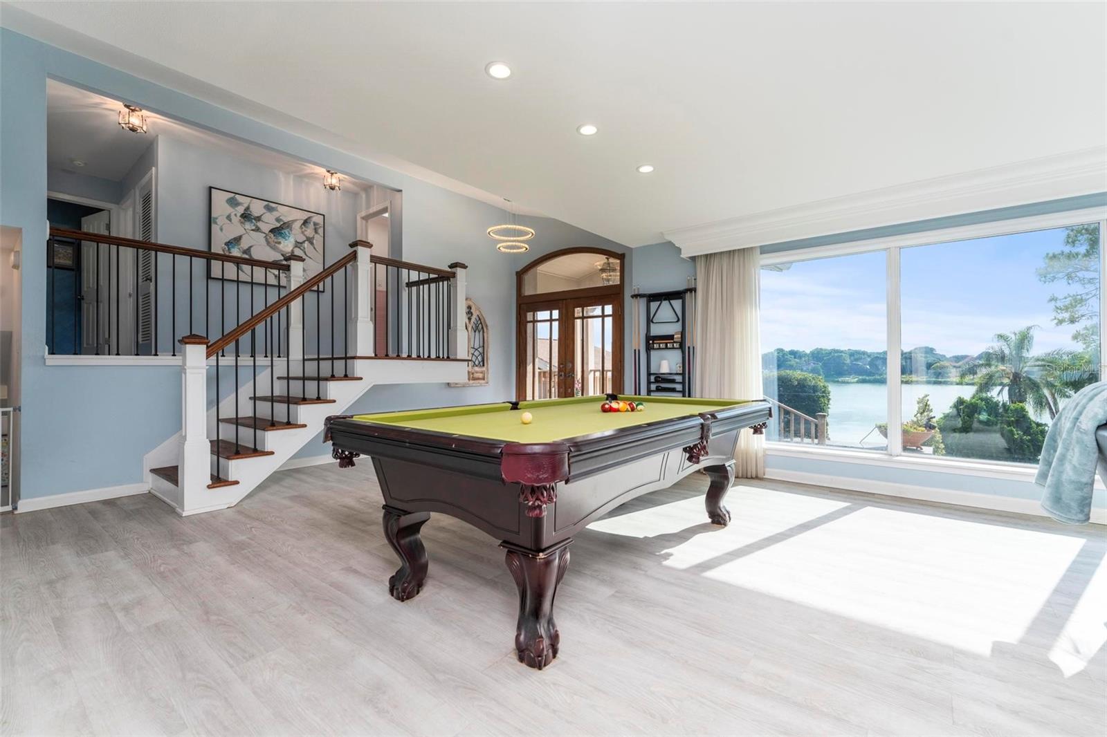 Indulge in the ultimate lakefront lifestyle with this exquisite home featuring private access to the spring-fed East Crooked Lake, known for its pristine waters and breathtaking sunsets. A newer, expansive dock built with the premium WearDeck product and equipped with boat and jet ski lifts invites you to fully enjoy all that East Crooked Lake has to offer. Step onto the patio with breathtaking lake views, perfect for gatherings and soaking in the natural beauty that surrounds you. Inside, the primary suite offers a large sitting room with stunning lake views, a custom walk-in closet with expansive built in storage, and a spacious bathroom with a jetted garden tub. Additionally, this home features 3 more bedrooms complete with on-suite bathrooms. The main floor welcomes you with an open layout, showcasing a spacious living room adorned with large windows to capture the lake views, and a well-equipped kitchen featuring wood cabinets, granite countertops, and modern appliances. Adjacent, a cozy breakfast room and den, warmed by a wood-burning fireplace, offer a serene retreat. Downstairs, level with the garage and offering a private entrance, discover a generous den, convenient kitchen, and a private bedroom with its own en-suite bathroom, perfectly suited for guests or multi-generational living. Additional highlights include a spacious laundry room and ample storage throughout. The roomy 3-car garage includes a "hidden" 13 x 8 air-conditioned storage room, perfect for storing belongings in a climate-controlled environment. Situated in a sought after neighborhood, you'll be just minutes away from downtown Eustis and Mount Dora, providing numerous shopping, dining, and entertainment choices. This home not only promises luxurious living but also offers practicality and comfort in every detail, making it a perfect retreat for enjoying lakefront living at its best.