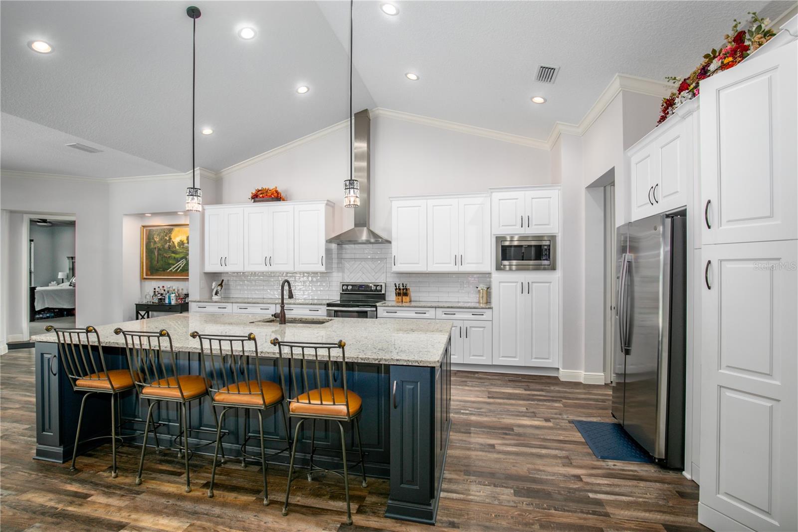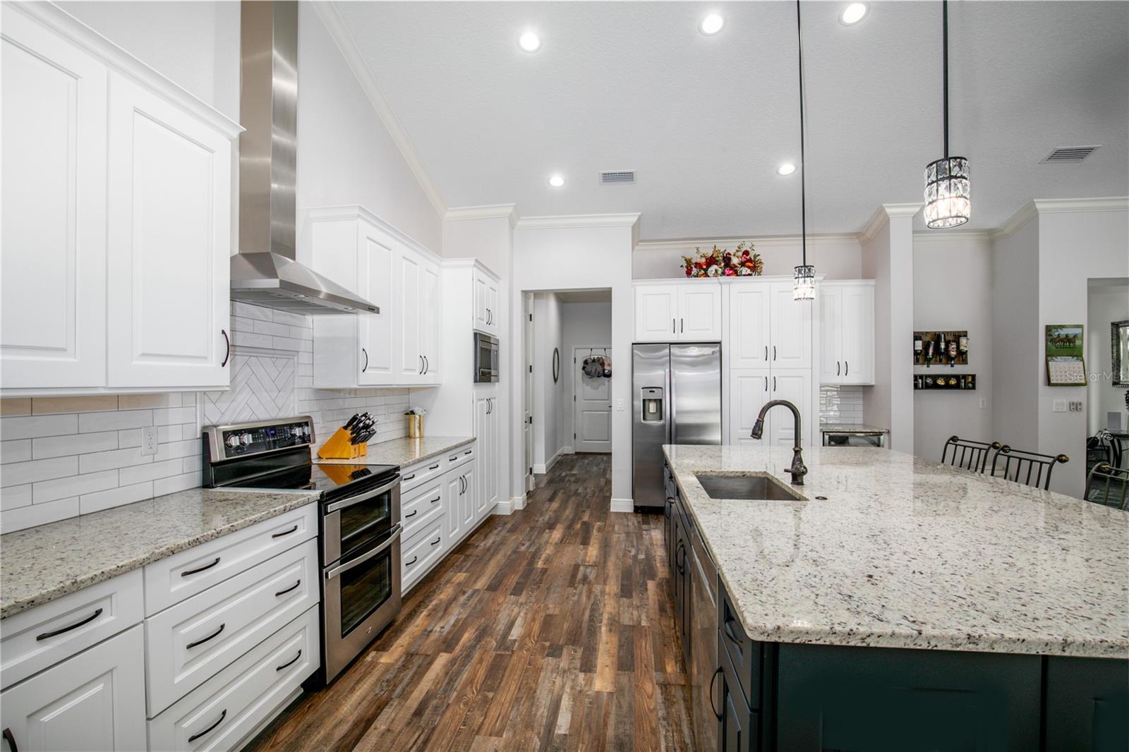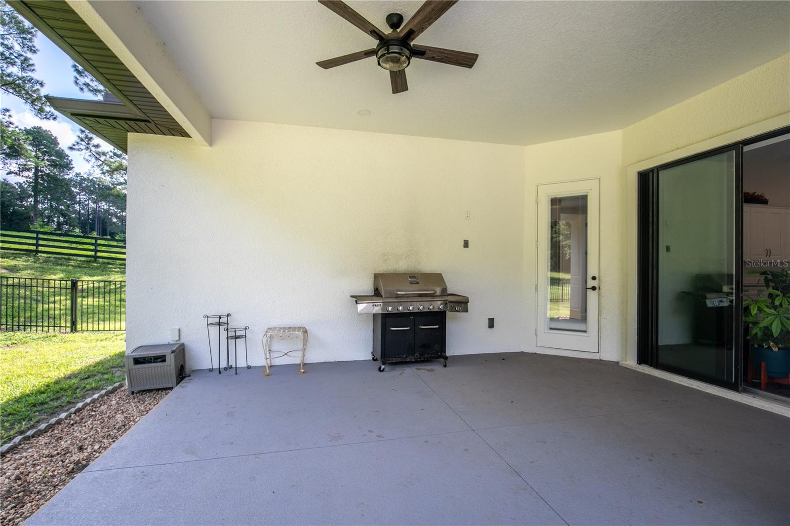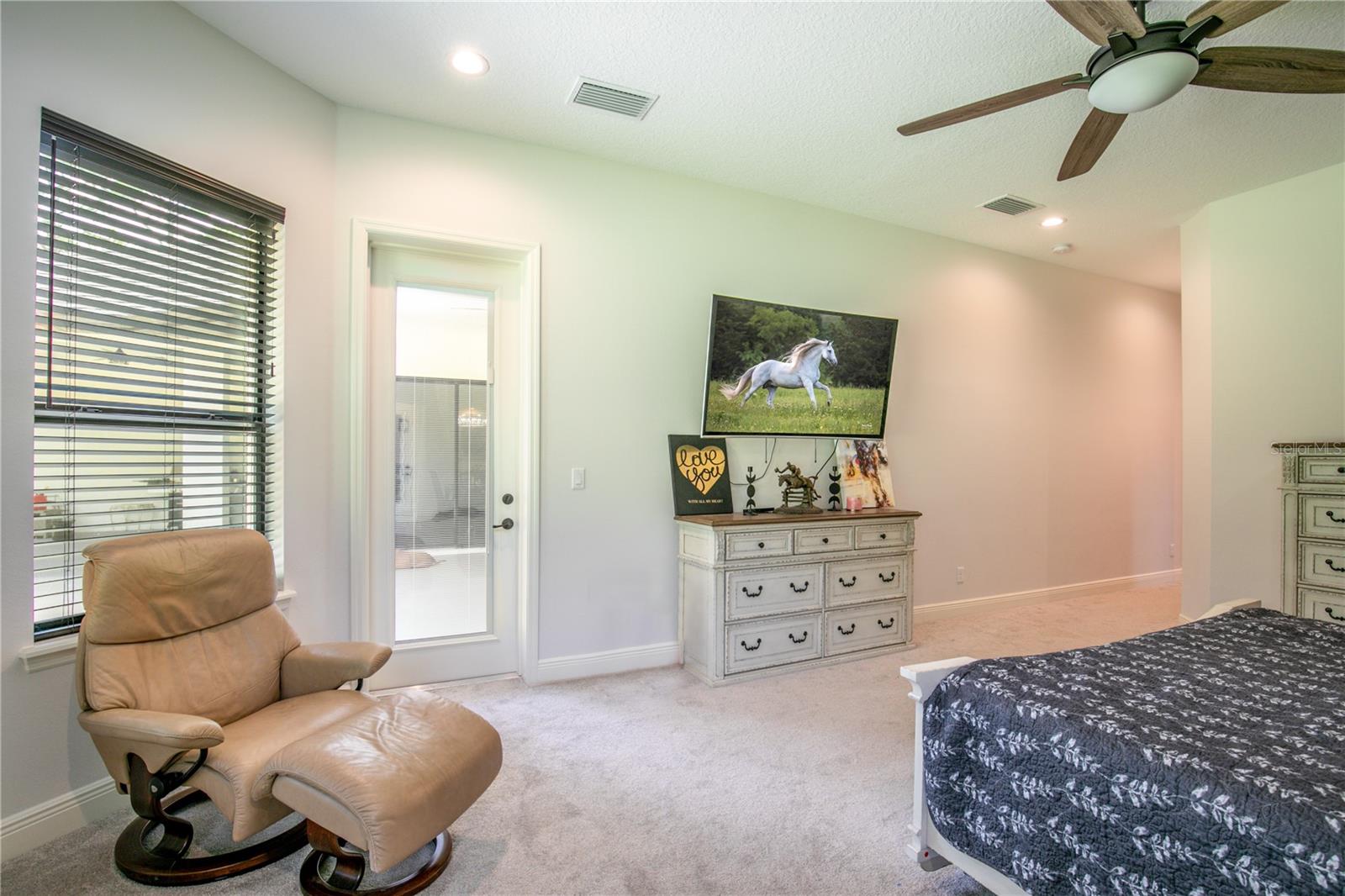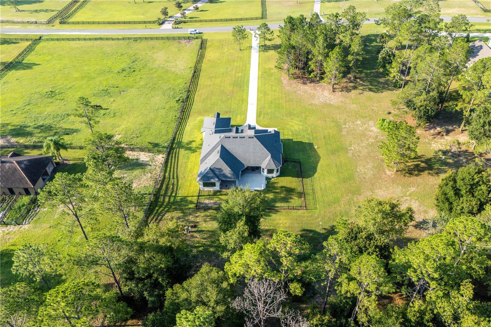 Discover your dream home in the sought after equestrian community of Lakewood Ranches. This exceptional 4-bedroom, 3.5-bath residence is set on 3.25 acres of tranquil land. Designed for both elegance and comfort, this property is brimming with high-end features and thoughtful upgrades, including striking copper roof accents. The gourmet kitchen is a chef's delight, featuring all granite countertops, soft-close high-end cabinets, an XL island, and top-of-the-line appliances, including a wine cooler and double oven range with a sleek range hood. A large butler's pantry adds to the kitchen's functionality and sophistication. The open floor plan seamlessly blends the living and dining areas, enhanced by vaulted ceilings, crown molding, and three large sliding doors that create a fluid transition between indoor and outdoor living spaces. The extra-large primary suite serves as a private retreat, with bay windows offering serene views. The expansive primary closet and bathroom include two additional storage closets, a large walk-in shower, his-and-hers sinks with a vanity area, and elegant tiled showers. The home also features a library, walk-in closets, recessed can lighting, custom accent walls, and a laundry room equipped with a sink and a drain under the washer and dryer. Upgraded finishes such as vinyl plank waterproof flooring, custom blinds, low-E windows, blown-in insulation, and a large AC unit ensure comfort and efficiency throughout. Outdoors, the oversized 2 car garage is complemented by an additional side garage, ideal for a mower or golf cart. The large patio, perfect for entertaining, is complete with outdoor fans and overlooks the expansive, gated yard, making it a paradise for pets. The XL well efficiently services the home and is equipped to support future additions, such as a guest house or barn, ensuring all your needs are met. The back porch offers breathtaking views of the property, creating a perfect setting for relaxation and enjoyment. Situated in the heart of East Lake County, this estate provides the perfect blend of country tranquility and urban convenience. With easy access to top-rated schools, shopping, dining, and recreational opportunities, you'll enjoy the best of both worlds. East Lake County's scenic landscapes, equestrian trails, and outdoor activities make it an ideal location for nature lovers and horse enthusiasts. The community's proximity to major highways allows for a smooth commute to Orlando and surrounding areas, offering a peaceful retreat without sacrificing convenience. This extraordinary estate is more than just a home; it's a lifestyle, offering unparalleled luxury in this desirable community. Experience the perfect blend of sophistication, comfort, and equestrian elegance at Lakewood Ranches