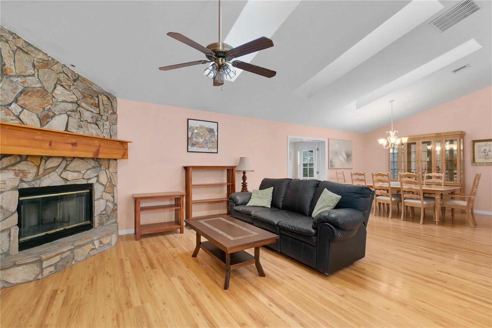 UPDATED PRICE! DON'T MISS OUT! Welcome to this beautiful single-family home, perfectly designed for comfortable living and entertaining. This home is close to Mount Dora and is convenient to Orlando and the attractions. With 3 spacious bedrooms, 2 bathrooms, and a dedicated office space, this home offers both functionality and style. Located in a serene neighborhood, this property is ideal for families seeking a move-in-ready home with thoughtful details throughout. As you step inside, you’ll be greeted by a large, light-filled living room featuring vaulted ceilings and skylights that flood the space with natural light, creating a bright and airy atmosphere and is anchored by a charming fireplace. The home also has a large family room making it the perfect place to relax and unwind with family and friends. The well-appointed kitchen flows seamlessly into the dining and living areas, making it ideal for hosting guests or enjoying family meals. The home also offers dedicated office space, providing the perfect spot for working from home or managing household tasks. The private owner’s suite is a peaceful retreat, complete with ample closet space and an open and light filled bathroom. The additional bedrooms are generously sized, offering comfort and flexibility for all your family’s needs. Outdoors, you’ll appreciate the new exterior paint and the low-maintenance yard that’s perfect for enjoying sunny days. Plus, the roof is only 3 years old, providing peace of mind for years to come. With features and updates, including the fireplace, vaulted ceilings, skylights, 3-year-old roof and fresh exterior paint, this home is truly turn-key and ready for its next owner. Don't miss out on this rare opportunity to own a beautifully maintained home in a great location.