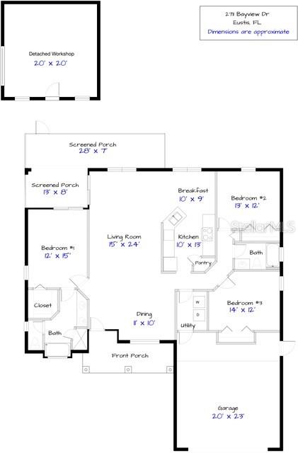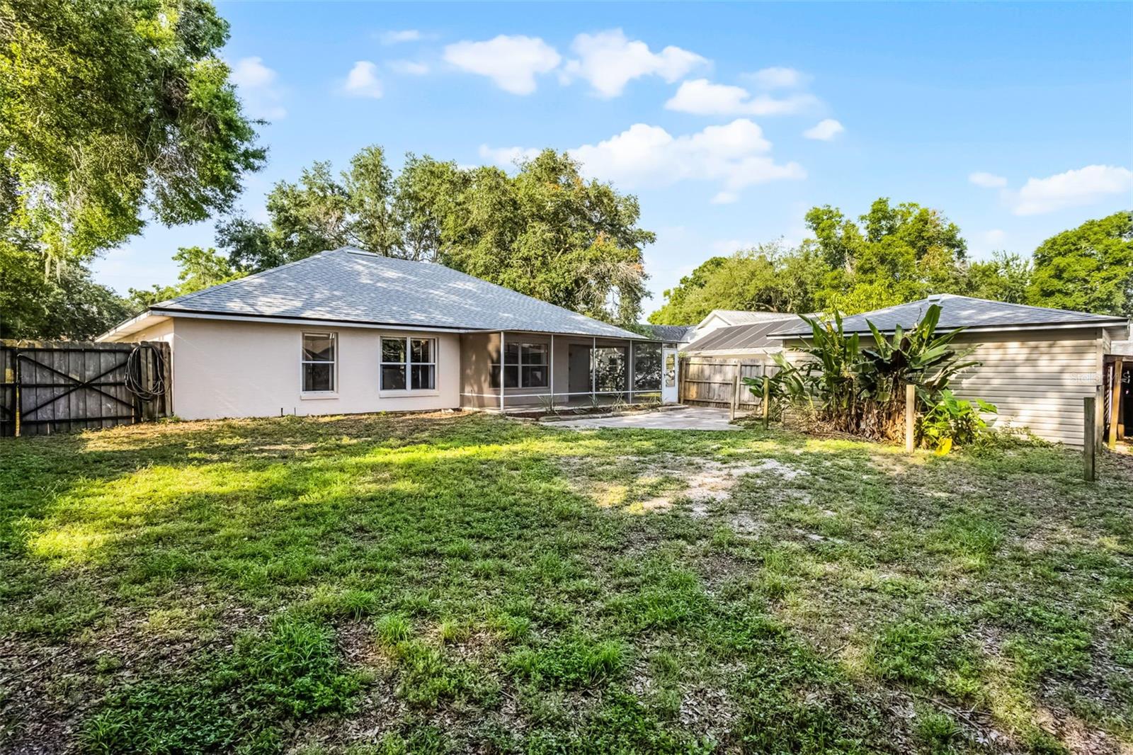 Welcome to Lake Yale Landing with its low HOA fees -- just $180 each year -- and it includes WATER FOR IRRIGATION. Lake Yale Landing is located near Marsh Park with its public boat ramp for easy access to the Harris Chain of Lakes. This charming 3 bedroom, 2 bath home is move-in ready with its spacious open floor plan that includes a formal dining area, a a spacious kitchen with a breakfast bar, and a split-bedroom layout for added privacy. The primary bedroom features an en suite bath, while the expansive "L"-shaped screened porch offers a perfect space for relaxing or entertaining, overlooking the fully fenced backyard. In addition to the attached 2-car garage, the property boasts a 20x20 WORKSHOP WITH A GOLF CART GARAGE DOOR and wall-mounted A/C—ideal for a home office, woodworking space, or bonus entertainment room. Residents are permitted to park their boats beside their homes, adding to the convenience and lifestyle appeal of this wonderful community. Close to shopping and all areas of the Golden Triangle of Eustis, Mount Dora and Tavares with their many festivals. local restaurants and shoppes. Call today to schedule your private showing.