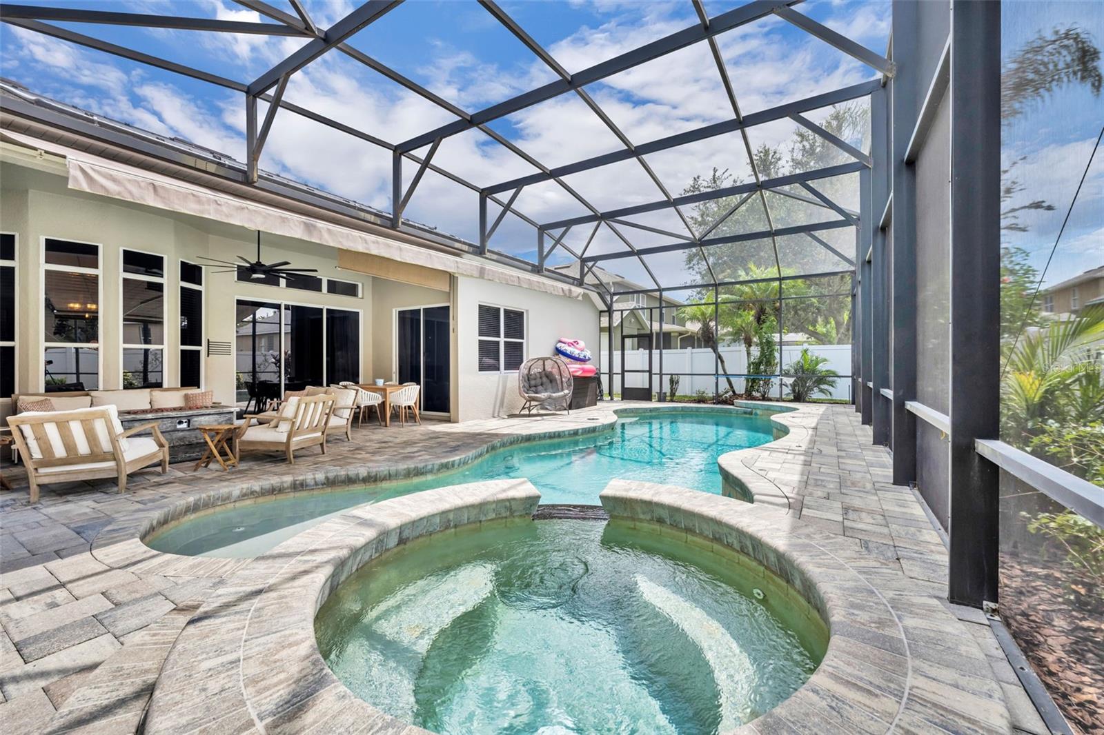 Gunite, In Ground, Lighting, Outside Bath Access, Screen Enclosure, Self Cleaning, Solar Heat, Tile