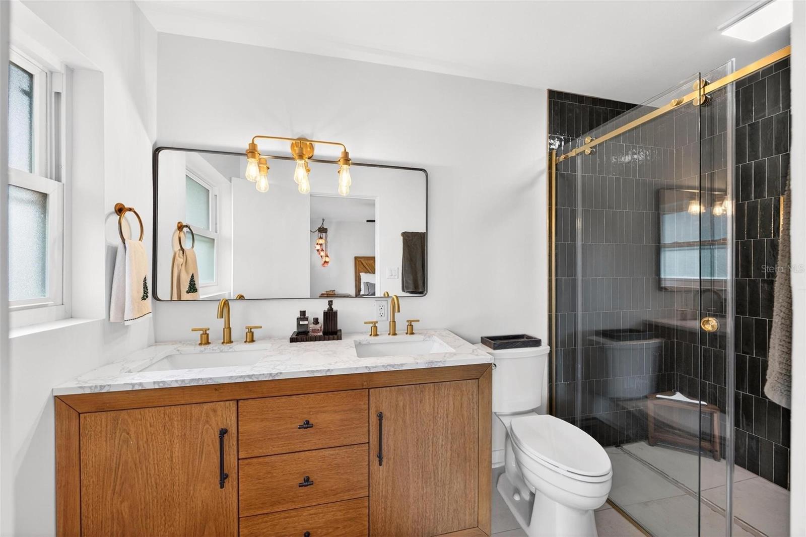 Enjoy stunning East Crooked Lake sunsets from your front porch in this charming historic home! Featuring original wood floors, this home offers a bright open floor plan perfect for daily life and hosting gatherings. The spacious kitchen boasts quartz countertops, stainless steel appliances, and an island that opens up to your living space. Each bedroom includes its own en suite bath and the bonus room is a perfect space for extra living square footage, an office, or a 3rd bedroom. Whether you are soaking up the views from your front porch or enjoying your fully fenced in backyard, this home is a wonderful retreat! Recent upgrades include 2025 septic tank and drain field (sellers completely re-sodded the front yard), 2025 a/c, updated primary bathroom, new light fixtures, 2023 hot water heater. Located minutes from both downtown Eustis and Historic Mount Dora, you are also close to and major roadways including the 429/414 connector for easy access to Orlando and Florida's beaches. A must-see home in a fantastic Central Florida location!