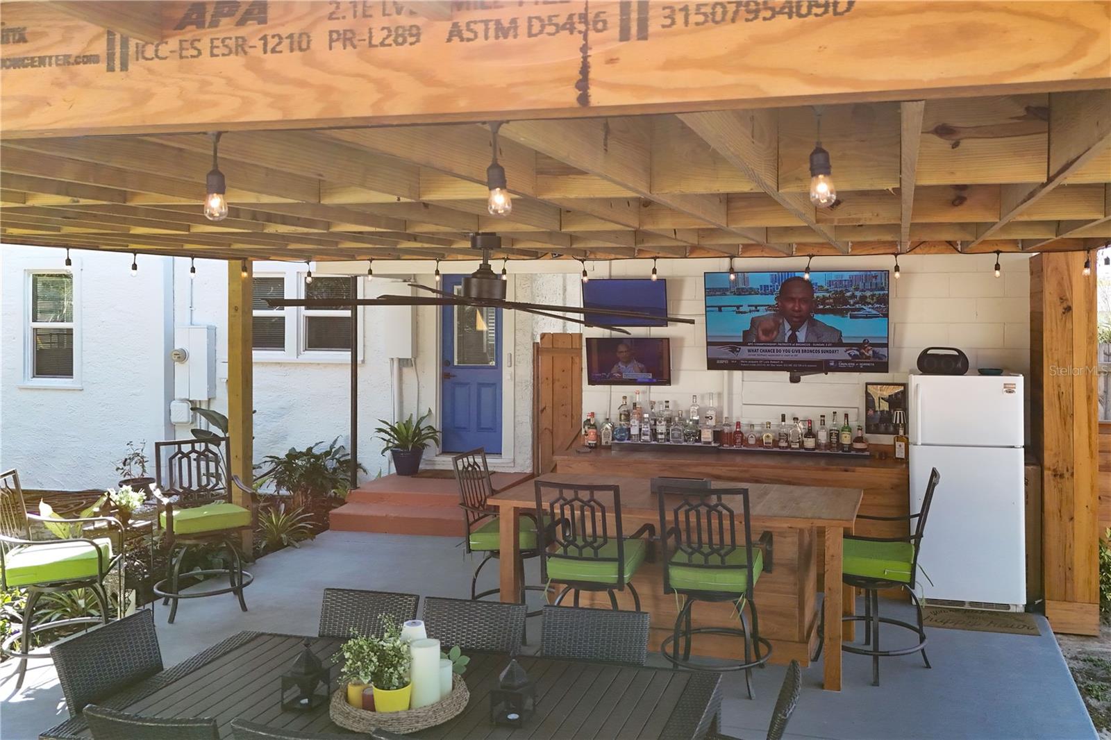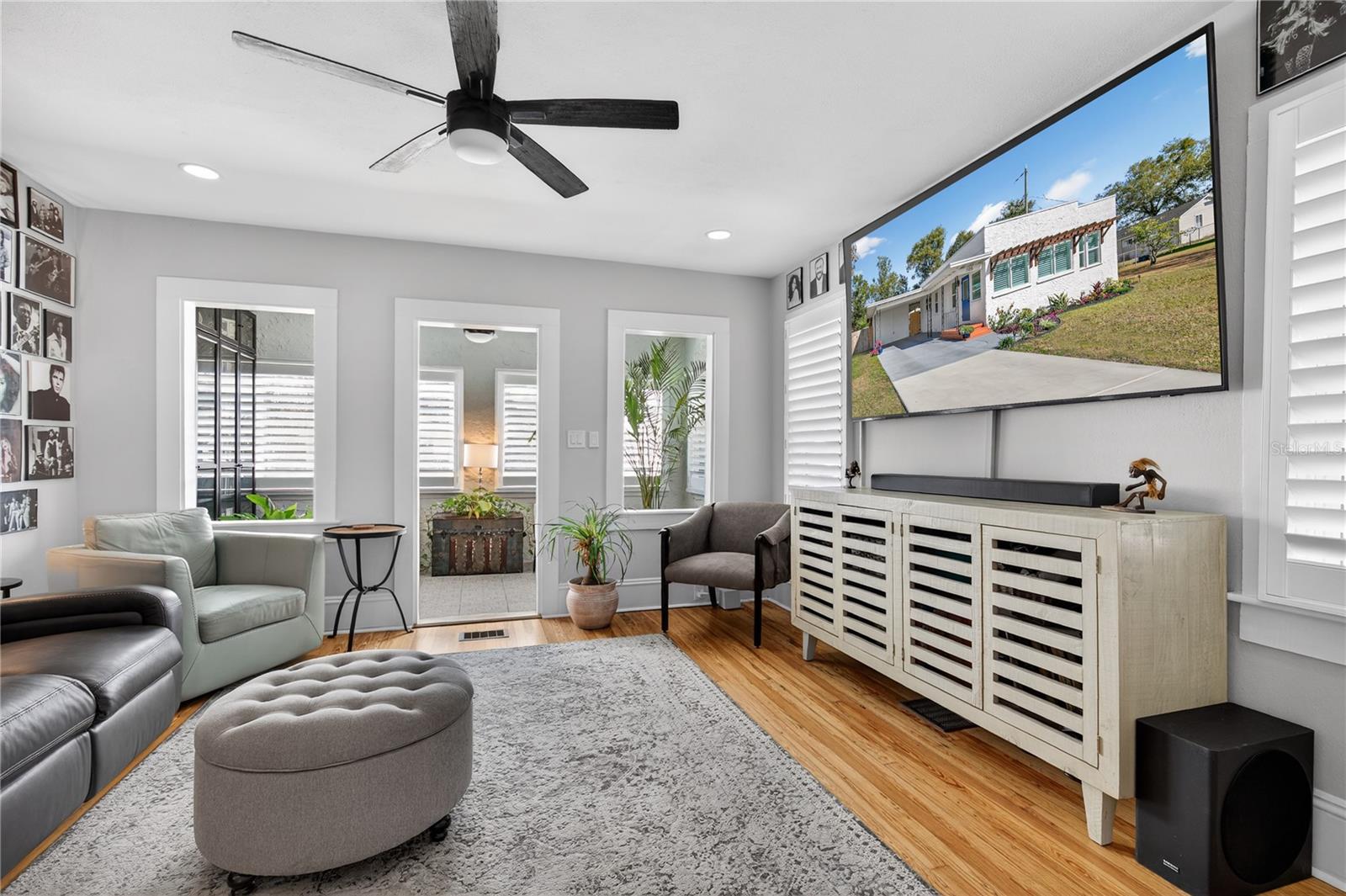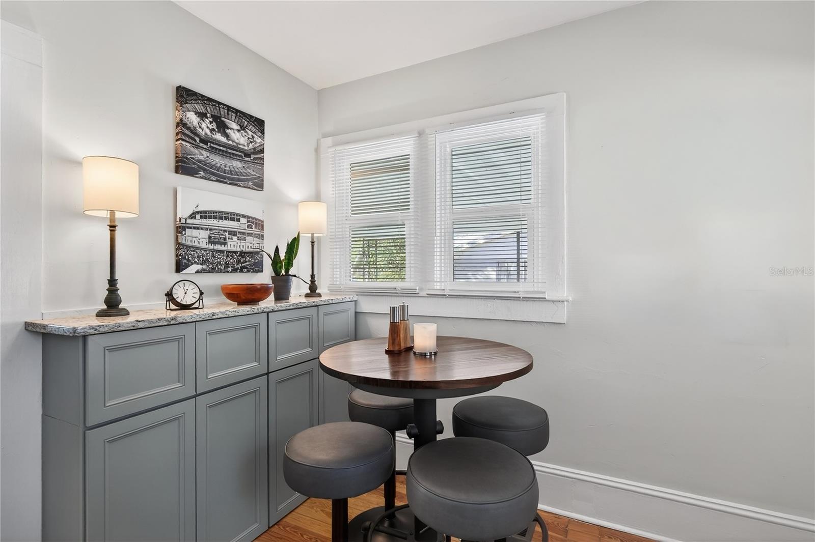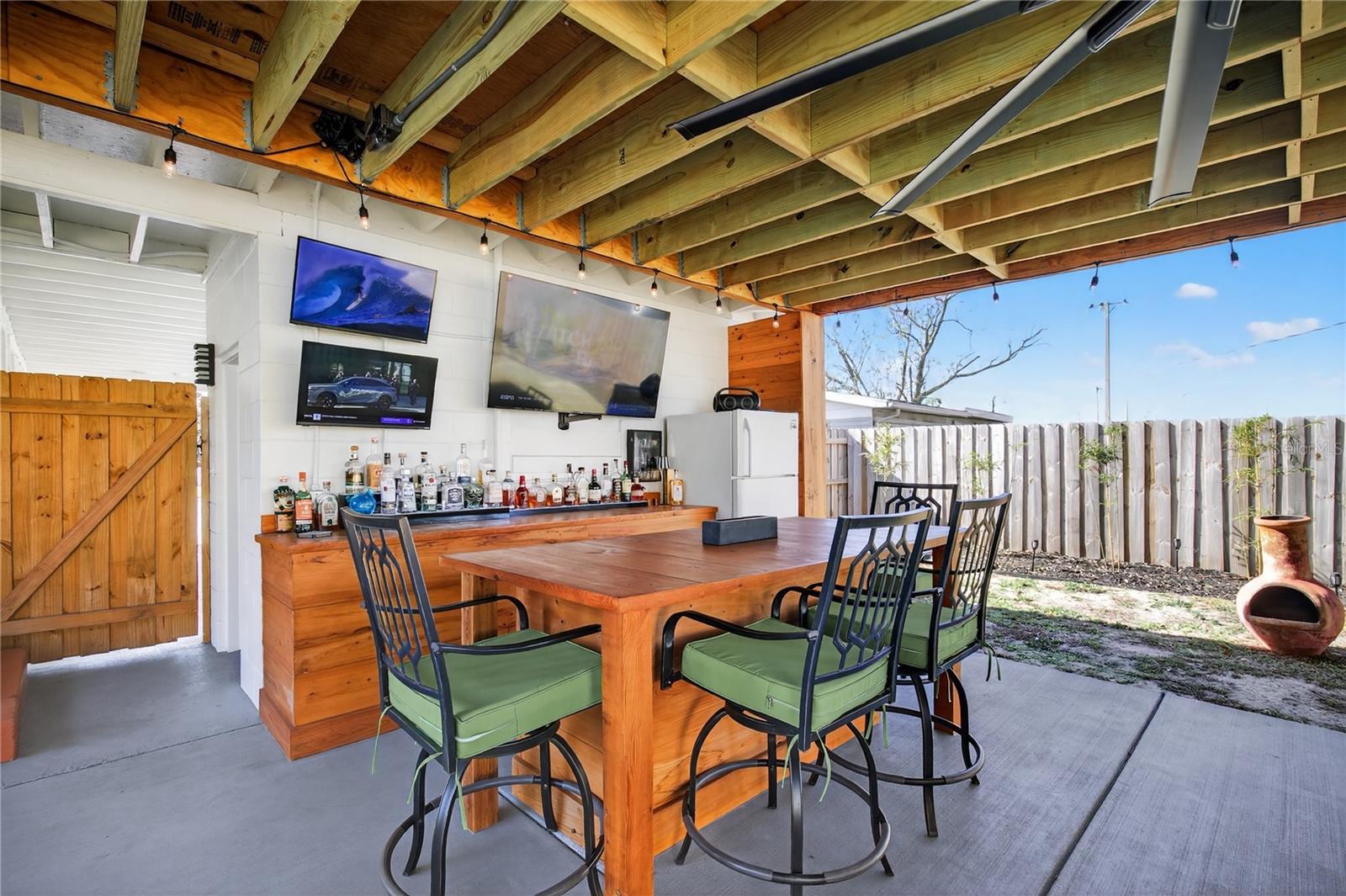 Nestled in the heart of Eustis, Florida, this charming 1935-built home beautifully blends historic character with thoughtful, modern renovations. Though modest in size, the home feels warm and refined, with every detail carefully updated to honor its original charm while offering today’s comforts. Inside, the renovation is evident throughout, complemented by elegant plantation shutters that add both style and light control while enhancing the home’s classic Florida appeal. Step outside to an impressive, fully covered 450-square-foot patio—an ideal extension of the living space. Designed for both relaxation and entertaining, the patio features a custom-built cypress wood table and bar. Crafted from durable cypress, these pieces are made to withstand the Florida climate and provide a timeless gathering place for years to come. The fenced backyard offers added versatility with a newly constructed 10 x 12-foot outbuilding, fully equipped with electricity—perfect for a workshop, studio, or extra storage. Out front, the charming, pristine landscaping adds the curb appeal that takes this property to the next level. Newly poured concrete enhances the beauty and functionality, while an additional concrete slab provides a convenient, dedicated area for discreet trash bin storage. Located in a peaceful, quiet neighborhood, the home offers a sense of calm and privacy while remaining just minutes from shopping, dining, medical facilities, and everyday conveniences. Altogether, this renovated 1935 home delivers historic charm, modern upgrades, exceptional outdoor living, and an ideal location in Eustis. Hurry to make your appointment because this one is really a sight to see. ROOF, HVAC, WATER HEATER, ELECTRICAL, GRANITE COUNTERTOPS and many more upgrades, all completed in 2024 and 2025.
