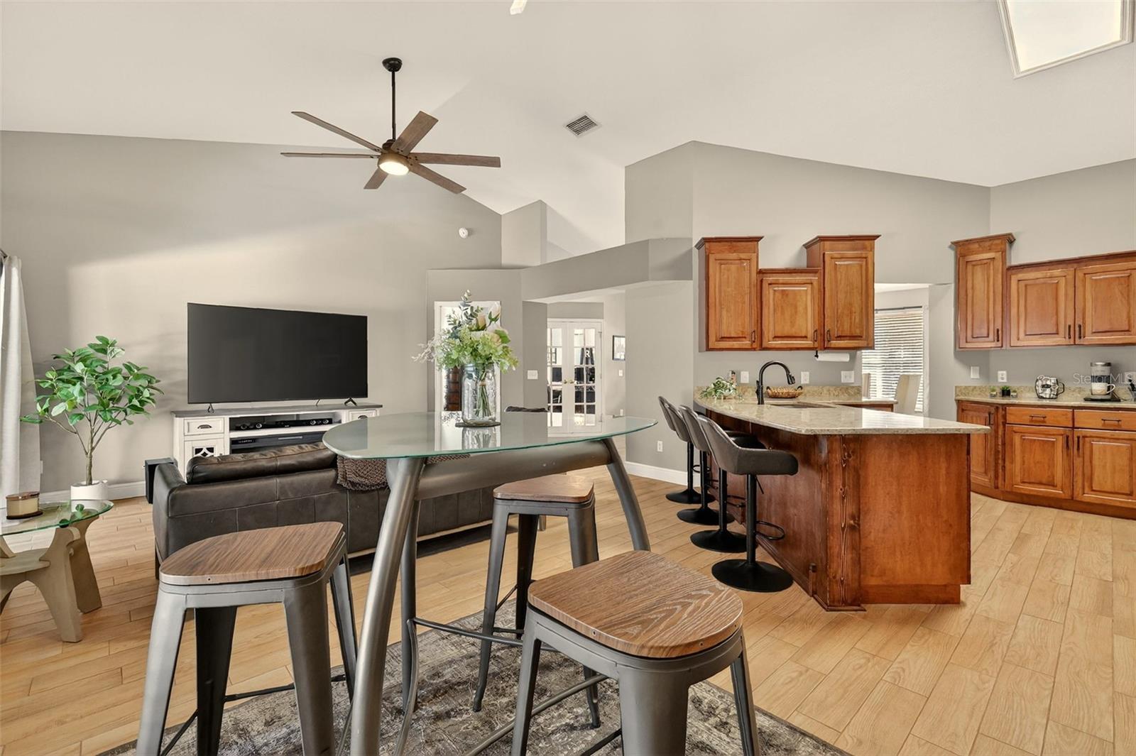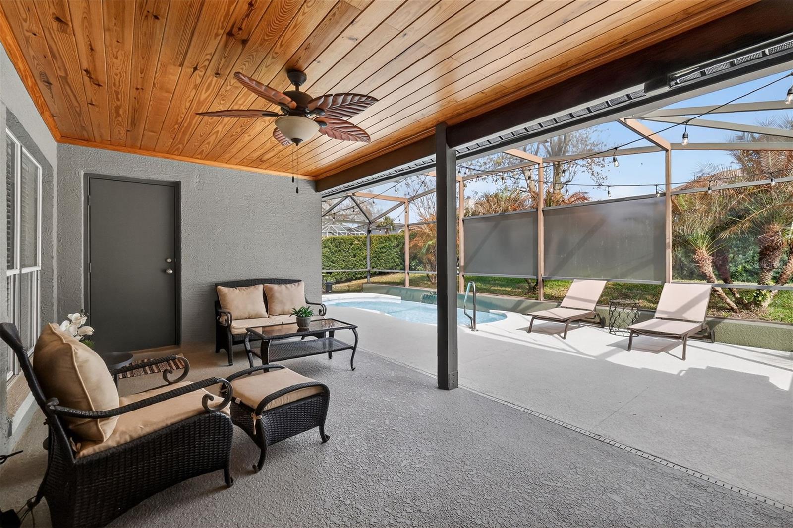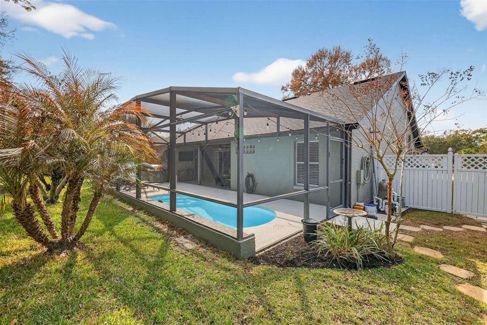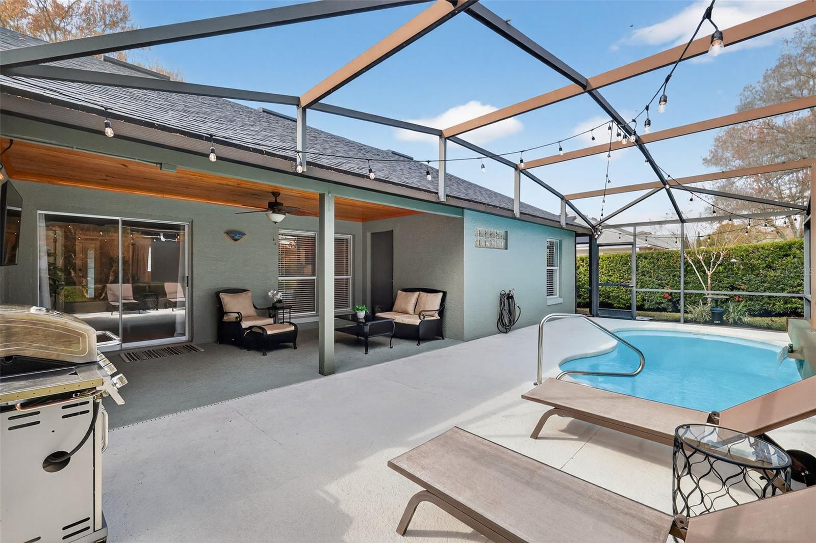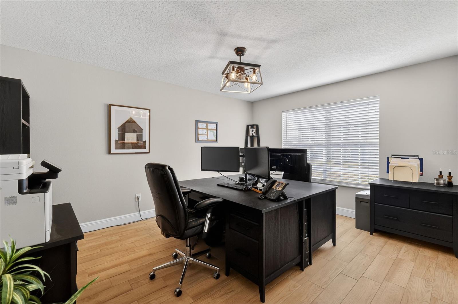 Welcome to this beautifully updated pool home! This home is being offered fully furnished and is ready for you to move into and make your own! Offering 3 bedrooms and 2 full baths, a spacious separate office, split floor plan, cathedral ceilings and many enhanced architectural features. The fully screened outdoor living space has an inviting covered lanai including television, tongue and groove ceilings, barbecue grill and seating areas. The swimming pool includes fiber optic underwater lighting, overhead string lights, automated cleaning robot and a relaxing waterfall. The spacious yard is privacy fenced is fully irrigated, includes a garden shed. Inside the open kitchen is completely updated with custom features including quartz countertops, solid wood cabinets with slide-outs, luxurious stainless-steel appliances and plank tile flooring throughout. The gorgeous upgraded primary bath includes quartz counters, vessel sinks, seated makeup area, and a large relaxing shower. This home is centrally located within minutes to both downtown Eustis and Historic Mount Dora. Easy access to the 453/429 connector for a short commute to Orlando, airports, theme parks, and beaches on the East and West coasts. Come see this exceptional renovated home before its gone!
