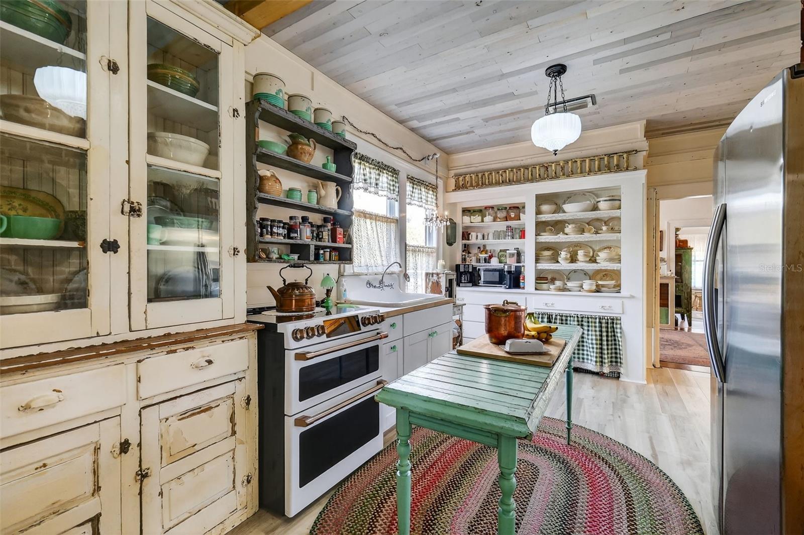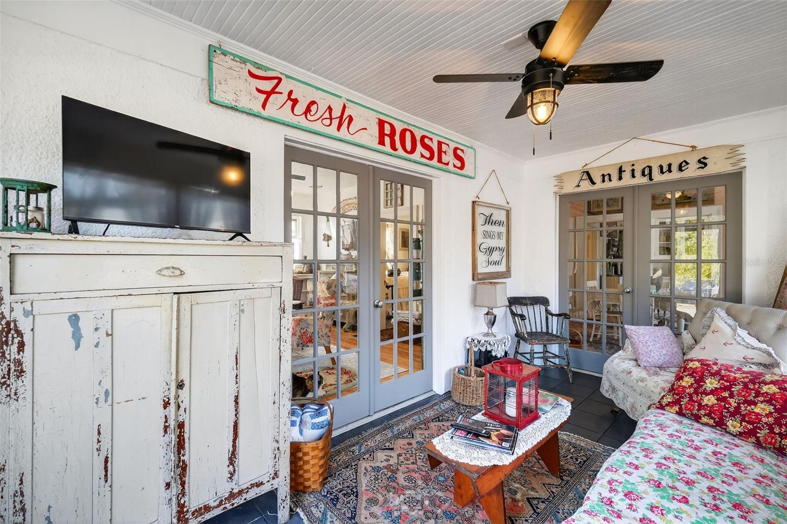 This exceptional and highly desirable 100-year-old cottage, fully renovated with a new roof and updated electrical system, is situated in the historic heart of Eustis. Located within the sought-after neighborhood near Lake Gracie, this classic 1925 residence offers both timeless elegance and modern enhancements. The property boasts convenient access to downtown Eustis and Mount Dora. Beautifully maintained, this two-bedroom, one-bath home marries original vintage features with selective contemporary updates. Key elements include ceiling fans, stone & butcher block kitchen countertops, and appliances installed within the last 18 months. Other distinguishing characteristics are the original wood flooring, a stained-glass bathroom window, built-in shelving/cabinets in the kitchen & dining room, and a traditional wood-burning fireplace in the living room, all contributing to its enduring appeal. Additional amenities enhance this charming Florida property, such as screened front and back porches for expanded living space, French doors that promote openness throughout the interior, and a spacious backyard awaiting personalization. The home is set on a quiet street and includes a partially fenced backyard, plus a detached garage and shed suitable for workshop or storage needs. This property is ideal for those who appreciate vintage architecture and design. Please note: certain personal items are excluded from the sale on the interior and exterior of the home. Blind offers will not be considered; prospective buyers must physically view the property. No hard money loans or wholesalers will be accepted