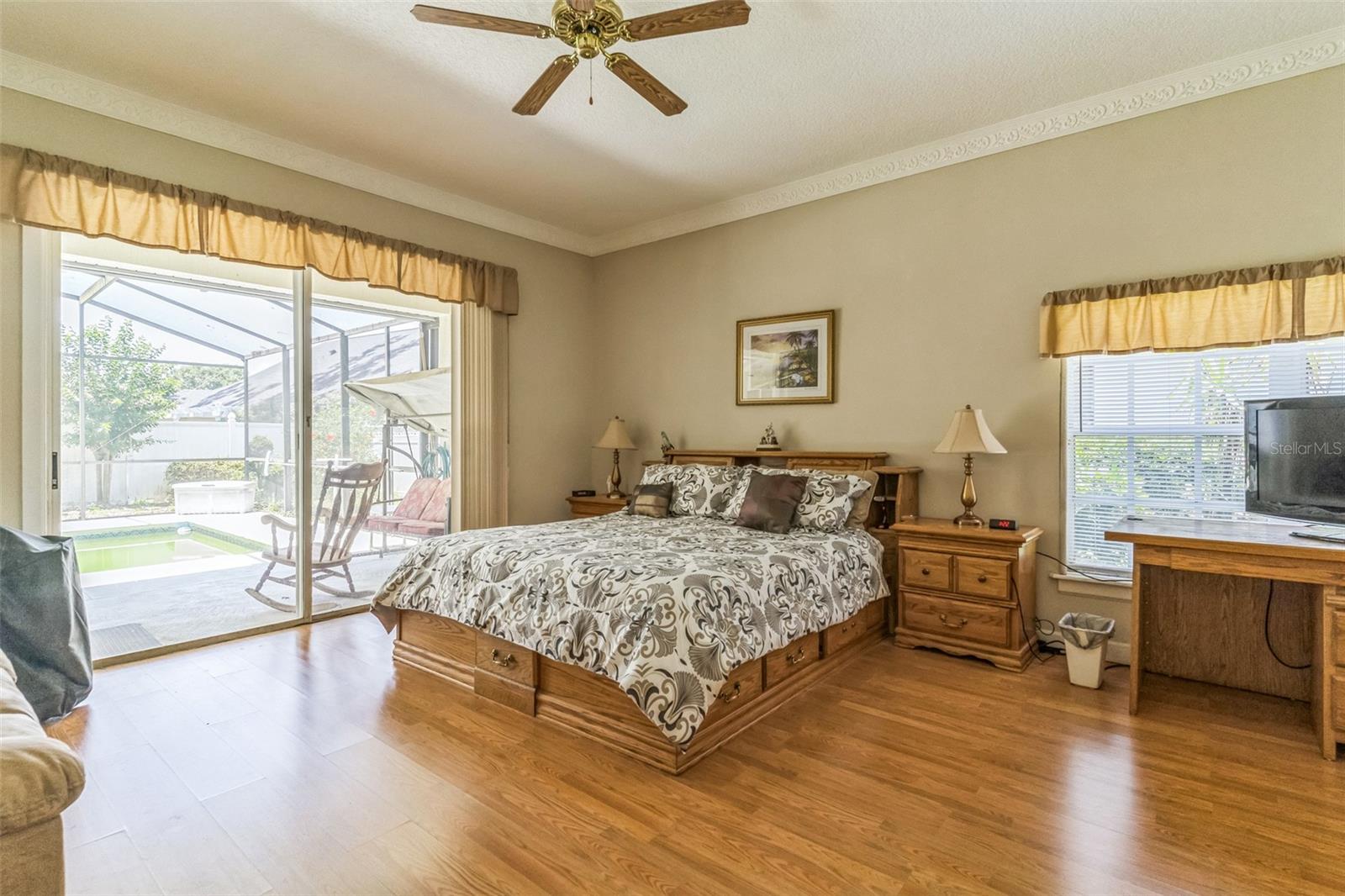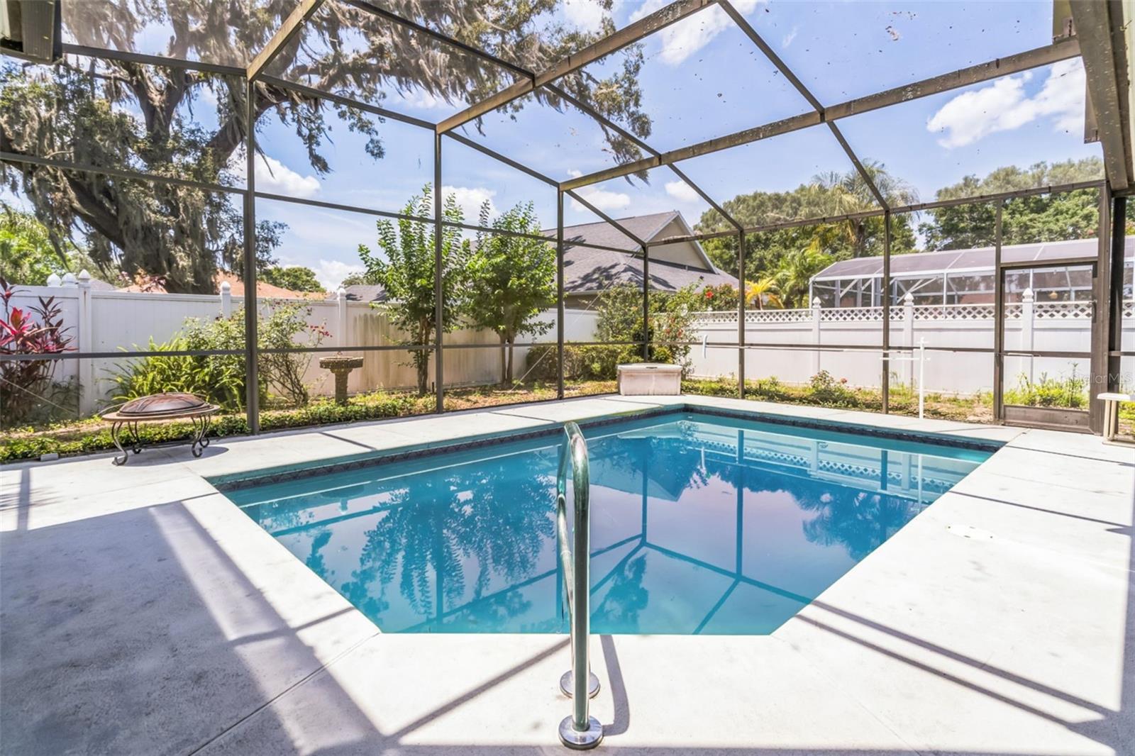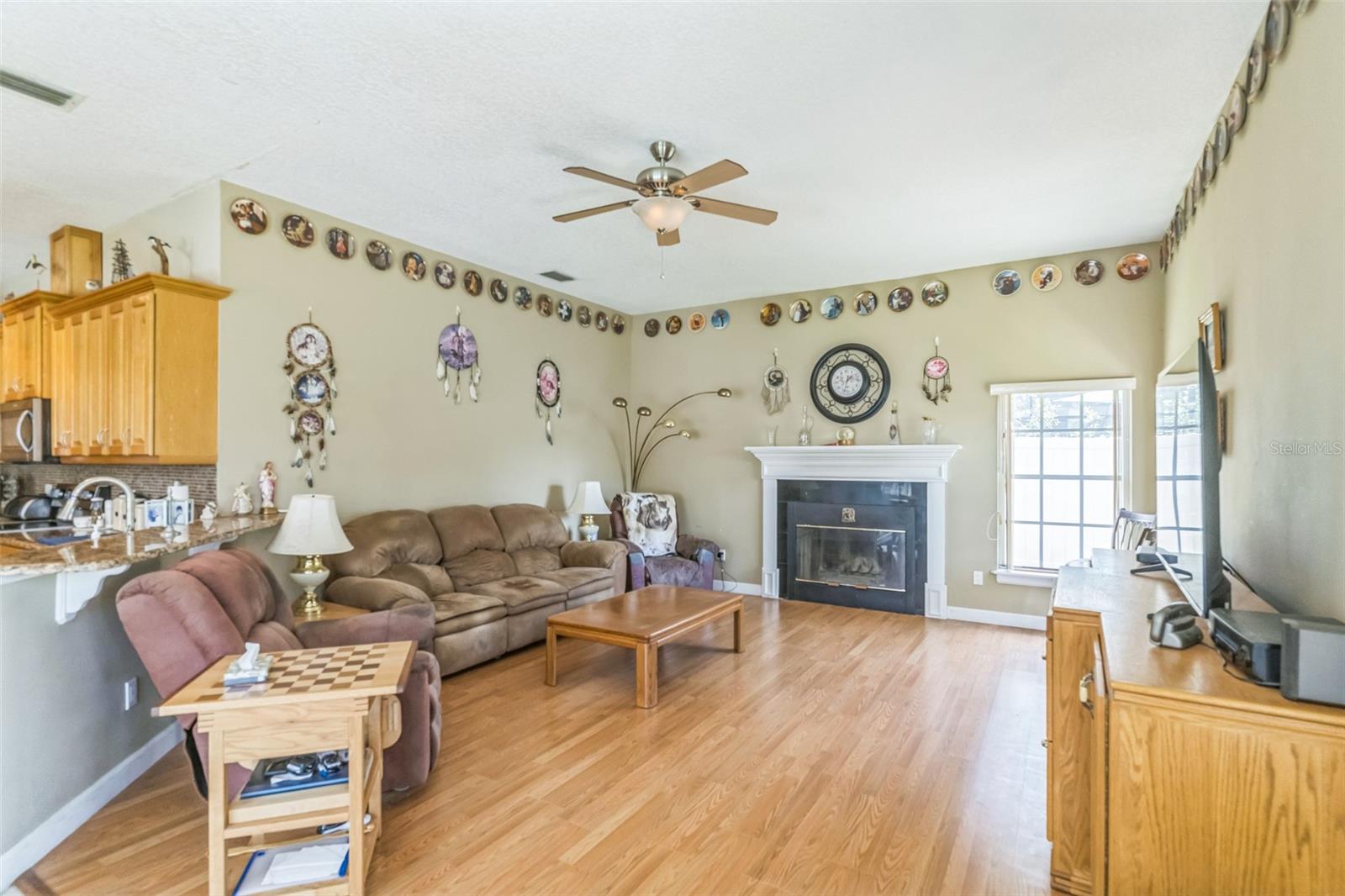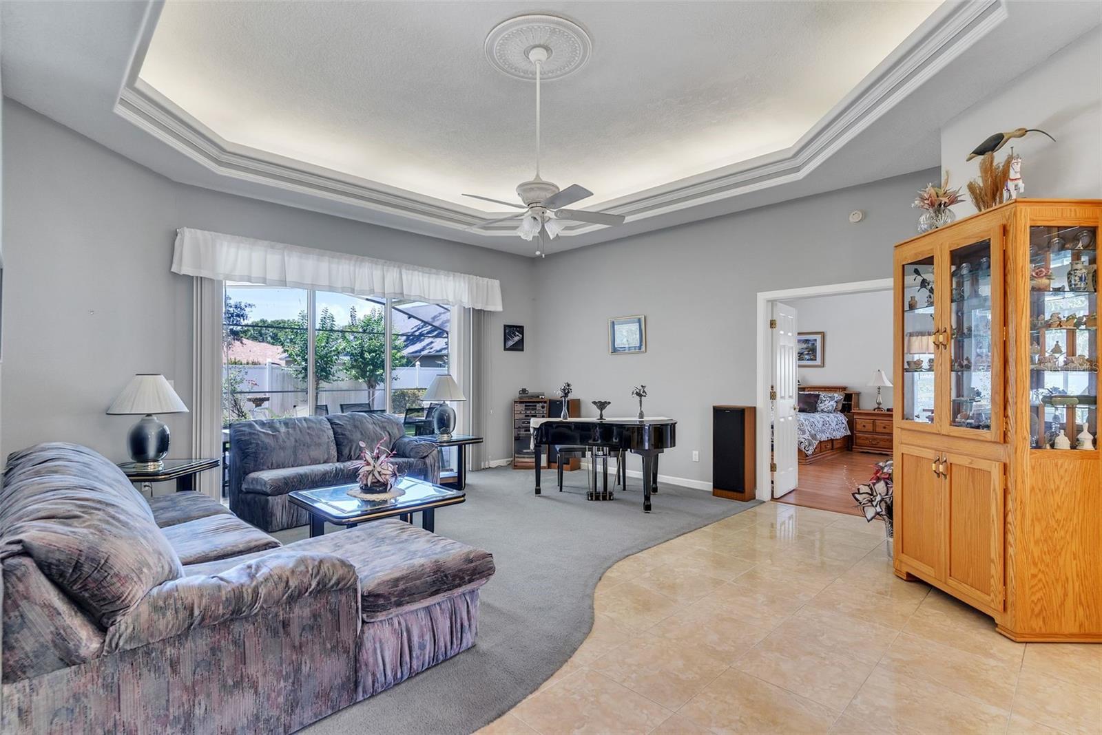 Tucked inside the well-kept community of Park Place on Lake Joanna, this 3-bedroom, 2-bath home sits on a quarter-acre lot with a screened-in pool and covered lanai. The kitchen features custom-built cabinets, granite countertops, and a clear view of the pool area. The primary suite includes sliding glass doors to the pool, dual vanities, and a spacious walk-in dressing room-style closet. Additional highlights include a wood-burning fireplace and a separate utility/workshop room under air. Residents enjoy private lake access with a community boat ramp—fishing and skiing are both allowed on Lake Joanna.