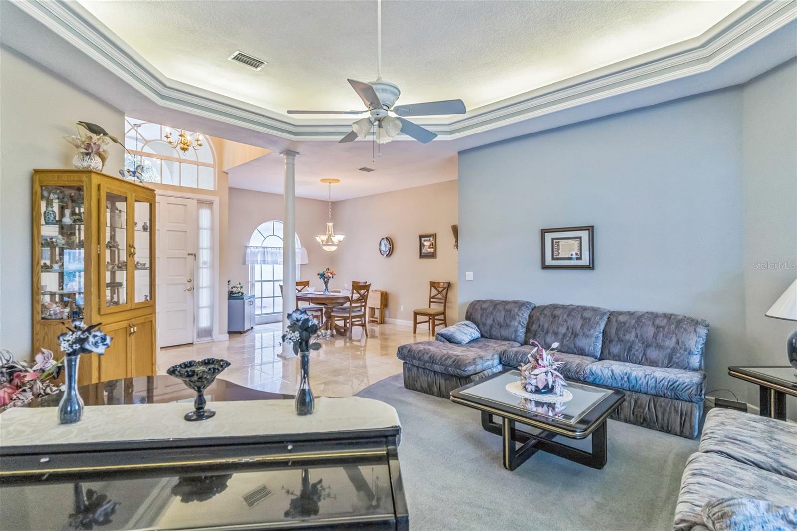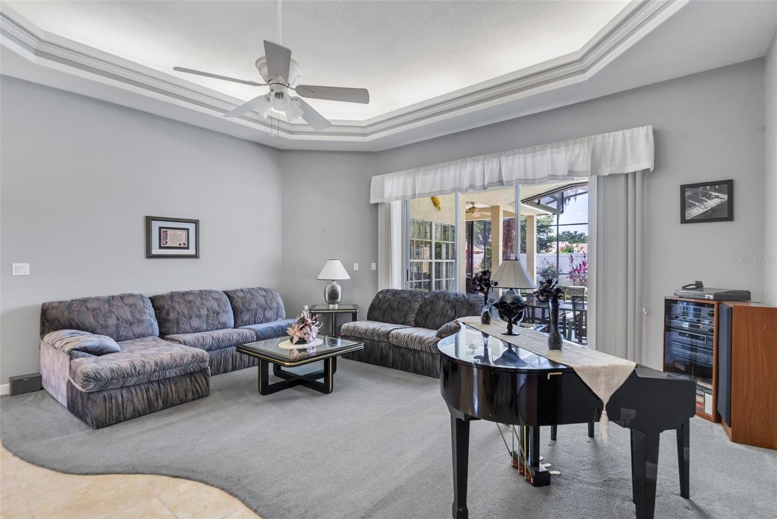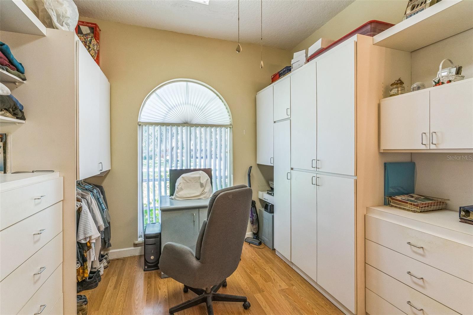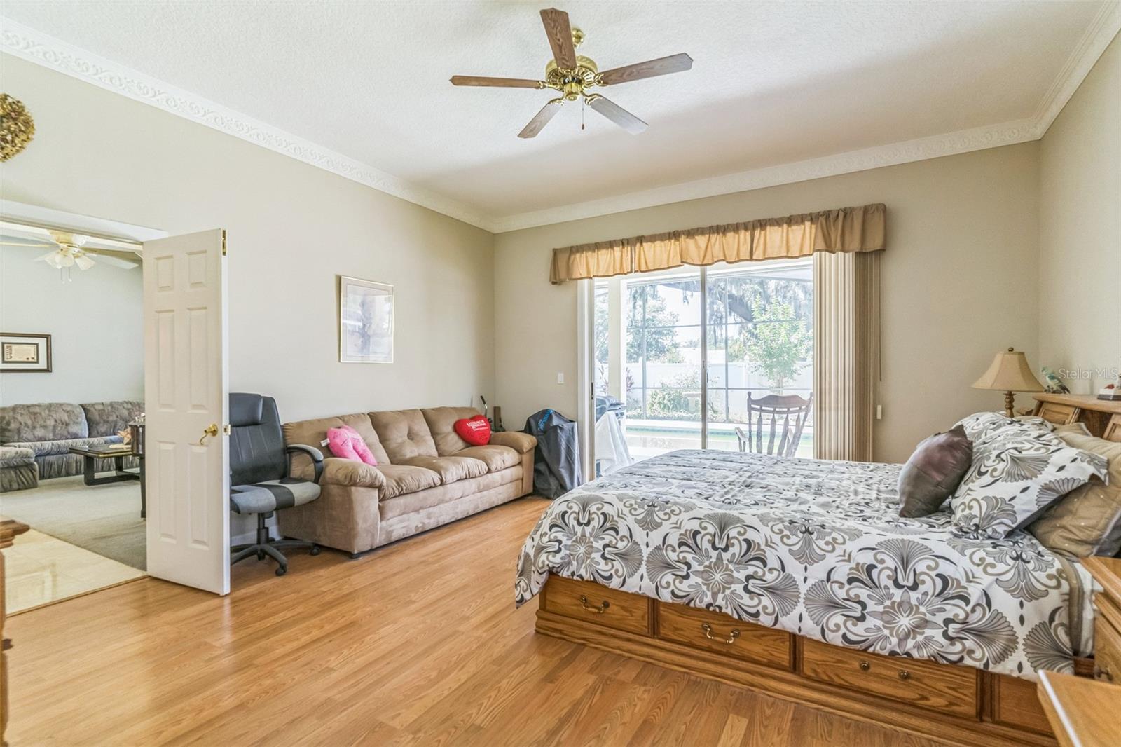 Tucked inside the well-kept community of Park Place on Lake Joanna, this 3-bedroom, 2-bath home sits on a quarter-acre lot with a screened-in pool and covered lanai. The kitchen features custom-built cabinets, granite countertops, and a clear view of the pool area. The primary suite includes sliding glass doors to the pool, dual vanities, and a spacious walk-in dressing room-style closet. Additional highlights include a wood-burning fireplace and a separate utility/workshop room under air. Residents enjoy private lake access with a community boat ramp—fishing and skiing are both allowed on Lake Joanna.