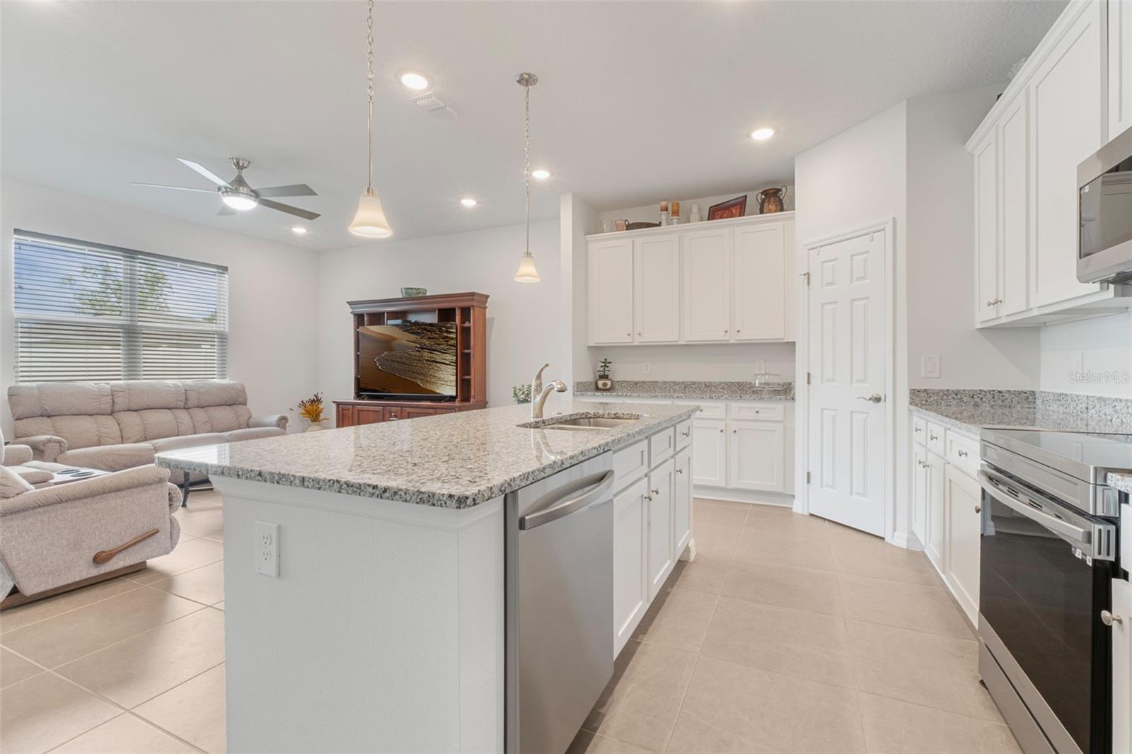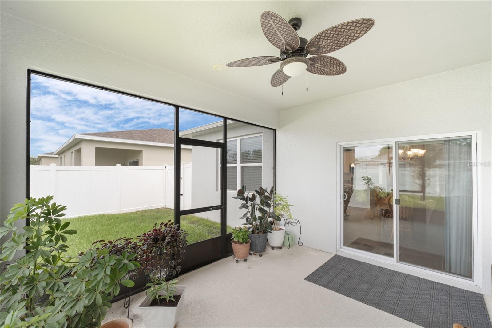 Welcome to this beautifully maintained 3-bedroom, 2-bath home in the desirable Mayhill community of Eustis—just minutes from Lake Eustis and charming Downtown Mount Dora. Built in 2022 by Stanley Martin Homes, this “Baker” floor plan was designed with efficiency, comfort, and style in mind. Since purchasing, the owners have added several valuable upgrades, including a vinyl privacy fence, full gutter system, ceiling fans in every room, and a screened-in back porch—perfect for enjoying Florida evenings year-round. Step inside through the covered front porch into a welcoming foyer, where you’ll find two spacious bedrooms and a full bath with double vanity tucked neatly at the front of the home—ideal for guests or a home office. The heart of the home is the open-concept kitchen, living, and dining area. The kitchen features a large center island, stainless steel appliances, and plenty of cabinet space, all overlooking the bright and airy living space—perfect for entertaining or everyday living. The private primary suite is located at the rear of the home and offers a large walk-in closet and en-suite bath with dual sink vanity. Step outside to your newly screened-in porch and fully fenced backyard—ideal for pets, play, or relaxing in peace. Located in a growing community surrounded by nature, yet close to shopping, dining, and weekend markets in Eustis and Mount Dora, this home offers the best of both convenience and quiet living. Don’t miss your chance to own a nearly new home with custom upgrades—schedule your showing today!