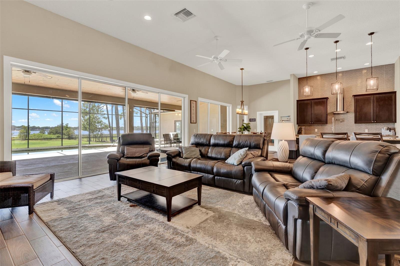 This Central Florida waterfront estate simply has it all to offer. Whether you love magical sunsets or water activities, this is the perfect home for you. Tucked away from the road by a gated entry and situated on 3.5 acres on the sought after spring-fed, white sand bottom Lake Joanna, this home boasts 5,032 square feet and features 5 bedrooms with 5 full and 2 half baths. This home offers an open floor plan and an abundance of natural light all throughout. A wall of glass sliders help to provide a true indoor/outdoor living feel, seamlessly transitioning out to 2900 square feet of lanai space that features an outdoor kitchen, wood burning fireplace, heated saltwater pool, and 180 degree breathtaking lake views! The primary suite/wing is located on the first floor of the home along with two other en-suite bedrooms. Stepping out to the lanai will lead you to a separate in law quarters with pool access and waterfront views. Bonus room upstairs features double closet spaces and a full bath. Additional features include: 3+ acres of privacy, oversized ADA compliant doorways, double ovens, wet bar with wine fridge and ice machine, dock with boat lift, double jetski floating dock, 3 car garage, 26x24 storage shed with 2 roll up doors, security system, secure gated entry, secondary washer dryer hookup in the primary suite. Satellite internet, ceiling surround sound speakers throughout the house with Denon receiver. This home is 1 mile distance from retail centers and 3 miles to the 429. 3.5 miles to downtown Mount Dora. 180 degree western sunset view. 100 feet of lake frontage. NO HOA. On the border of Mt Dora. Lake Joanna is a 335 acre spring-fed private lake located in unincorporated Lake County. Don’t miss out on the opportunity to own a piece of lakefront paradise. Call to schedule your private showing today!