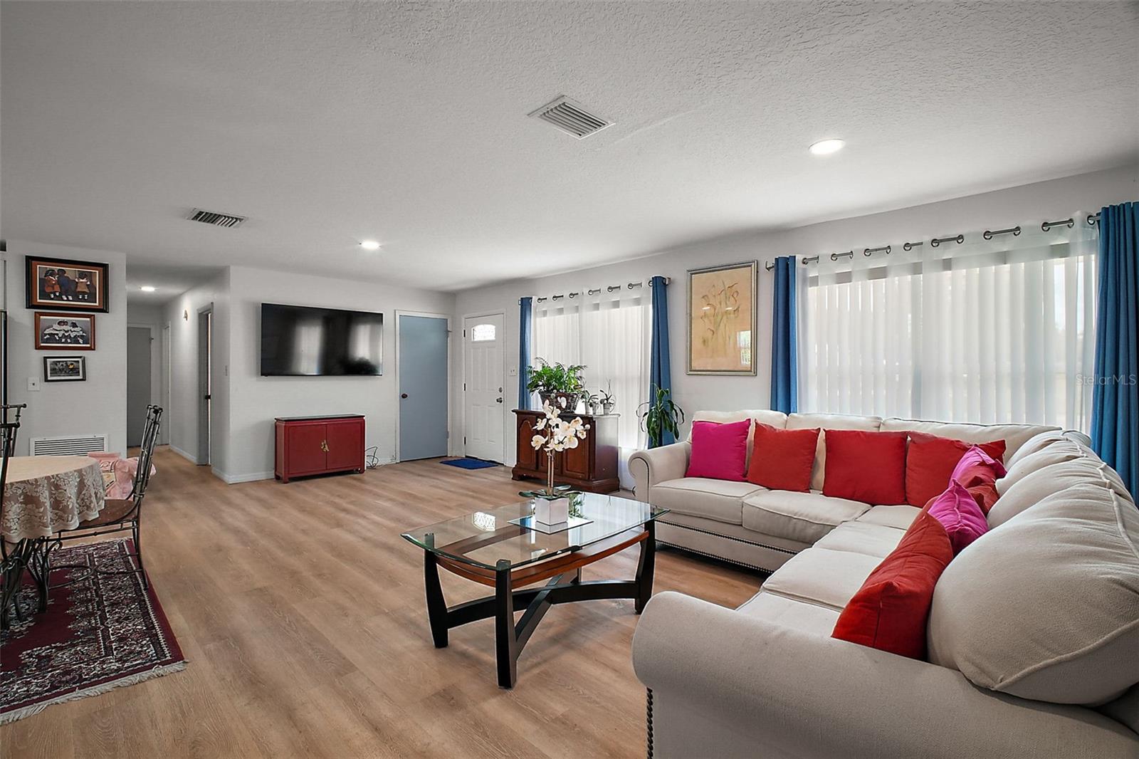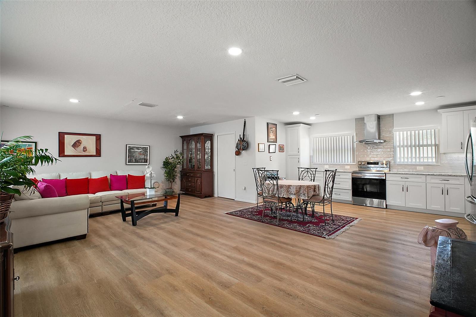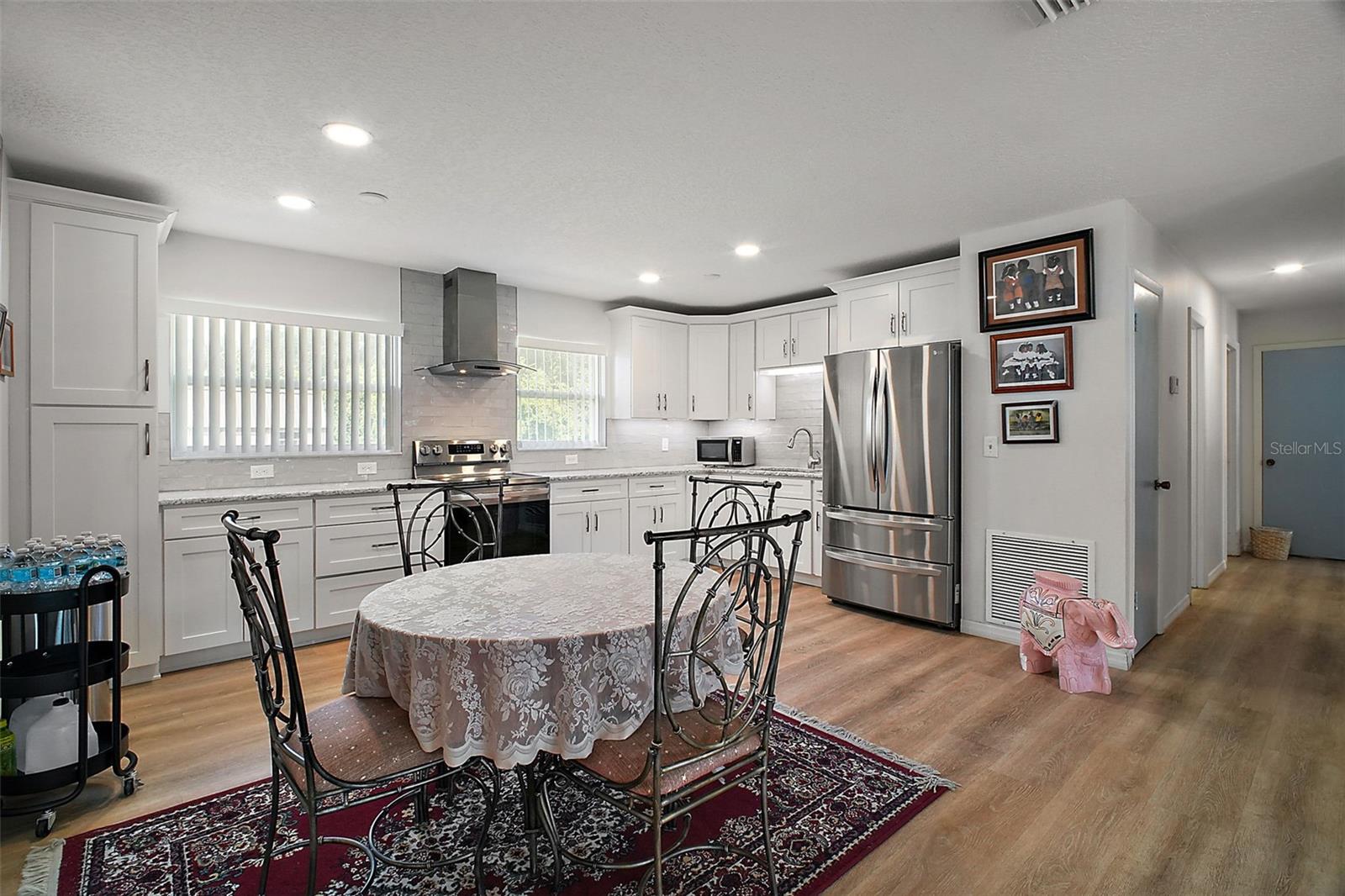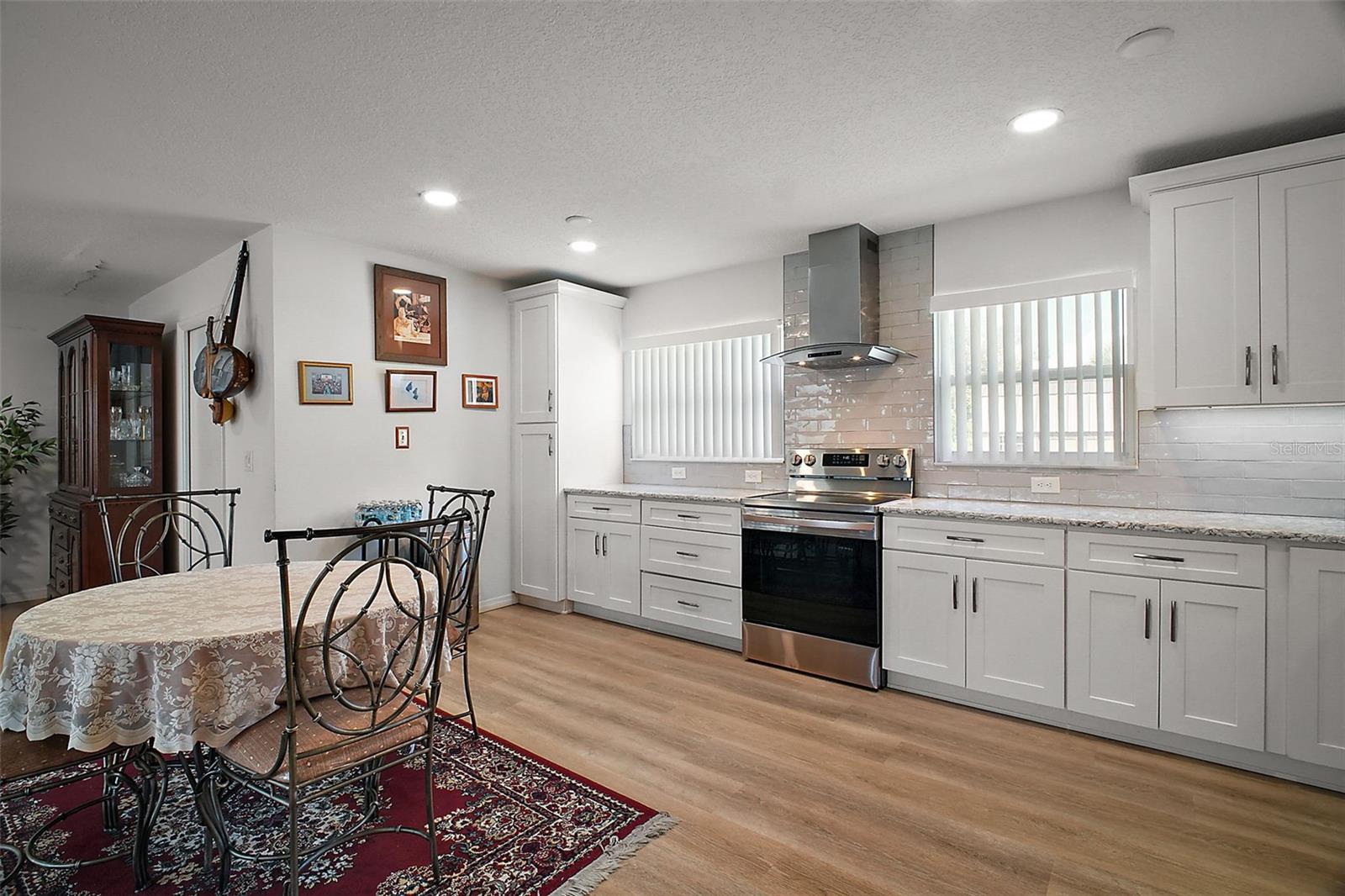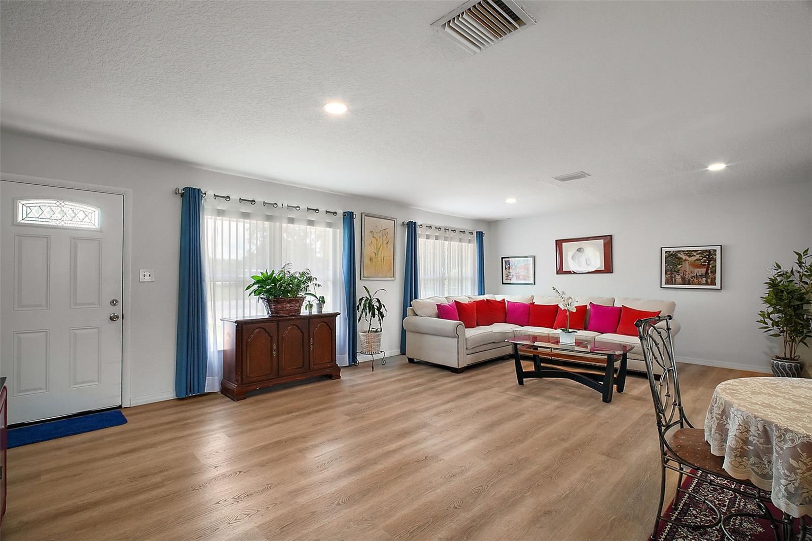 This lovely 3 bedroom, 2 bath home was renovated in 2022. Beautifully expanded living space, open floor plan design with new kitchen cabinets and countertops. The vinyl plank flooring throughout the home brings warmth and style. The laundry room is separate, and the half bath was turned into a full bath. This cozy home is perfect for a first-time homebuyer or anyone looking to down-size. There is a shed in the back for storage and plenty of land in the back for entertaining and enjoying family and friends. Minutes away from downtown Eustis, local schools and a park. This property is surrounded by restaurants and shopping. You have to see it to believe it. Schedule your showing today.