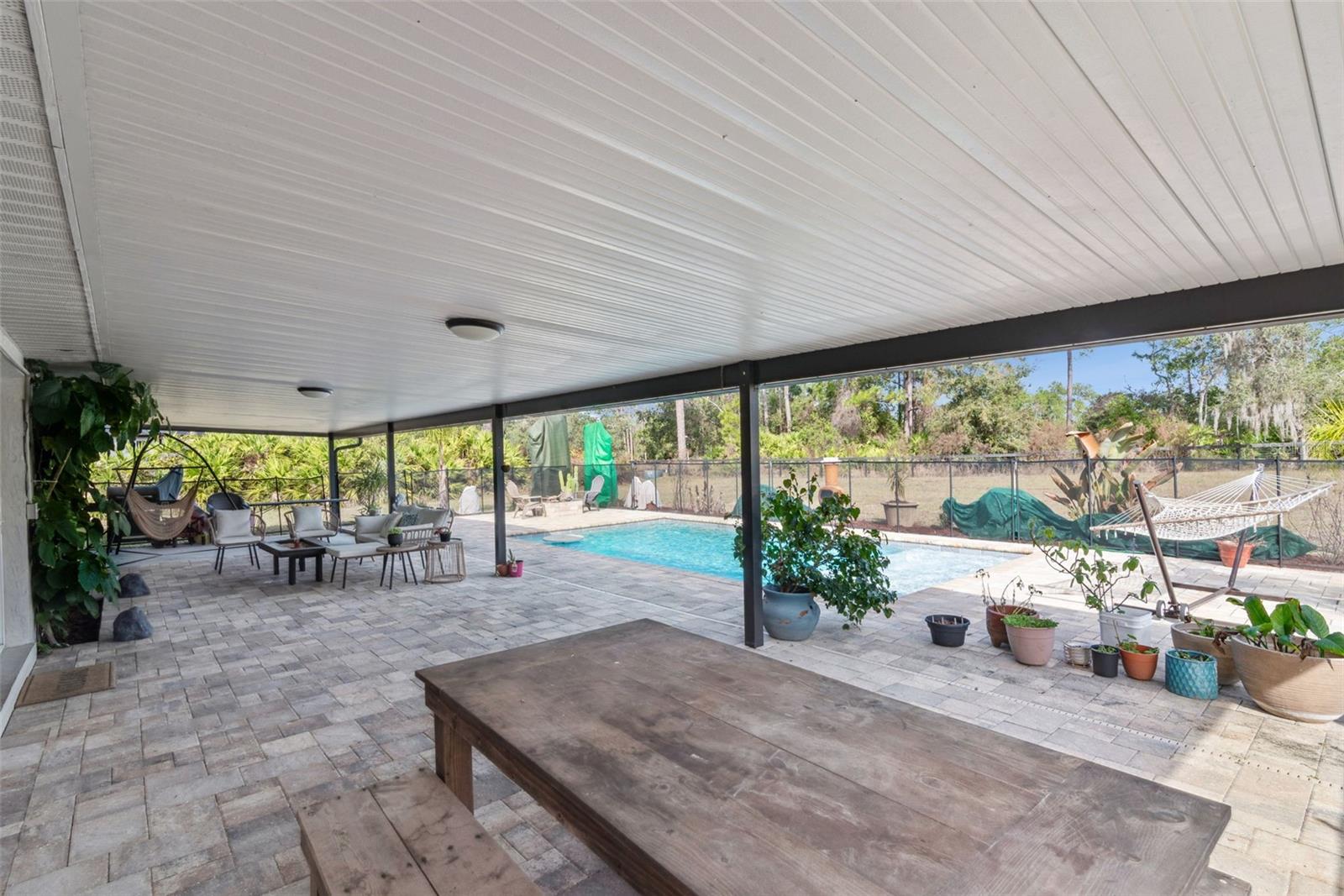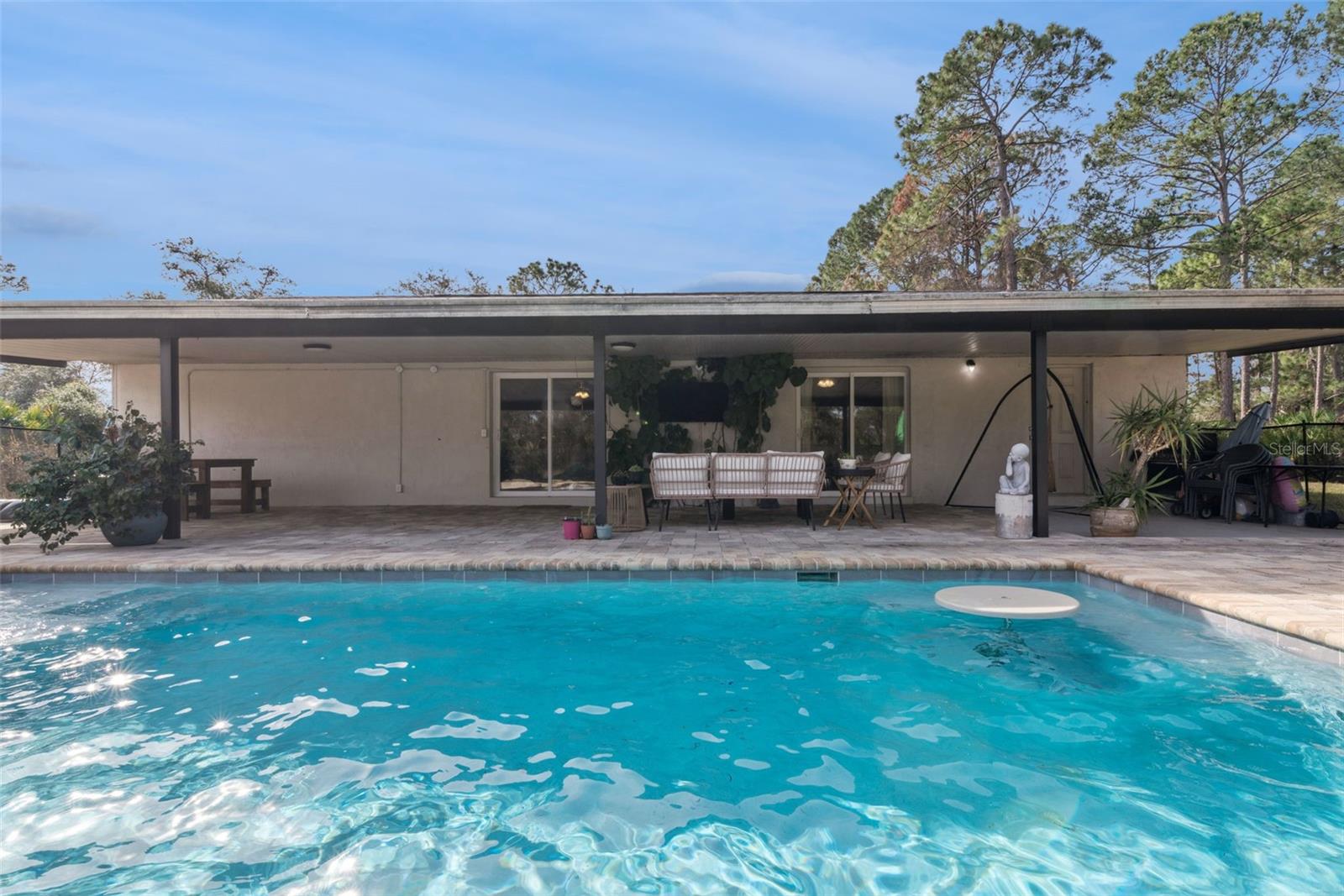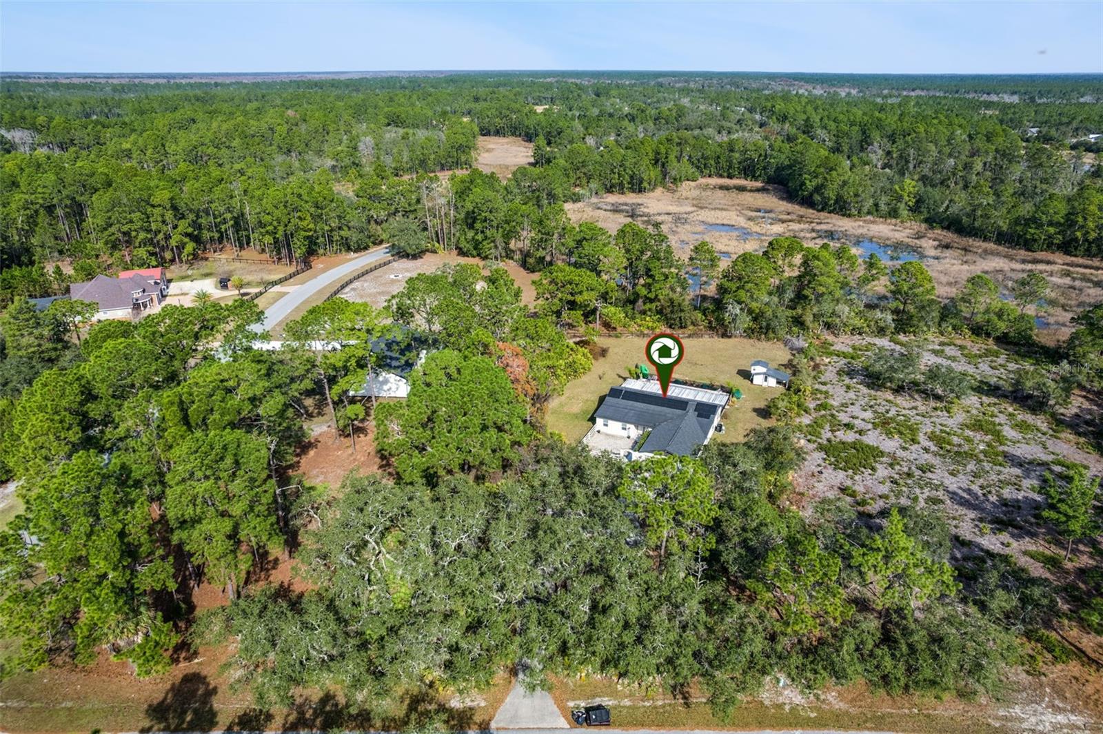 Welcome to this beautiful, UPDATED 4 bedroom, 2 bath POOL home situated on a spacious 1-acre lot in Eustis! This property offers a perfect blend of comfort and functionality with an oversized 2 car garage, extended driveway, storage shed, inviting front porch, large rear porch/ covered lanai overlooking the stunning new, solar heated lap pool. It is ideal for relaxing recreation or entertaining. The spacious acre lot is very private with a serene, wooded view. New ROOF 2021, New Trane HVAC 2021, New GE Smart Water Heater 2021, New Salt Water POOL 2022, SOLAR panels for entire home and Pool 2022. Very minimal electric bill. Inside, completely remodeled! Throughout the home you will find wood-look tile flooring in the main living areas and laminate wood-like flooring in all the bedrooms. No carpet! Built-in wine cellar. The spacious great room offers high ceilings with beautiful wood-beams. The kitchen features granite countertops, a plethora of bright cabinetry, stainless steel appliances and plenty of workspace for the chef in your home. A breakfast bar and separate over-sized dining room. The primary bathroom includes a walk-in tiled shower, while the second bathroom offers a convenient bathtub with shower. Enjoy the freedom of a large yard with endless possibilities for outdoor living, gardening, or recreation, plus your own private POOL for Florida living at its best. This home offers space, privacy, and room to grow in a peaceful setting. Book your private viewing today before it is too late!