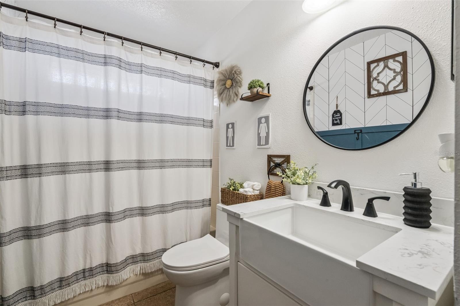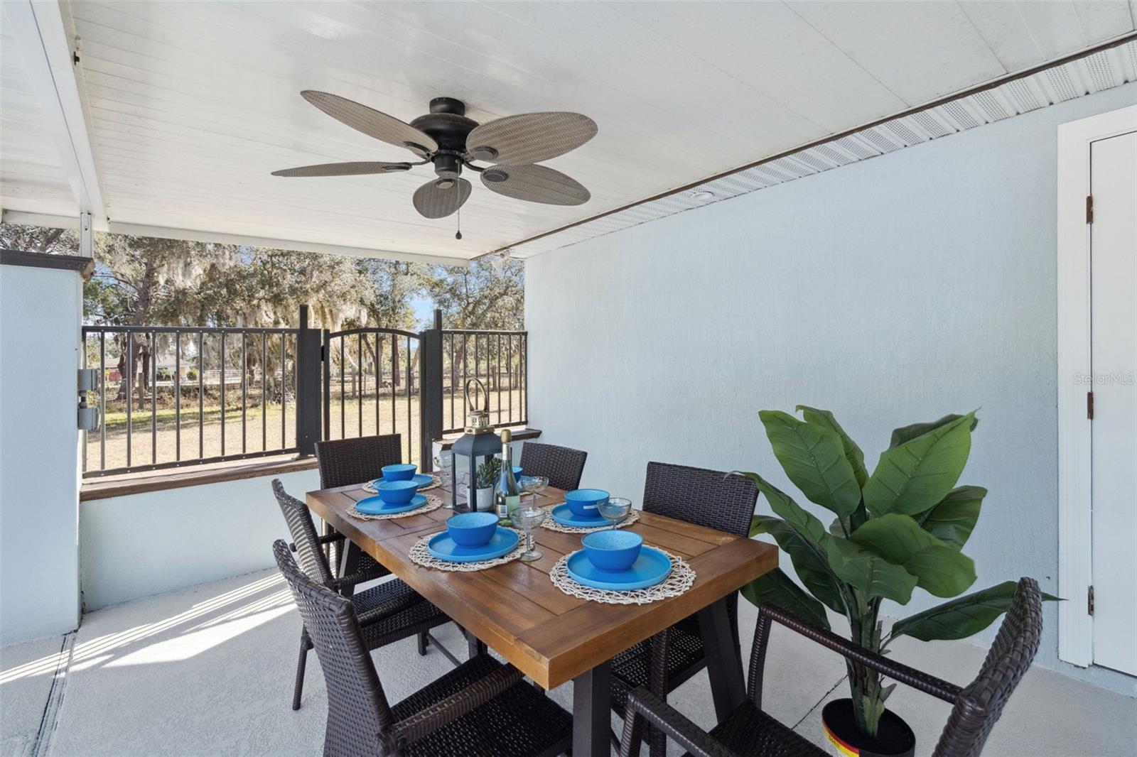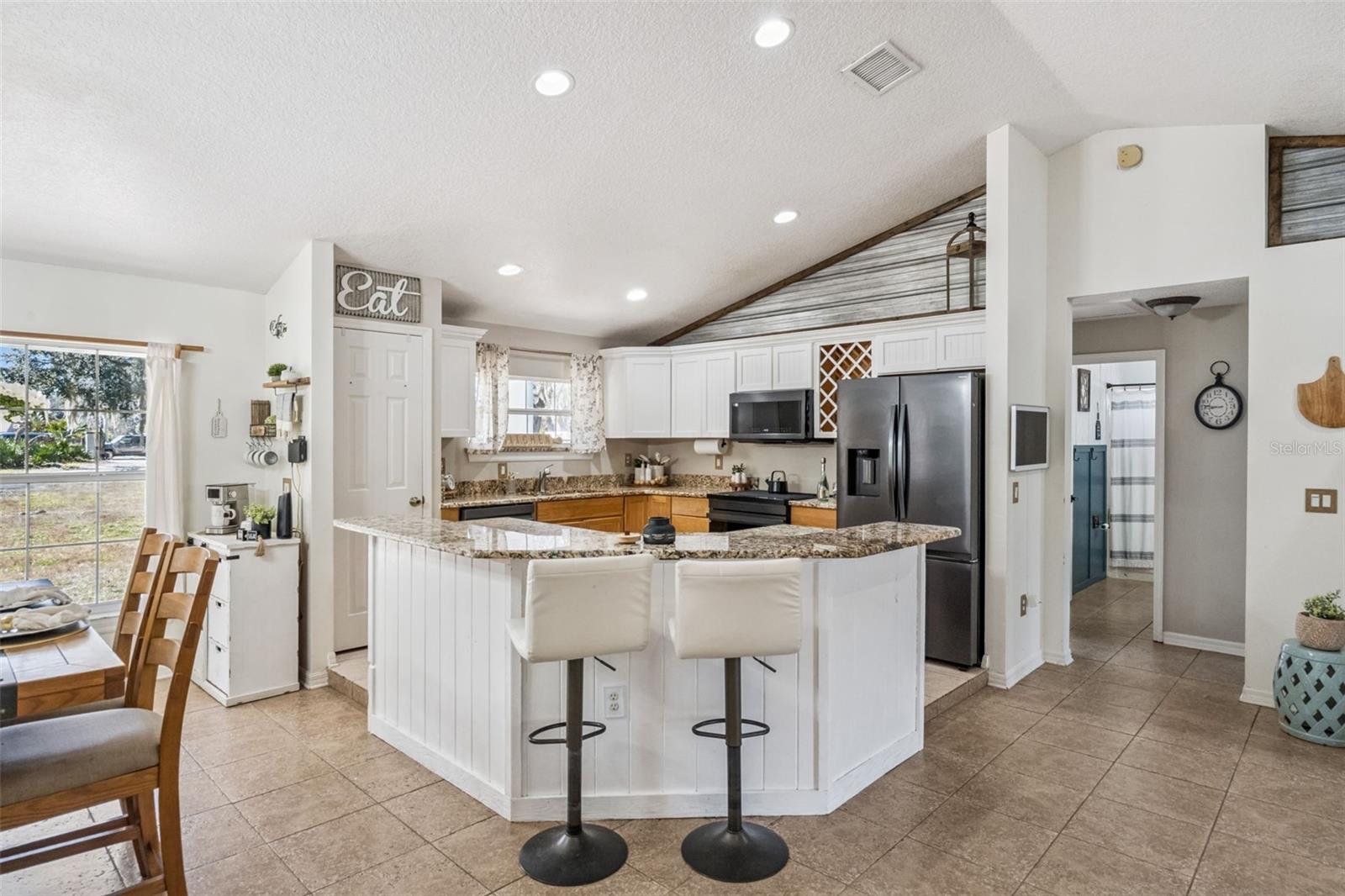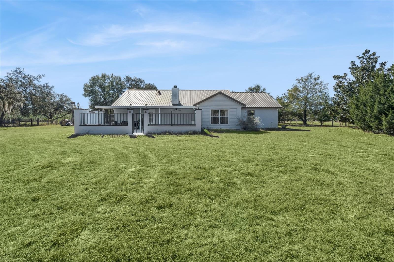 Welcome home to peaceful country living with everyday convenience. This charming 4-bedroom, 2-bath ranch home sits on just over one acre, surrounded by mature landscaping and accessed by a long, gated driveway that offers privacy and a welcoming sense of arrival. Inside, an open floor plan with a desirable layout is enhanced by vaulted ceilings, tile flooring throughout, and abundant natural light. The kitchen is the heart of the home, featuring stainless steel appliances, granite countertops, and a breakfast bar with additional seating—perfect for casual meals or gathering with family and friends. On one side of the home, the spacious primary suite features an en-suite bath with double vanities and a relaxing garden tub, along with an additional guest bedroom. Two more bedrooms and a full guest bath are thoughtfully located on the opposite side of the home. Step outside to a large covered and fenced back patio overlooking the property—an ideal spot to unwind and enjoy the serene setting. Additional highlights include a generous laundry area, durable metal roof, and a detached garage. Best of all, there’s no HOA, yet you’re just a few miles from Publix shopping and minutes to SR-429 and SR-46. A true country gem with room to breathe and space to call home.