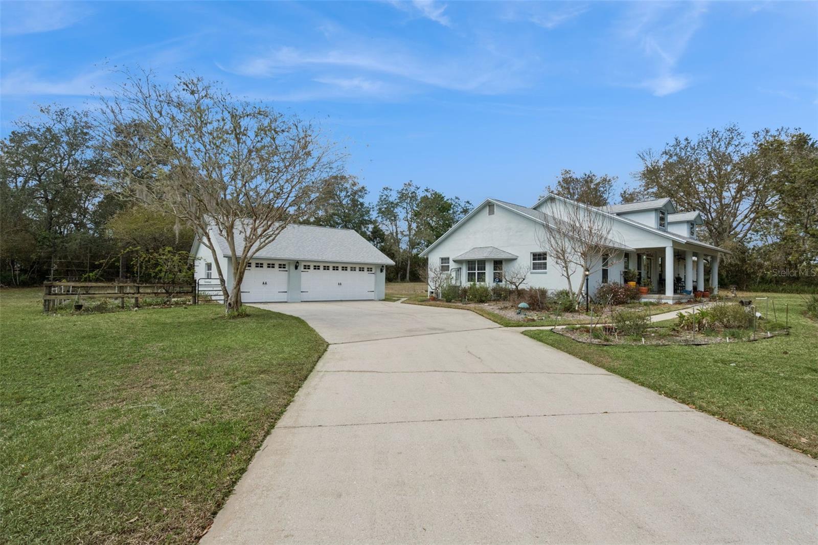 Discover this rare opportunity to own a custom built estate set on 1.57 private acres in a peaceful rural setting. Designed with intention and built in 2000, this 3 bedroom, 2.5 bathroom residence offers 2,073 square feet of refined living space that blends comfort with craftsmanship. A new roof installed in 2023 and a whole-home generator added in 2025 to provide both confidence and long term value. The detached 30 by 30 three-car workshop garage offers exceptional space for vehicles, collections, or hobbies, while the expansive grounds allows room to park a RV or boat directly on your own property. A dedicated potting shed adds charm and flexibility for those who appreciate outdoor living. With low HOA restrictions and convenient access just 30 minutes to downtown Eustis and 30 minutes to downtown DeLand, along with proximity to Mount Dora’s shops and dining, this property delivers privacy, presence, and convenience in one impressive package. If you are ready for space, security, and the distinction of a custom home, schedule your private showing today.