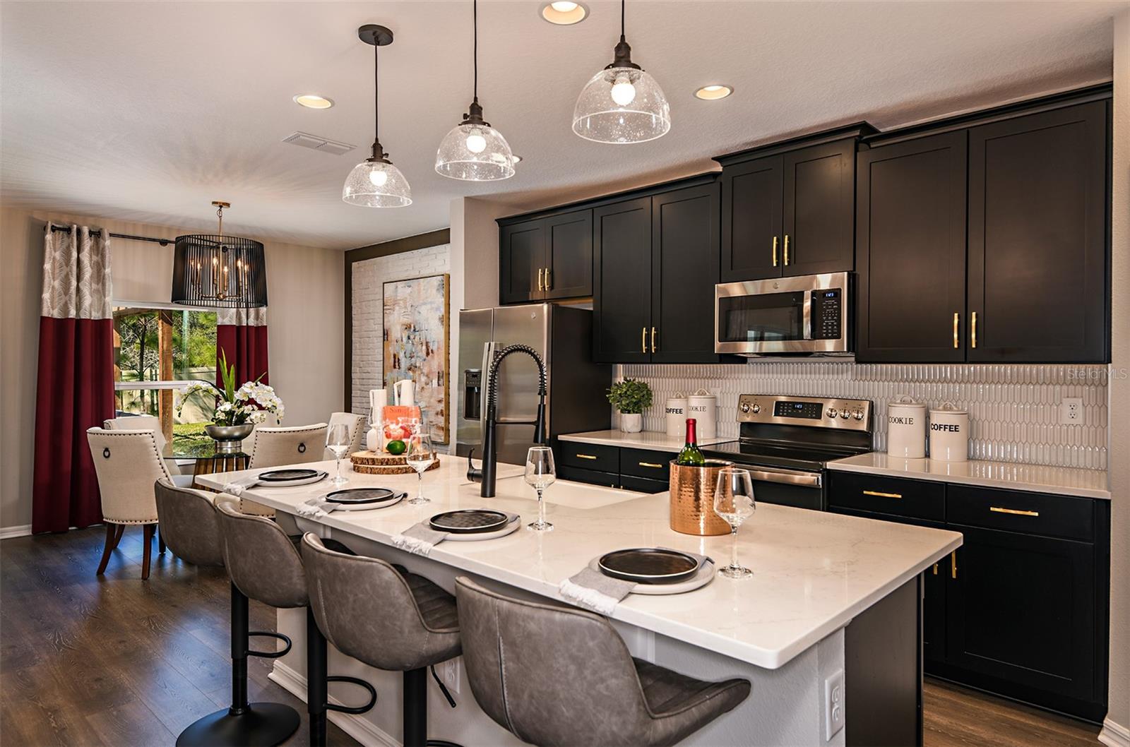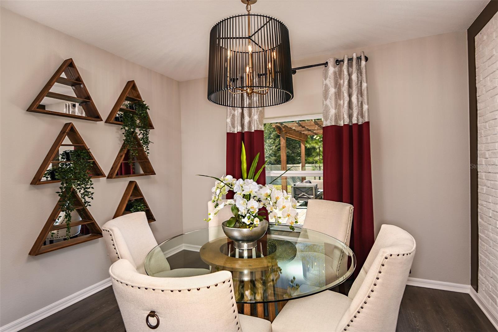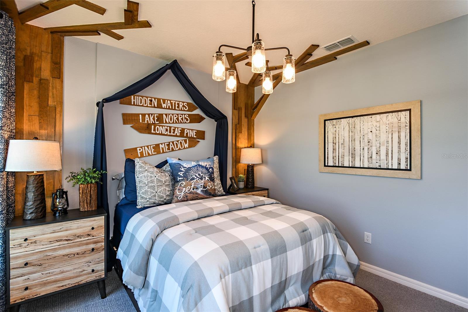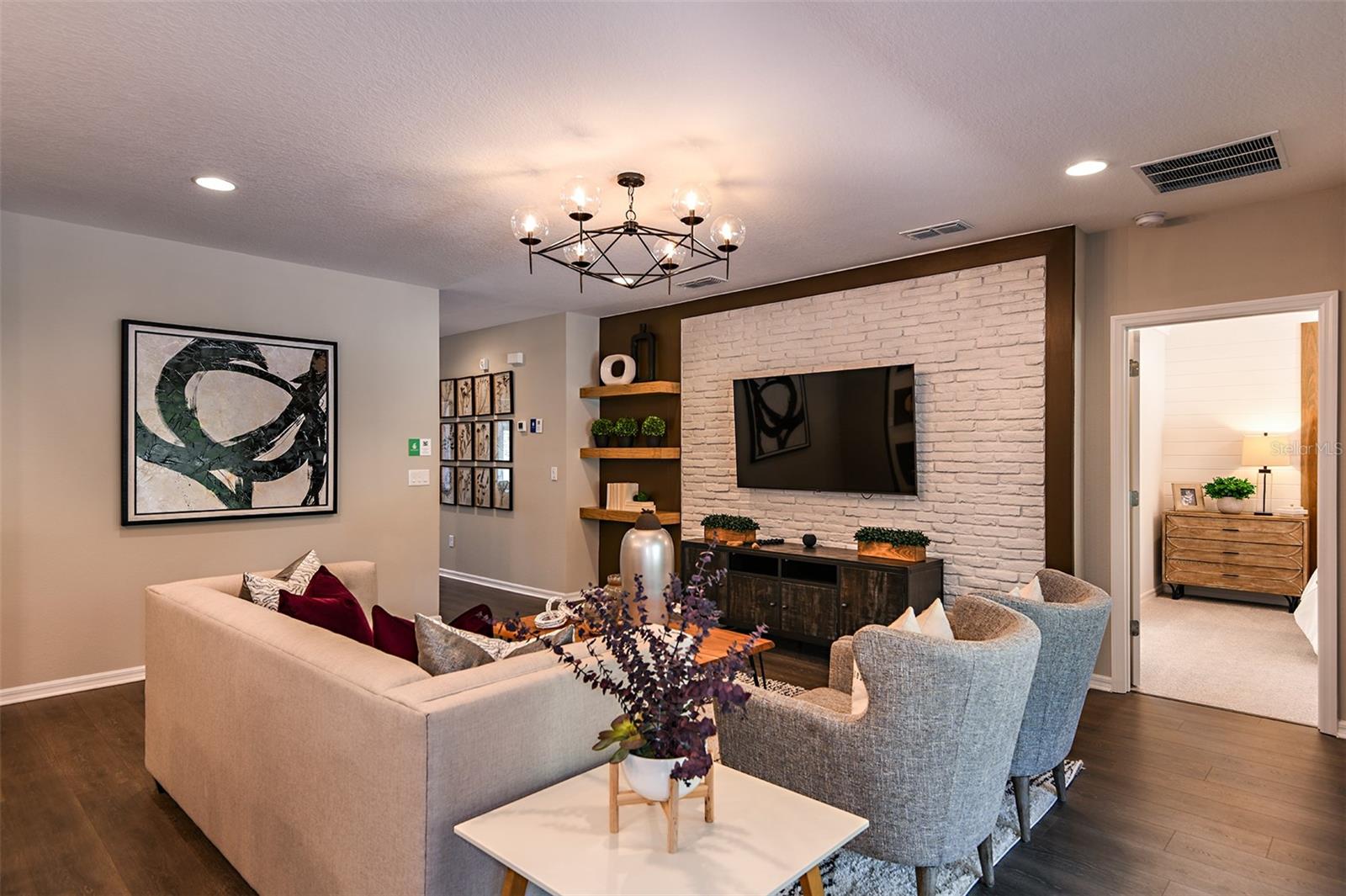 This former model home showcases an array of upgrades and designer touches throughout. Featuring a spacious open floor plan with 4 bedrooms and 2 bathrooms, this home is perfect for both everyday living and entertaining. The great room layout seamlessly connects the living room, kitchen, and dining area, creating an inviting space for gatherings. The kitchen is a chef’s delight, complete with stainless steel appliances, breakfast bar, pantry, and decorative backsplash. Retreat to the primary suite is thoughtfully designed with crown molding for added designer touch and includes an ensuite bathroom with dual sinks, upgraded tile in the frameless glass shower, and a walk-in closet. Three additional generously sized bedrooms offer flexibility for guests or a home office. Additional features include a convenient interior laundry room. Step outside to enjoy the covered back patio, which opens to an extended paver patio with a fire pit and pergola—perfect for relaxing or entertaining outdoors. Located in the Lake Lincoln community, residents enjoy access to walking trails, dog park, and shaded playground. Conveniently situated near, shopping, dining, and major roadways, this home truly has it all.