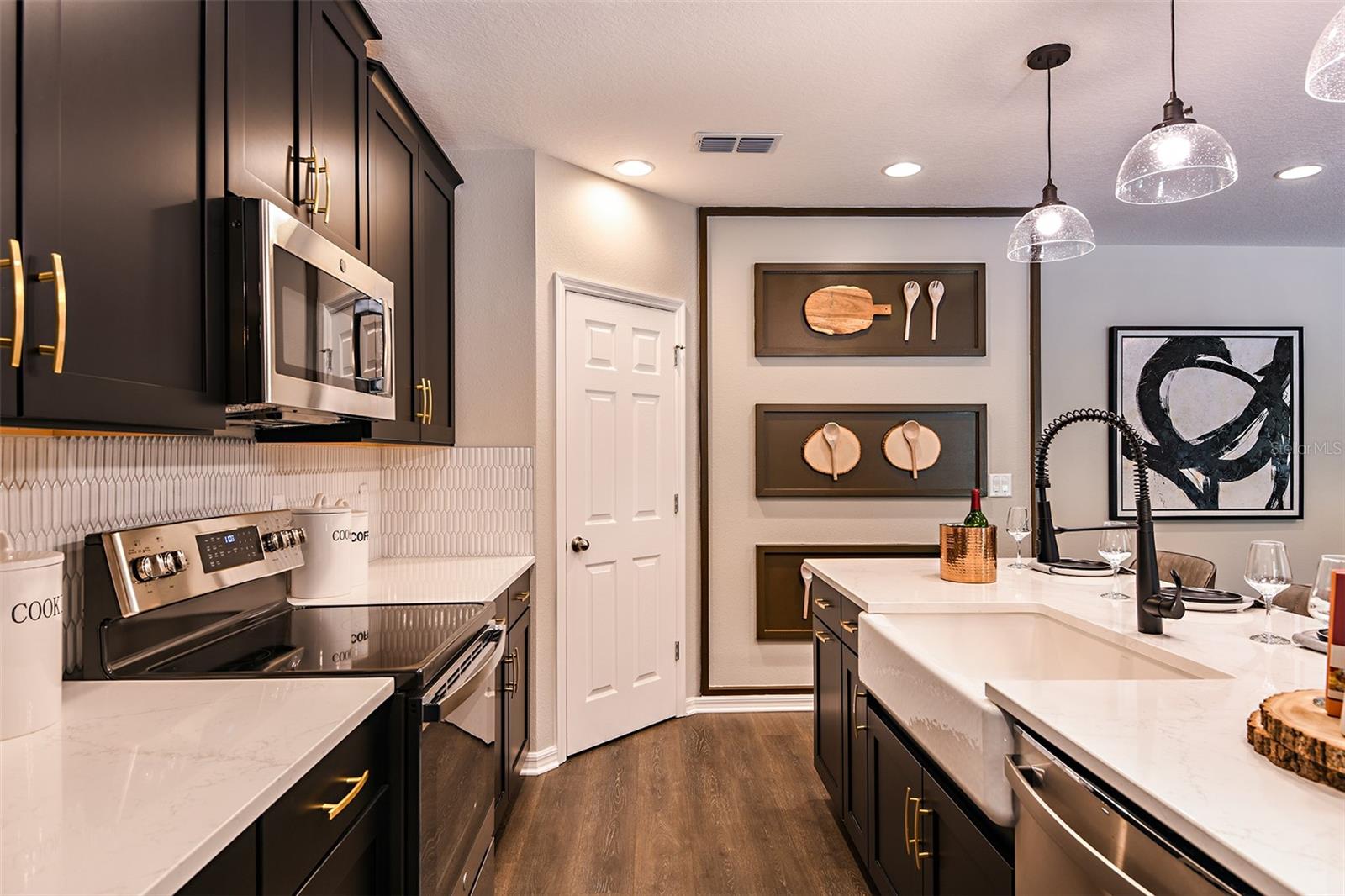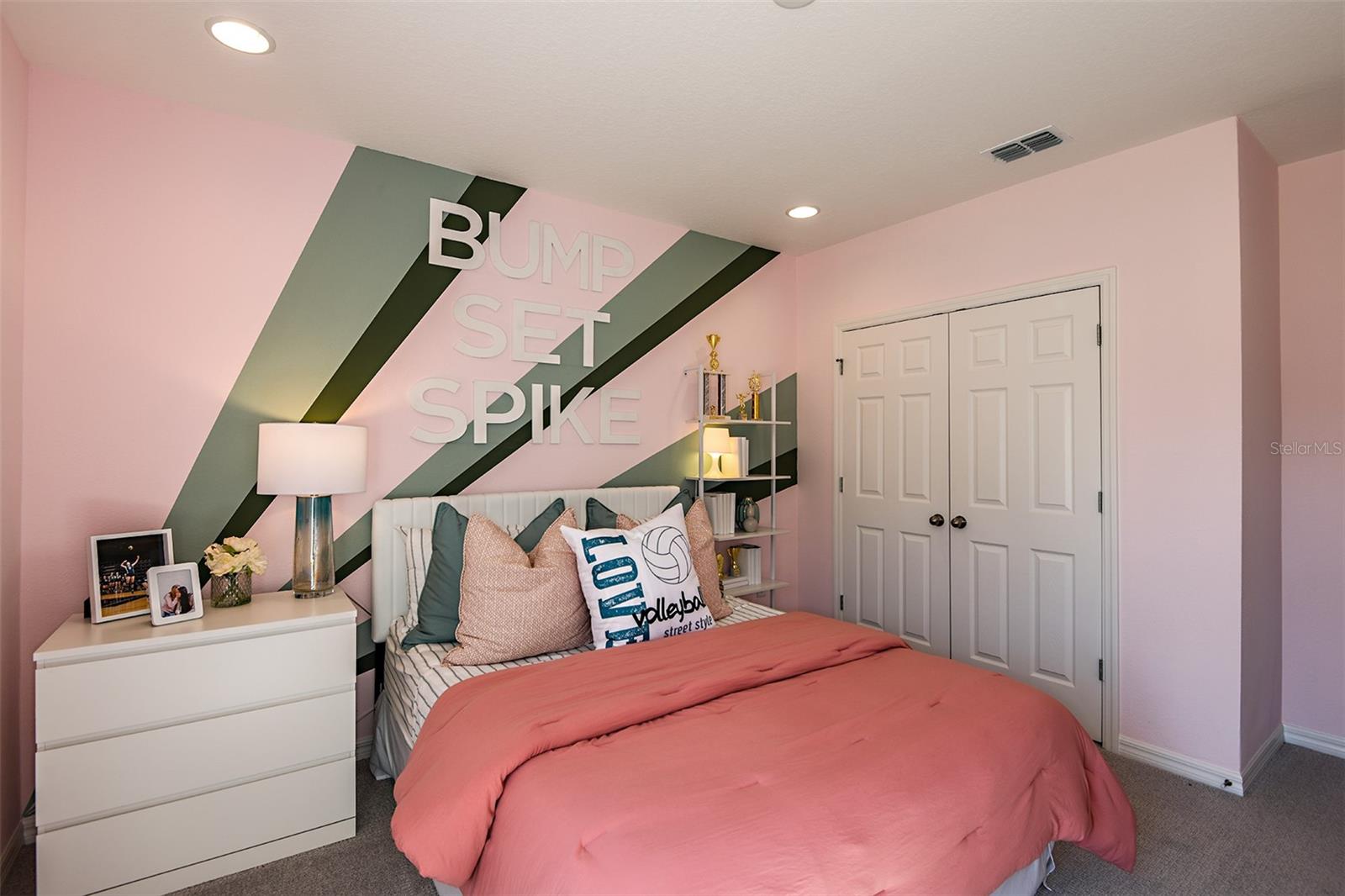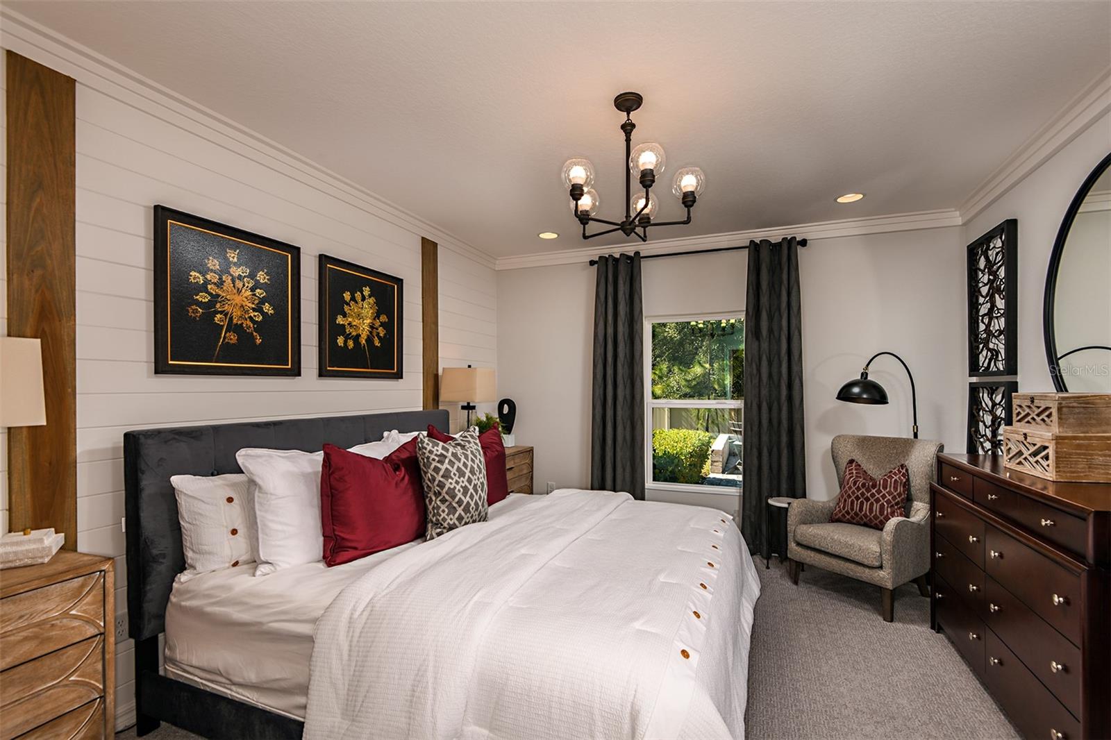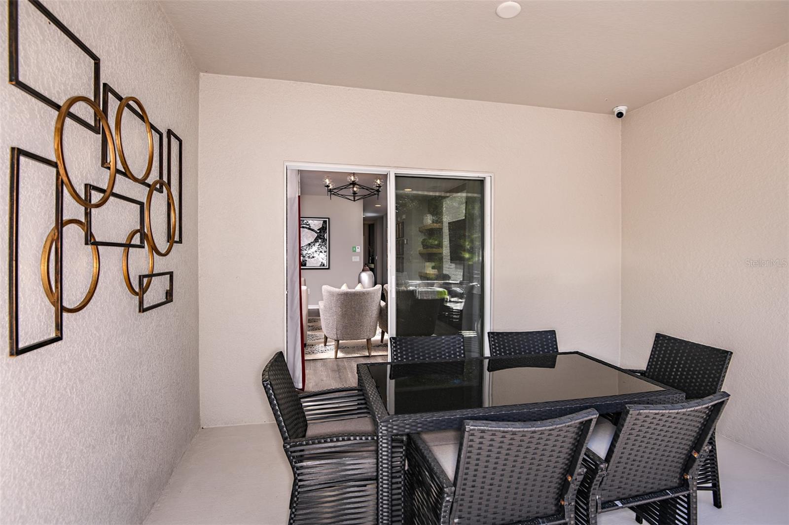 This former model home showcases an array of upgrades and designer touches throughout. Featuring a spacious open floor plan with 4 bedrooms and 2 bathrooms, this home is perfect for both everyday living and entertaining. The great room layout seamlessly connects the living room, kitchen, and dining area, creating an inviting space for gatherings. The kitchen is a chef’s delight, complete with stainless steel appliances, breakfast bar, pantry, and decorative backsplash. Retreat to the primary suite is thoughtfully designed with crown molding for added designer touch and includes an ensuite bathroom with dual sinks, upgraded tile in the frameless glass shower, and a walk-in closet. Three additional generously sized bedrooms offer flexibility for guests or a home office. Additional features include a convenient interior laundry room. Step outside to enjoy the covered back patio, which opens to an extended paver patio with a fire pit and pergola—perfect for relaxing or entertaining outdoors. Located in the Lake Lincoln community, residents enjoy access to walking trails, dog park, and shaded playground. Conveniently situated near, shopping, dining, and major roadways, this home truly has it all.