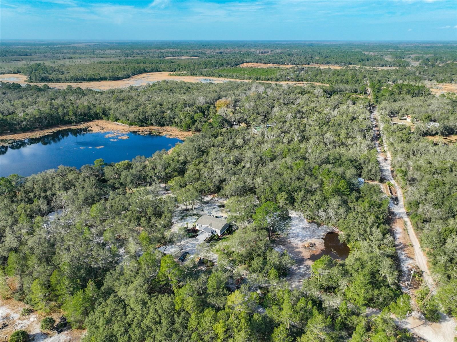 Welcome to your slice of paradise! This unique property offers TWO homes on a sprawling 5-acre setting, making it ideal for multi-generational living, rental income, or a private guest retreat. The main home, built in 2023, features 3 bedrooms and 2 bathrooms with an open floor plan that connects the living, dining, and kitchen areas—perfect for everyday living and entertaining. Split bedrooms provide added privacy for guests. The “lake home” offers 1 bedroom, 1 bathroom, plus a loft, creating a cozy space overlooking the water. The property is a beautiful mix of well-manicured landscaping and natural woods, offering peaceful surroundings and scenic views of two ponds right from your porch. One of the porches even includes a sunk-in tub—perfect for soaking or rinsing off after a day outdoors. Outside, enjoy a newly built patio at the pond’s edge complete with a two-step wall and firepit, ideal for gathering with friends and family under the stars. A storage shed with its own porch provides extra space for tools and outdoor equipment. Wake up to the sounds of nature and enjoy your morning coffee while overlooking the water. This property offers excellent investment potential and plenty of room to spread out, relax, or expand. Conveniently located approximately one hour from Disney and Orlando International Airport, you’ll enjoy the privacy of rural living with access to Central Florida attractions. Don’t miss this rare opportunity—schedule your private showing today.